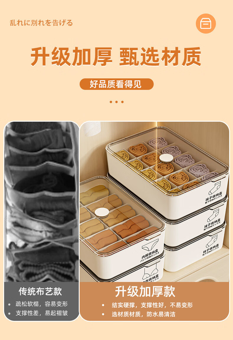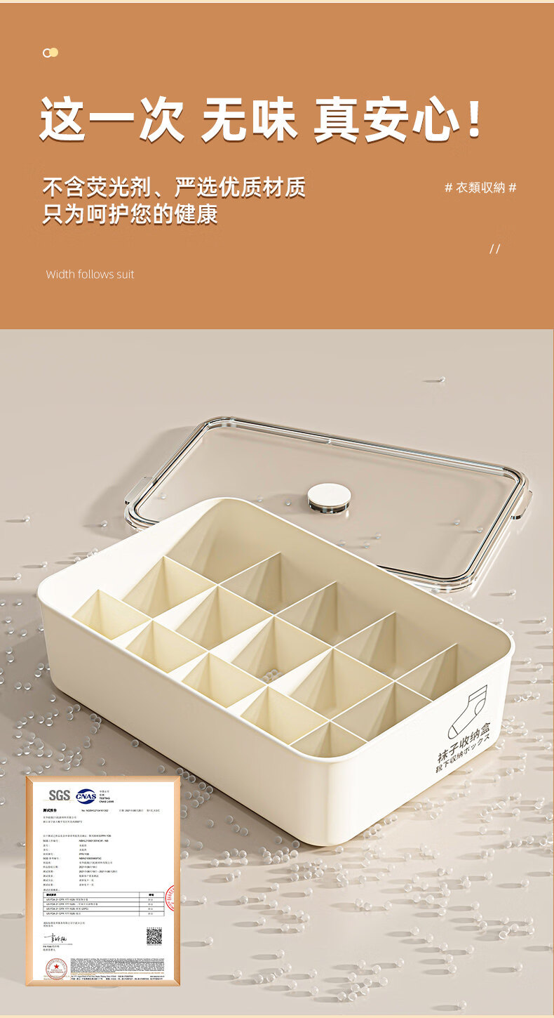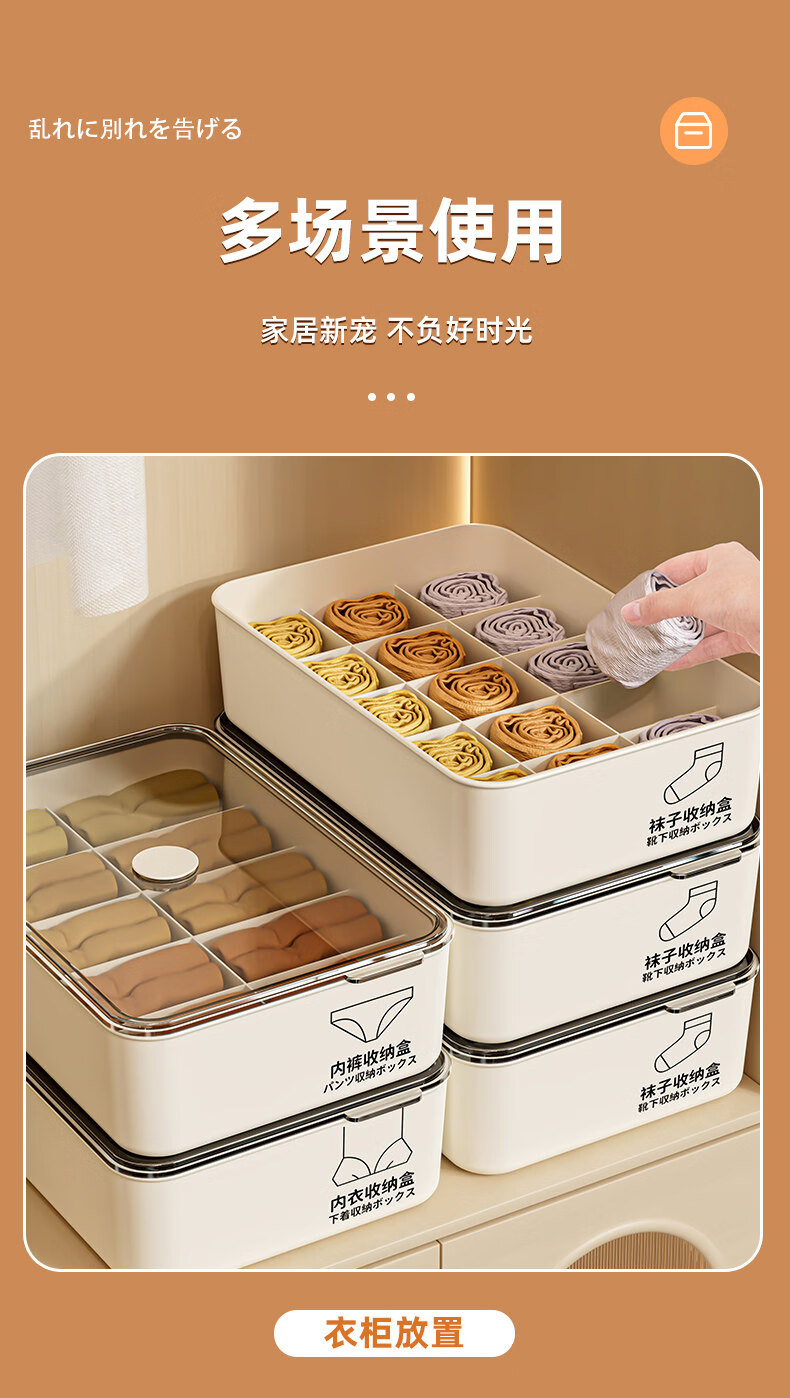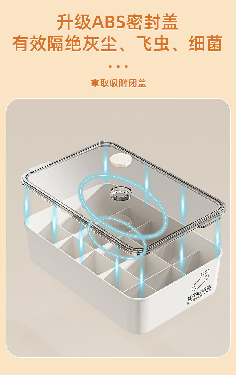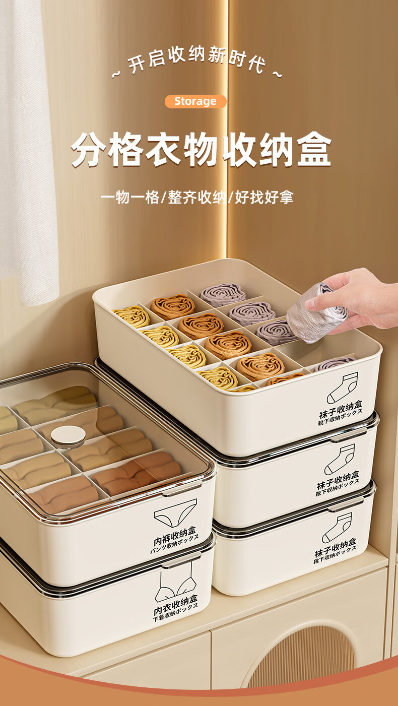艾仕可(ASCOR)内衣内裤收纳盒家用宿舍衣柜装袜子三合一储物贴身衣物分格整理箱 带盖三件套【内衣+内裤+袜子】 送香薰 驱虫除螨