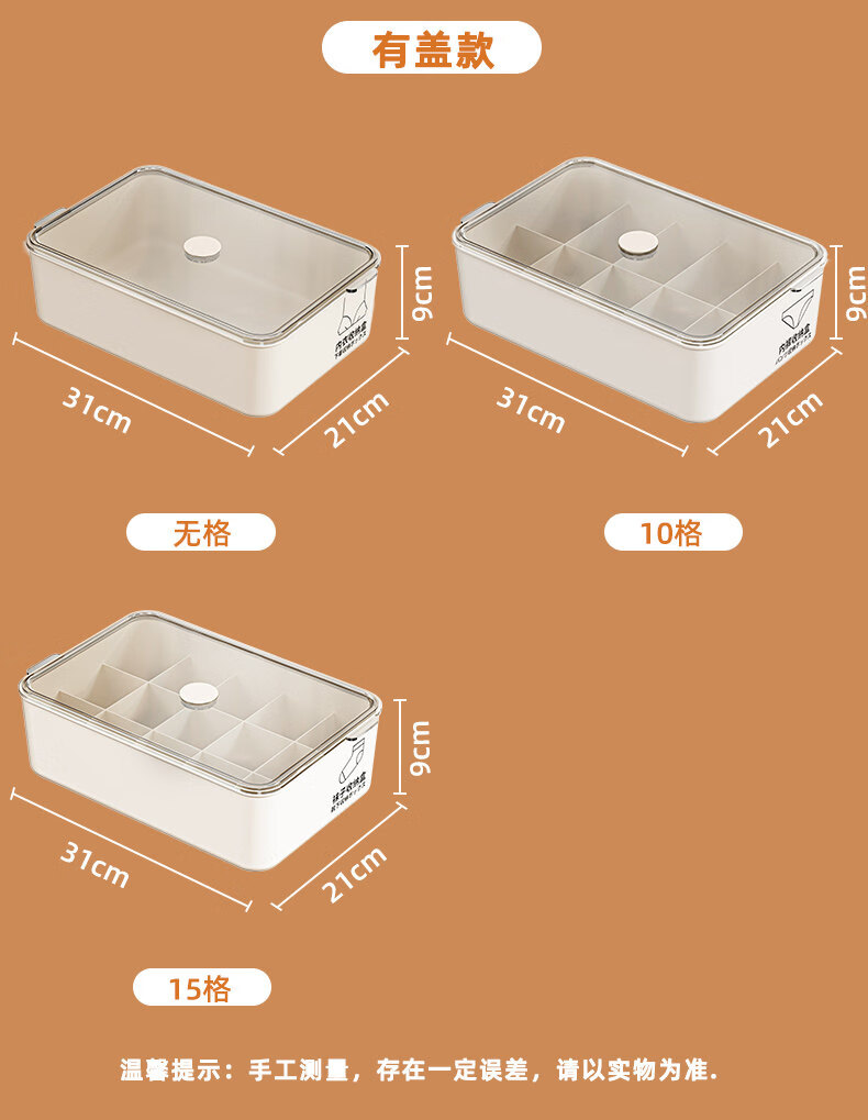 优必利化妆品收纳桌面透明防尘PET带盖收纳盒9357大号
