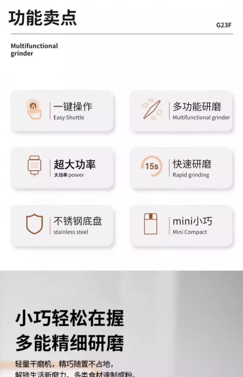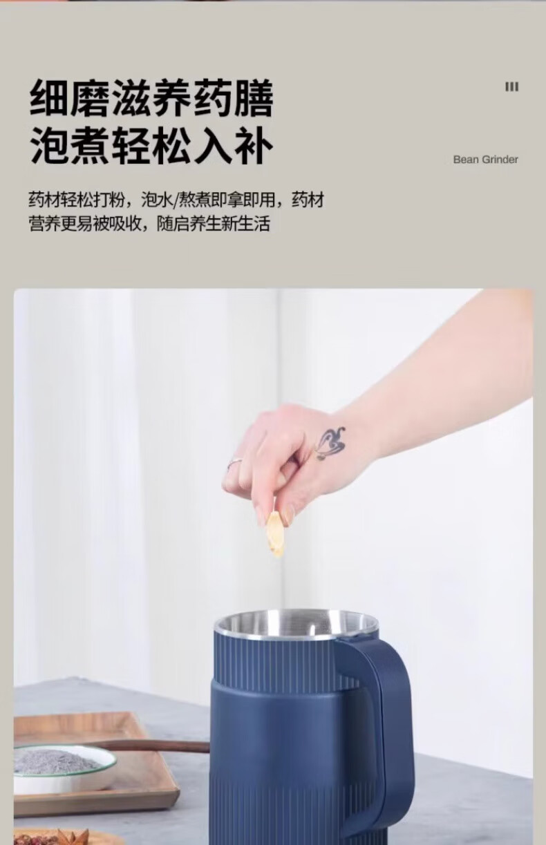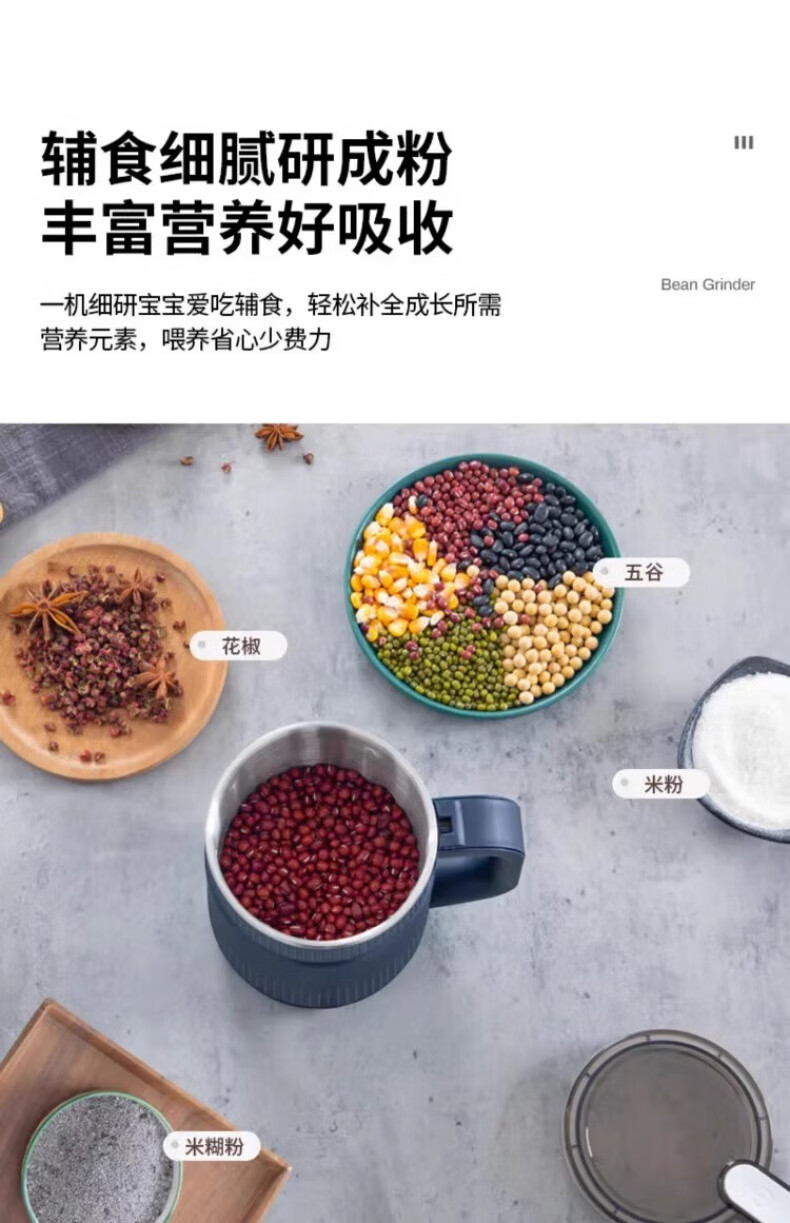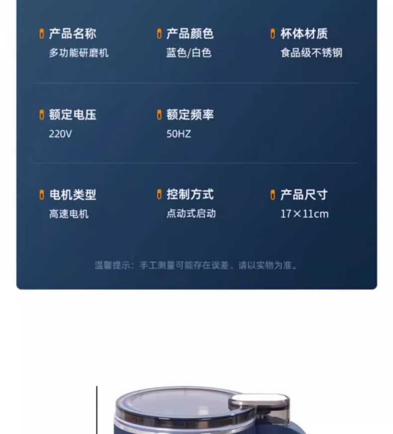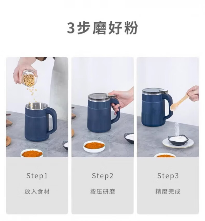 AILUKI日本研磨机小型电动打家用粉机五谷杂粮超细干湿两用大容量不锈钢 标准蓝色款【1套刀】 全铜机芯