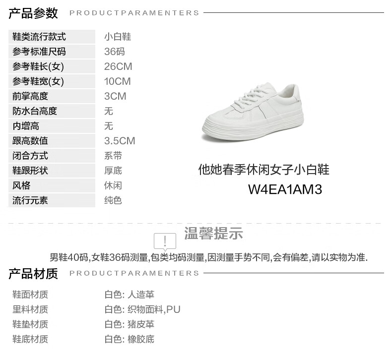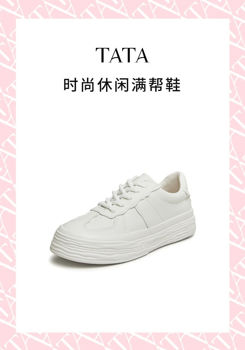 他她Tata女鞋2025春时尚休闲鞋百搭厚底小白鞋板鞋 白色CM4 38