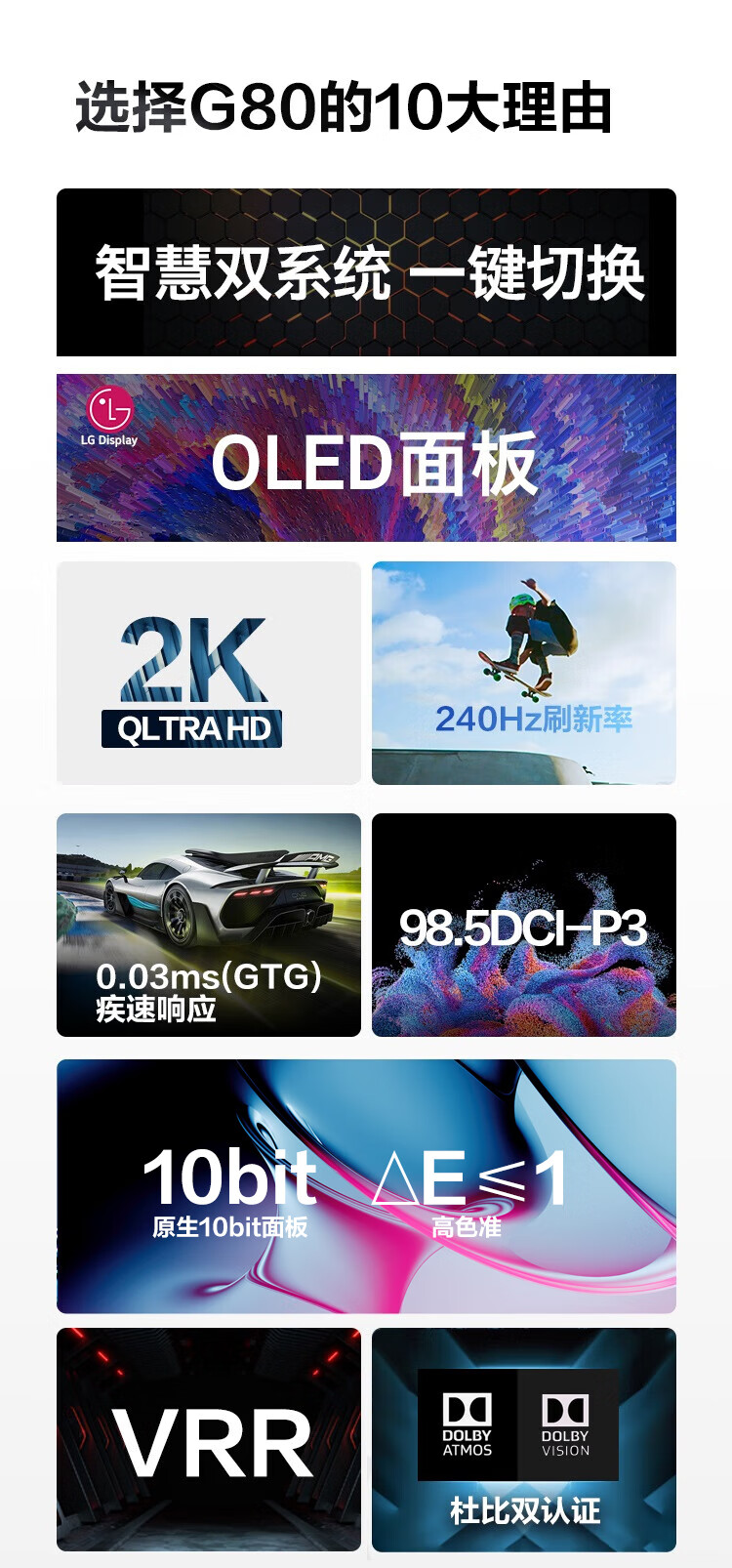 创维 26.5英寸 OLED 电竞显示器 2K 240Hz 无线投屏 90W Type-C 杜比认证 双系统 标配挂灯 F27G80Q