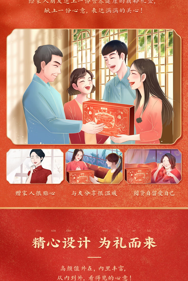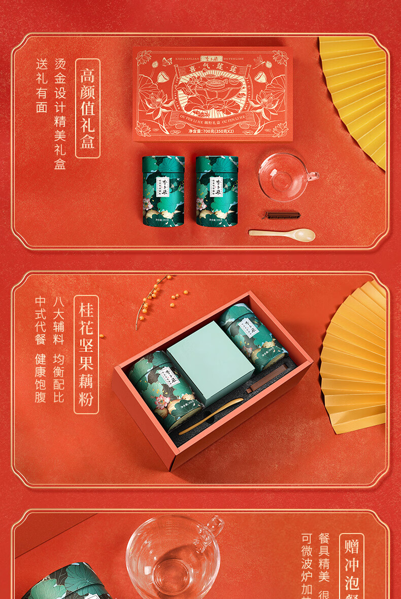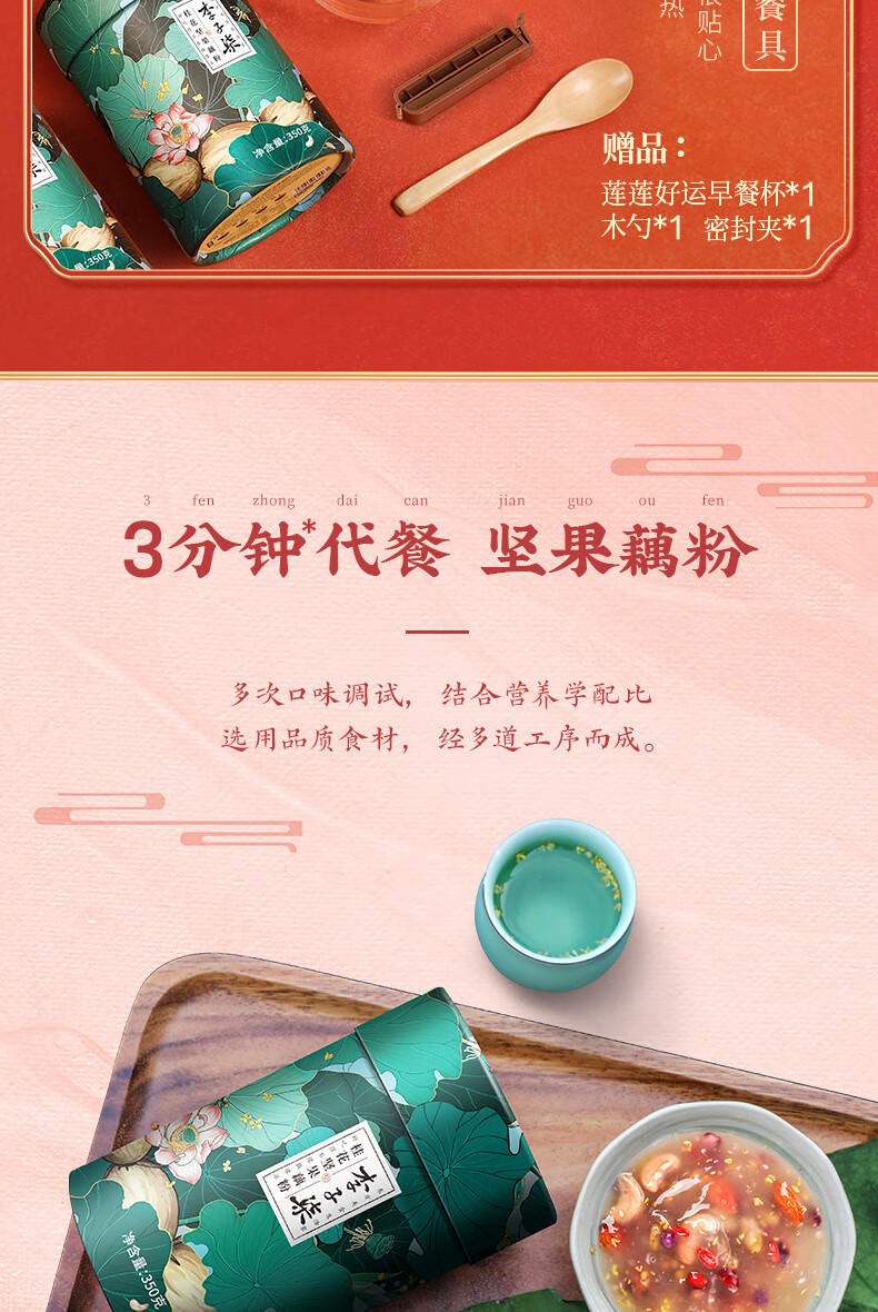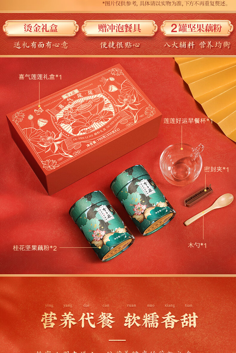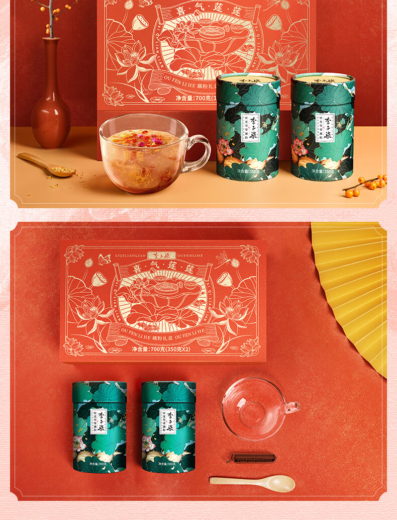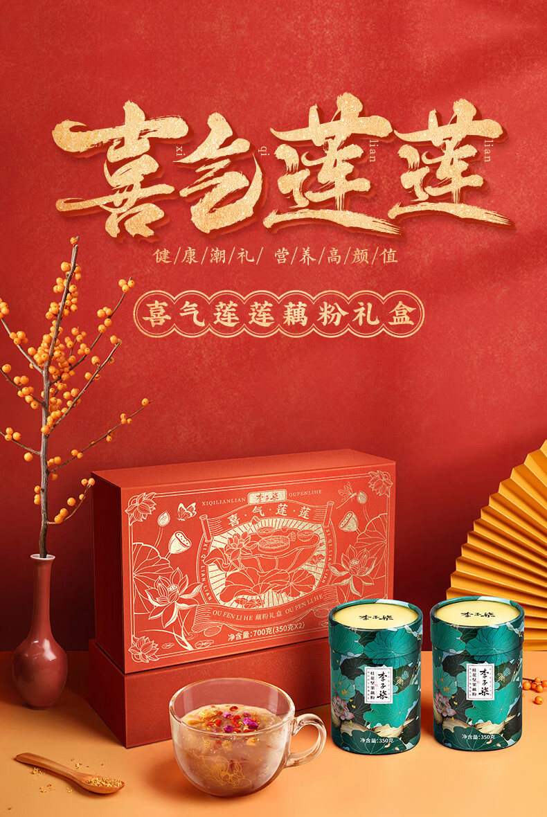 李子柒喜气莲莲藕粉年货礼盒 350g*2罐营养早餐 送礼父母长辈莲藕粉