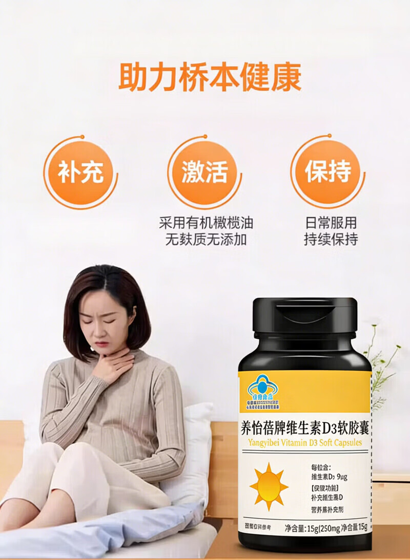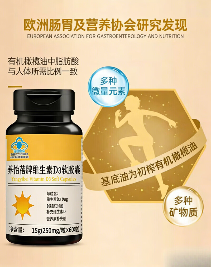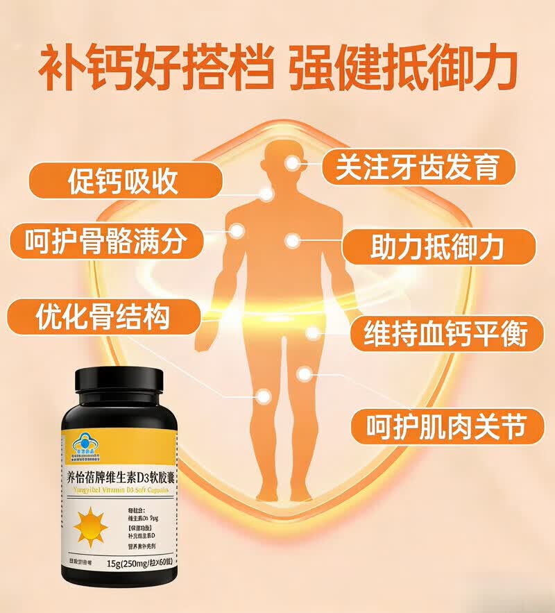 美国品质 阳光瓶维生素d3软胶囊 5000Iu 备孕维他命羟基60粒/瓶 周期装 60粒*3瓶 -提升免疫力