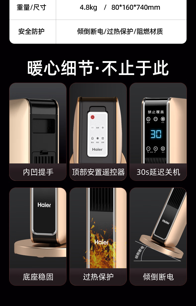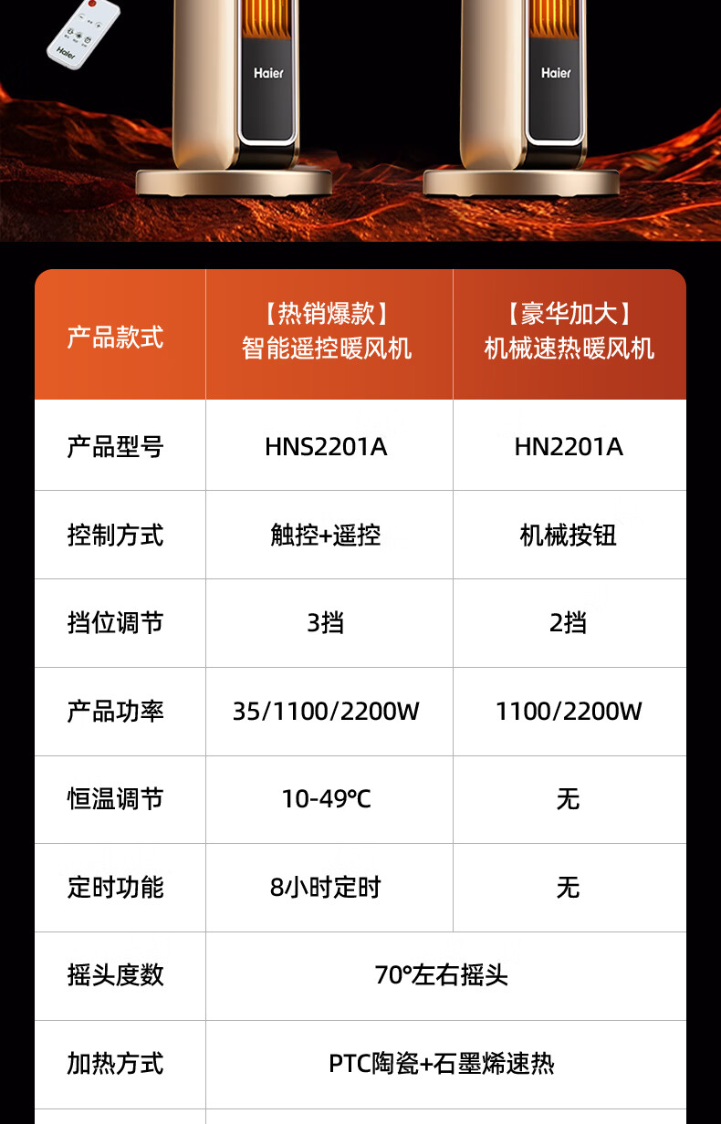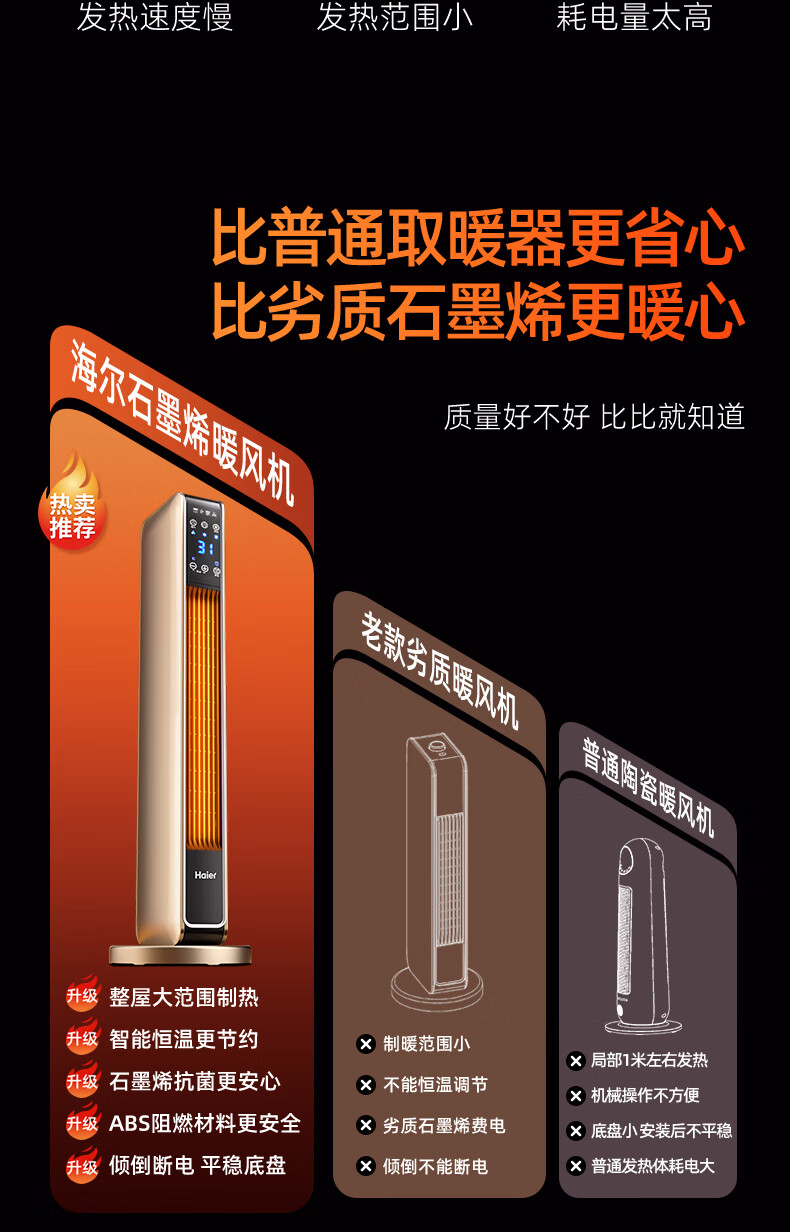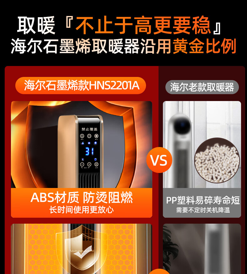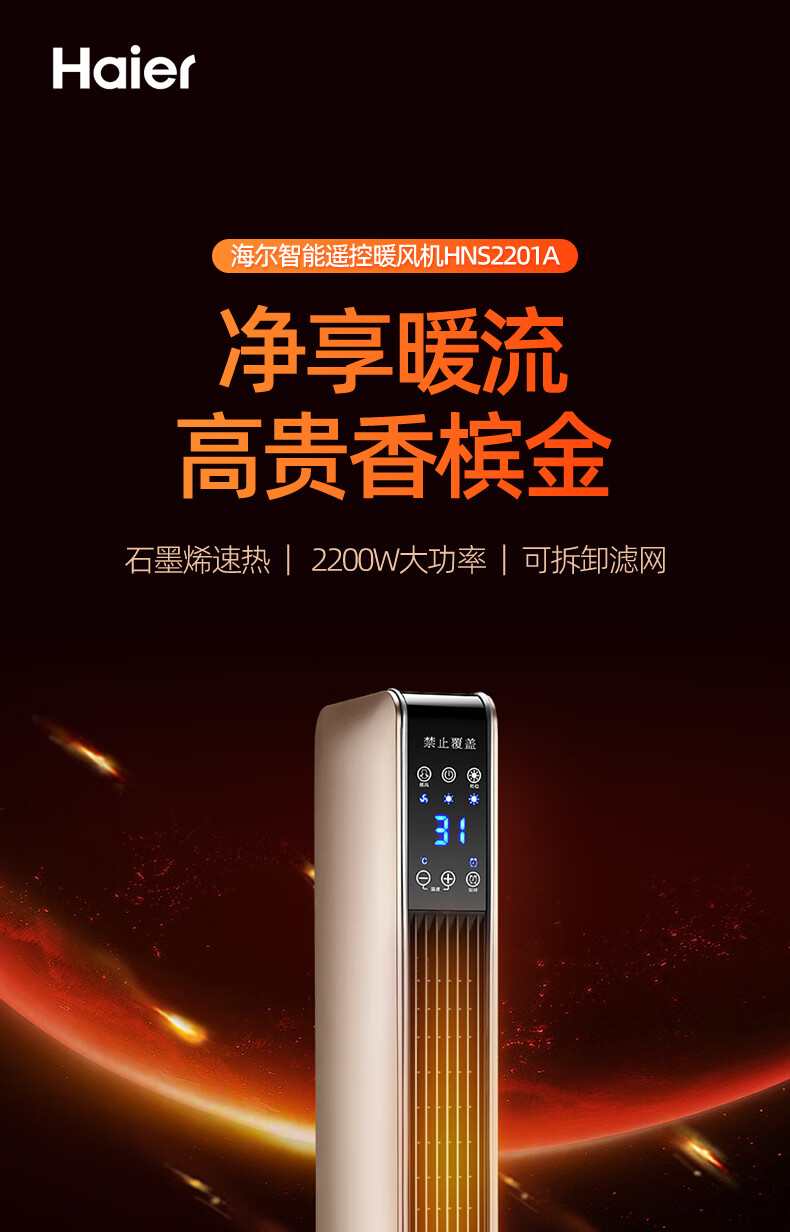 海尔(Haier) 取暖器石墨烯家用暖风机立式取暖神器冬季电暖风浴室热风机电暖气节能速热电暖器卧室烤火炉 【石墨烯速热】豪华加大机械款HN2201A