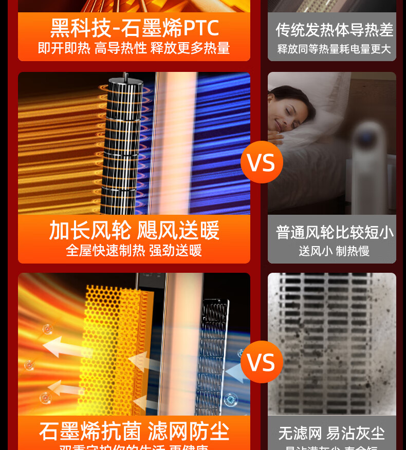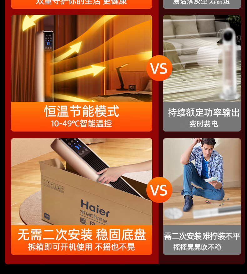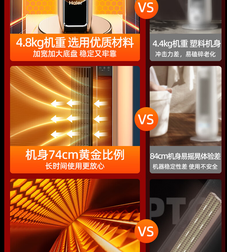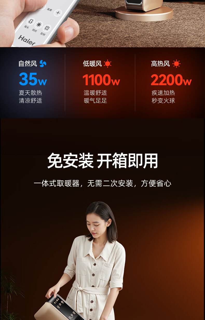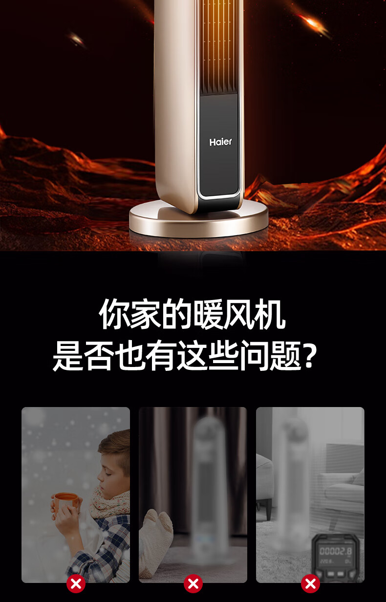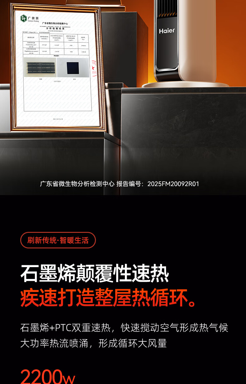 海尔(Haier) 取暖器石墨烯家用暖风机立式取暖神器冬季电暖风浴室热风机电暖气节能速热电暖器卧室烤火炉 【石墨烯速热】豪华加大机械款HN2201A