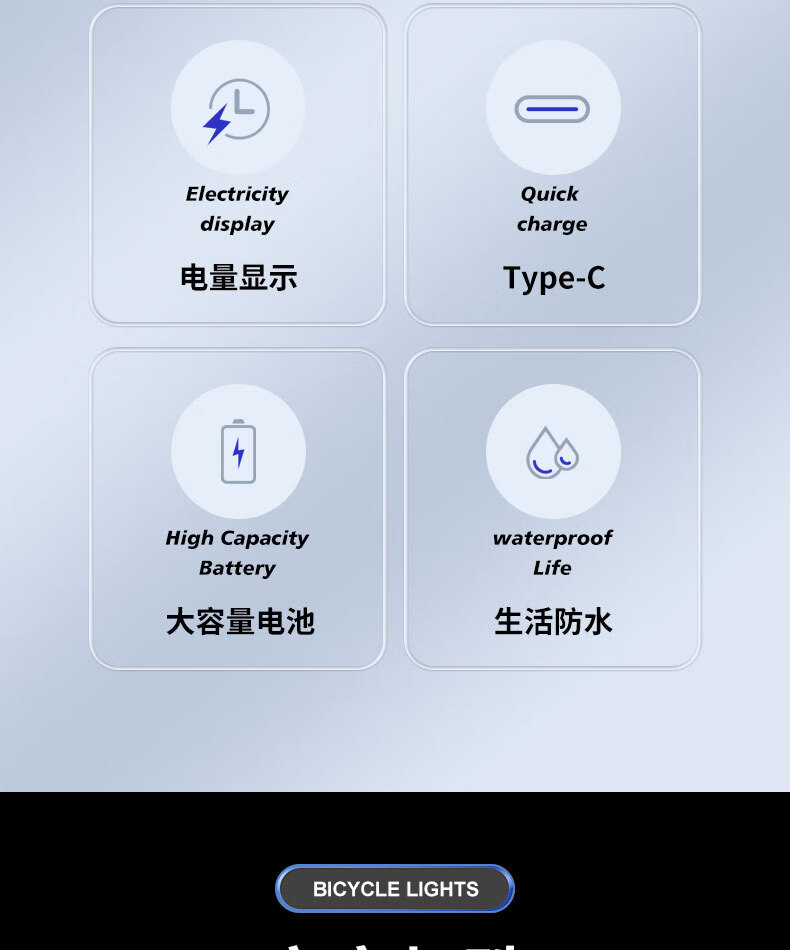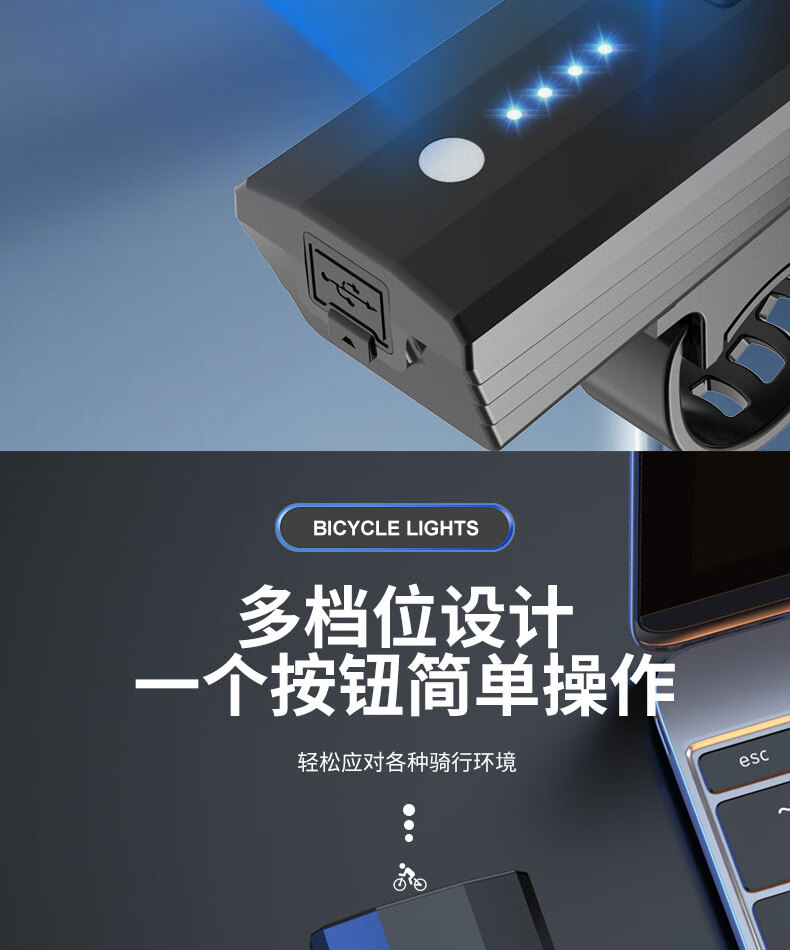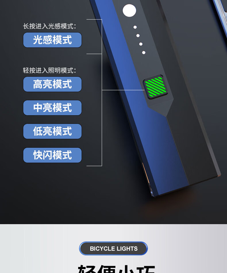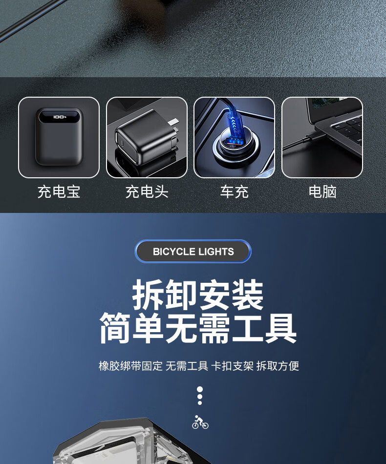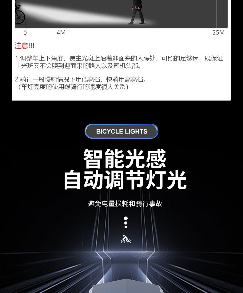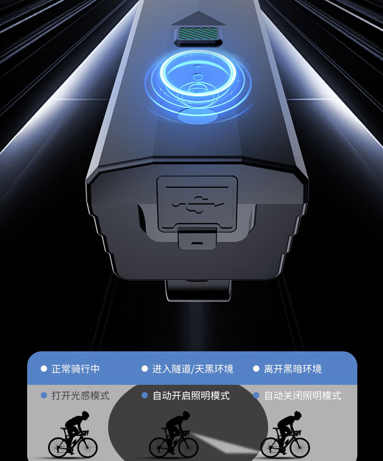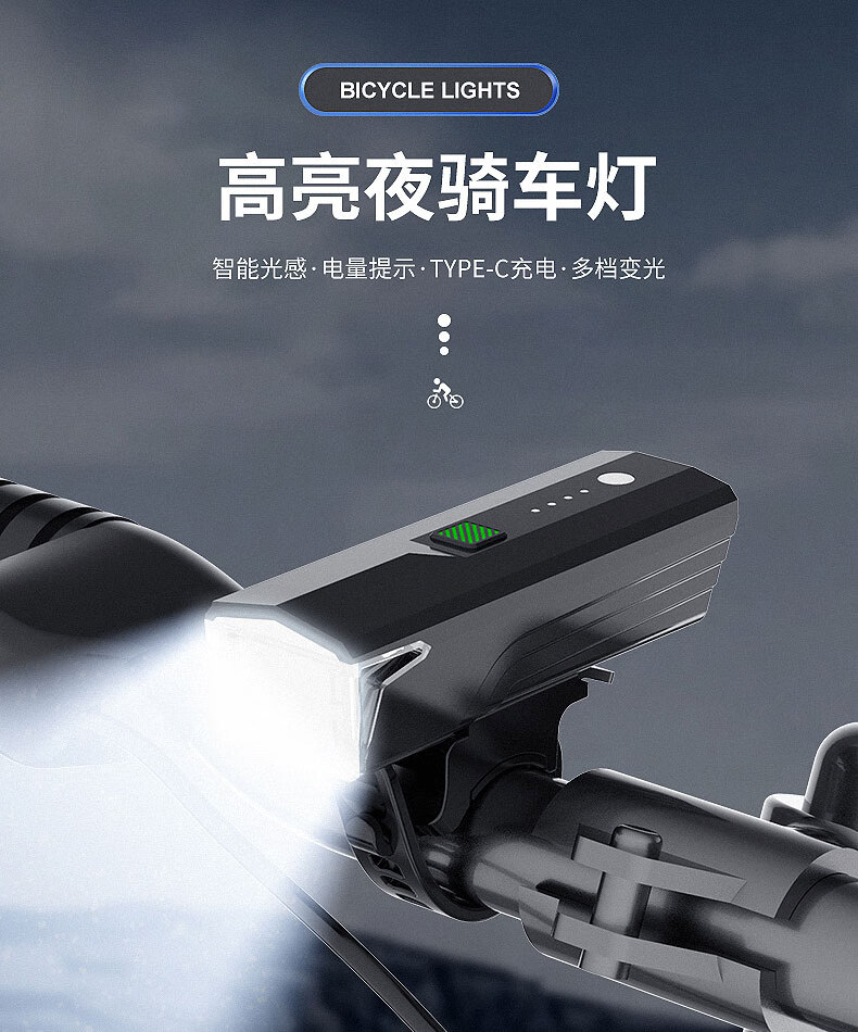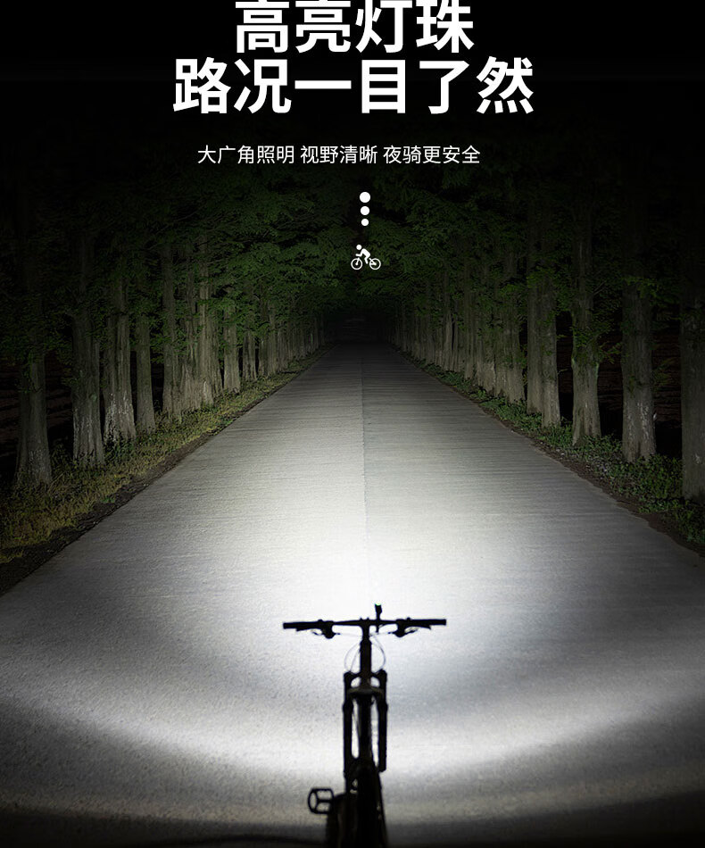 魔铁自行车灯高亮车前灯山地车公路车儿童车长续航夜骑灯骑行装备配件 黑色