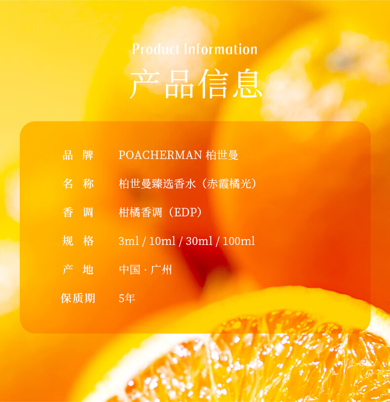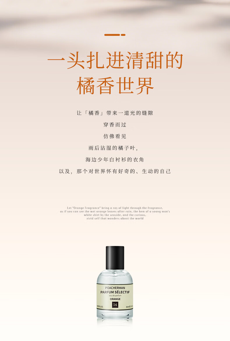 柏世曼(poacherman)14号赤霞橘光香水男女士清新柑橘调水果橘子花香学生党橘子味香水 【清新柑橘香气】14号橘香10ml