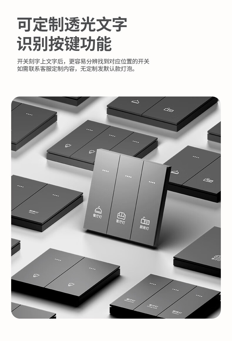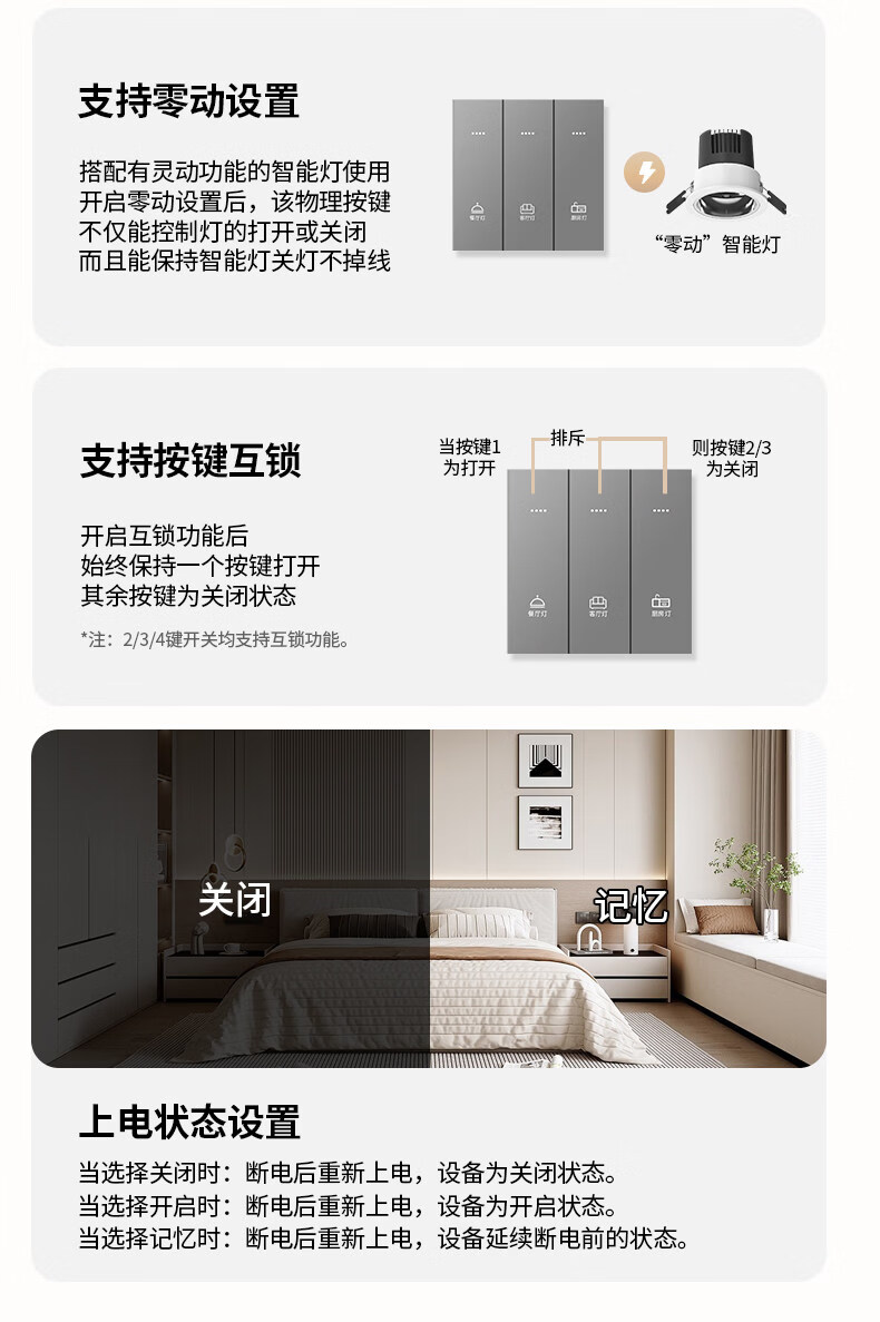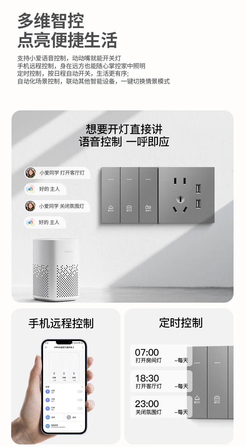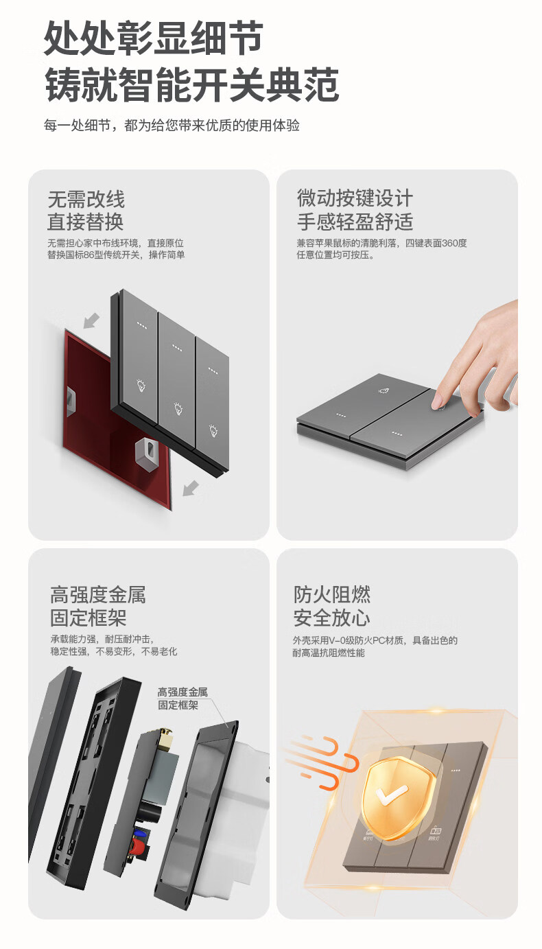 米家(MIKA)智能开关语音无线控制蓝牙Mesh2.0酒店民宿家用双切单火零火通用 [单火版/升级款]智能四开-幻夜黑