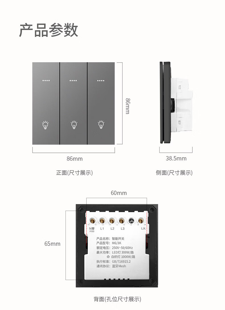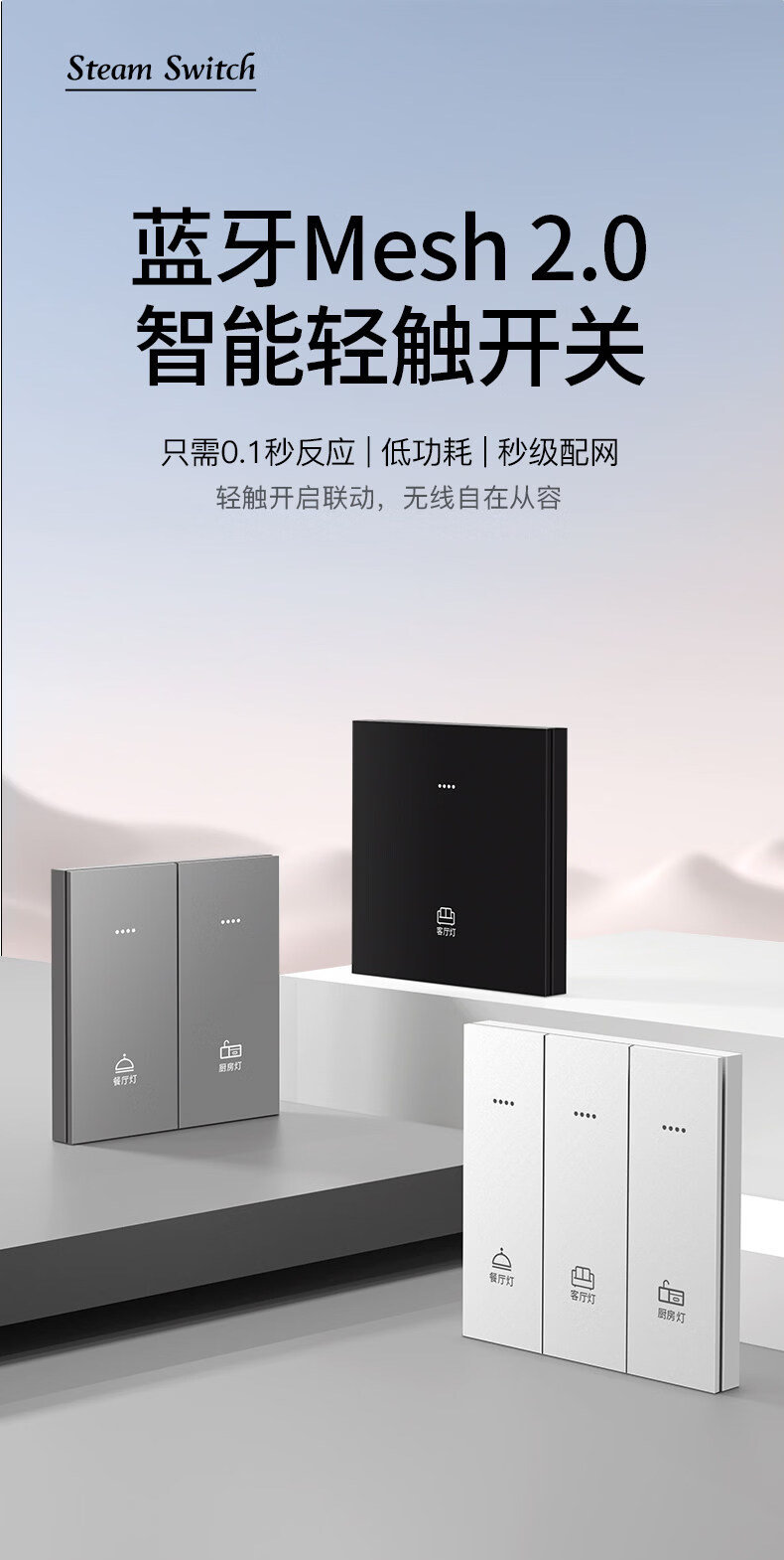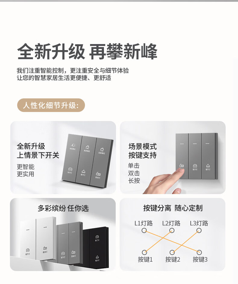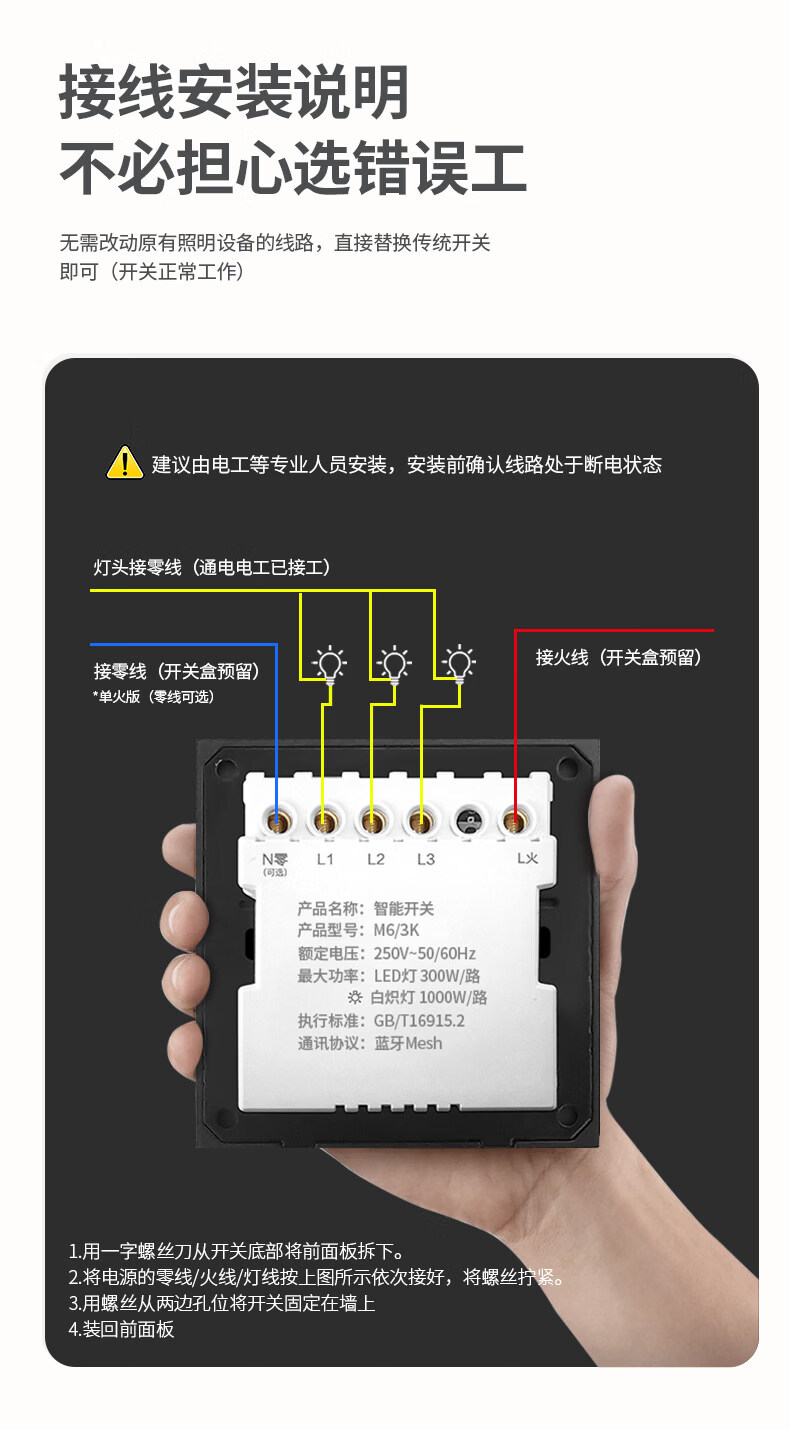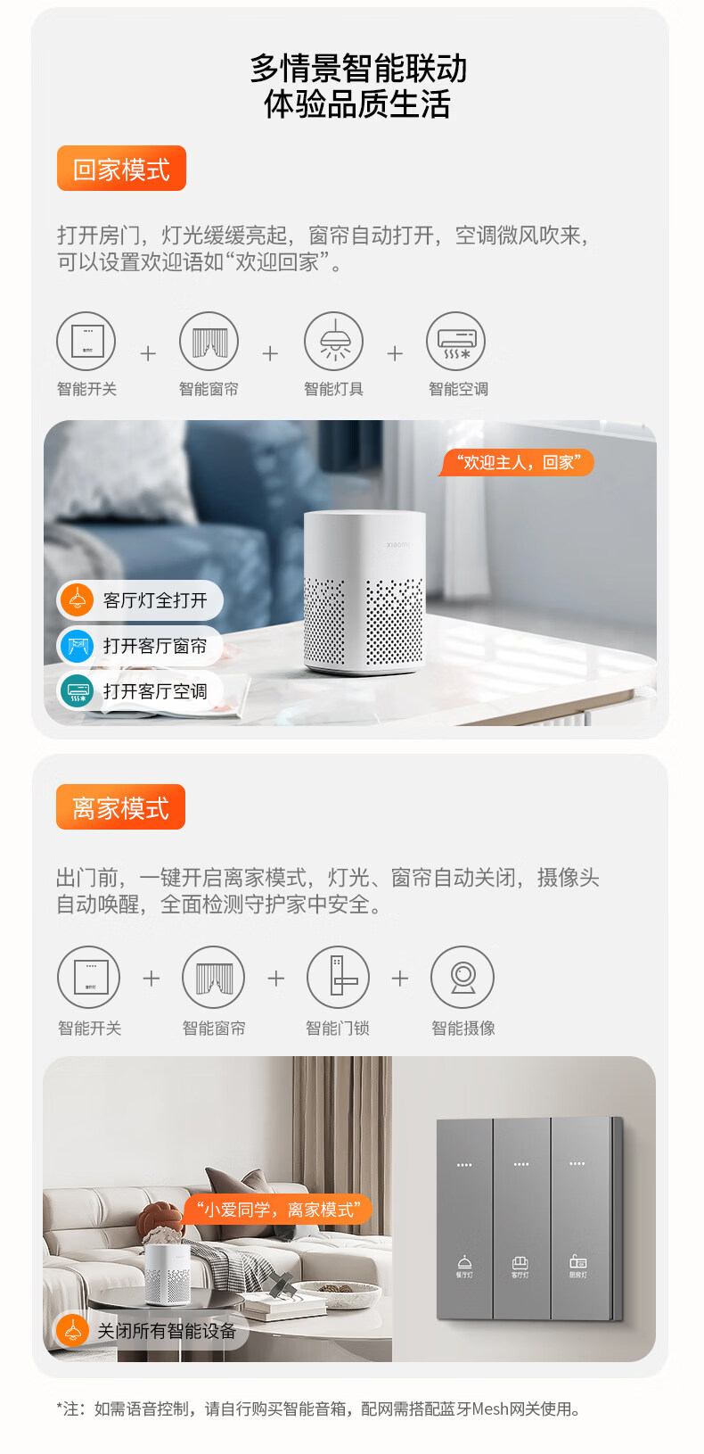 米家(MIKA)智能开关语音无线控制蓝牙Mesh2.0酒店民宿家用双切单火零火通用 [单火版/升级款]智能四开-幻夜黑