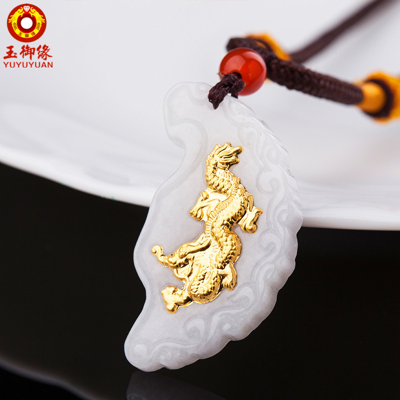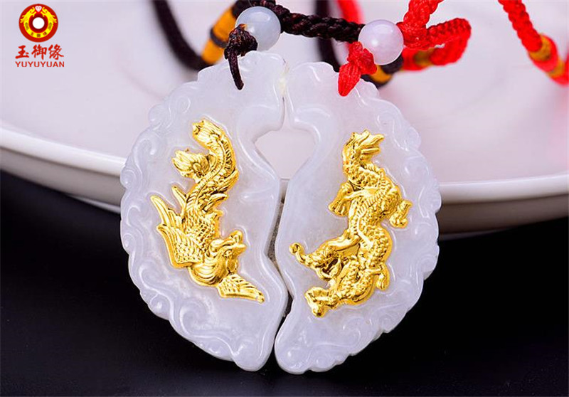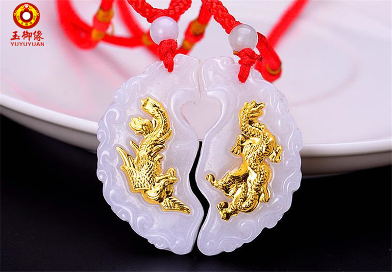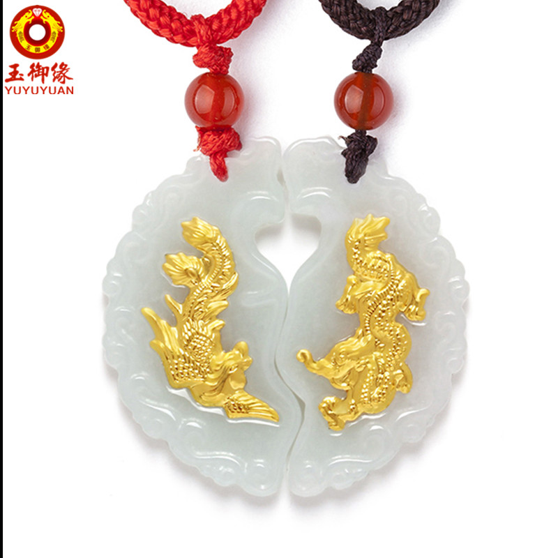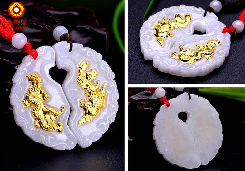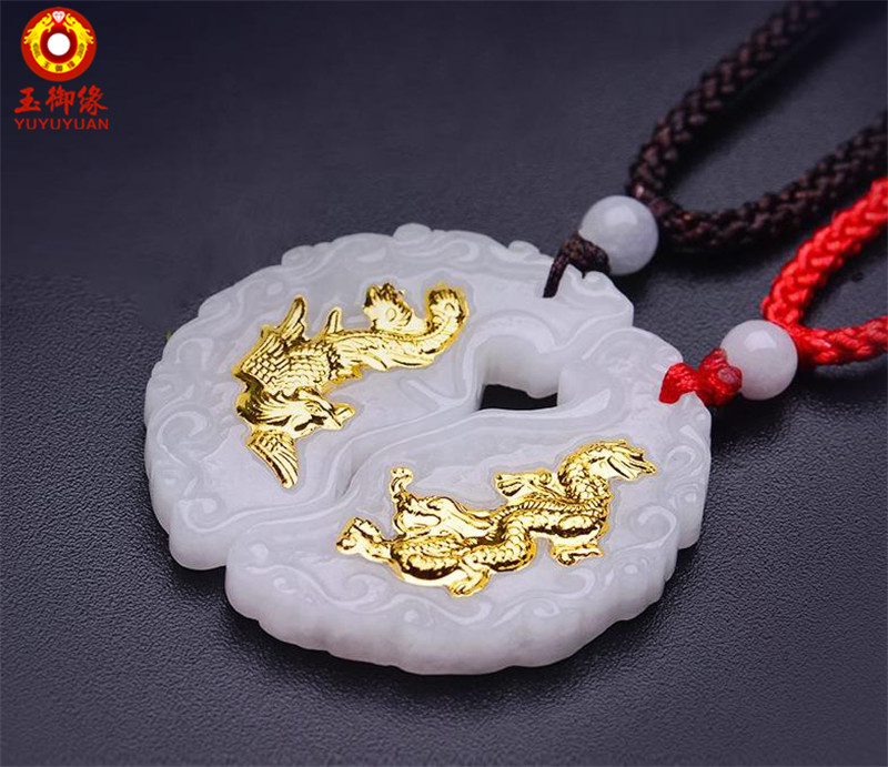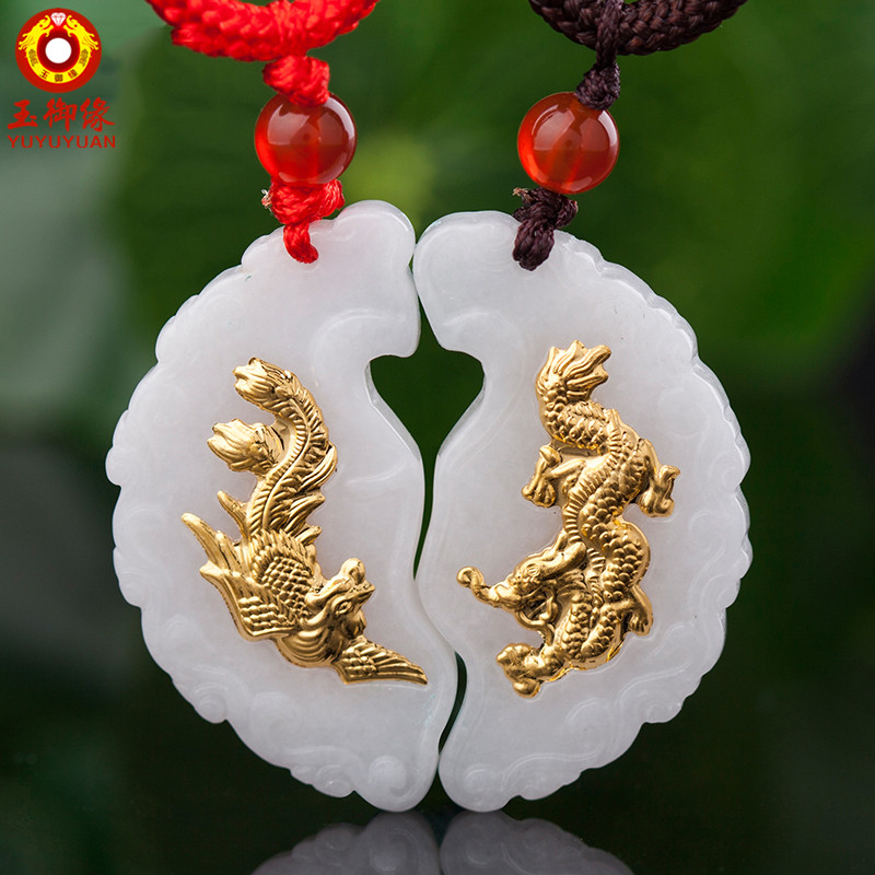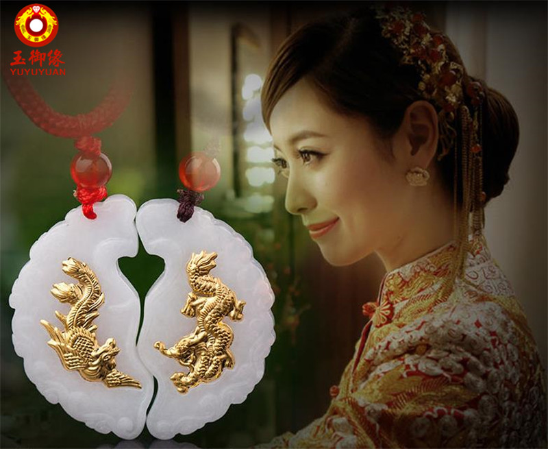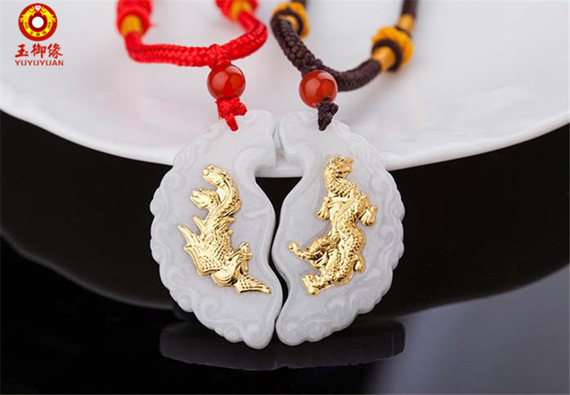 玉御缘原创和田玉吊坠龙凤玉佩一对男女情侣款玉牌项链龙凤玉坠带证书