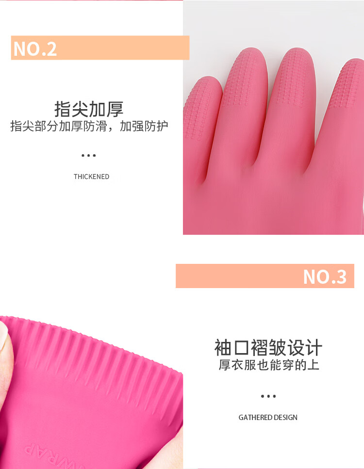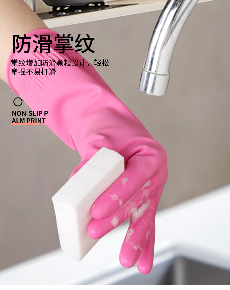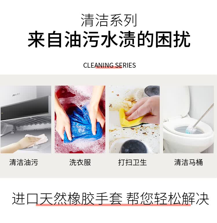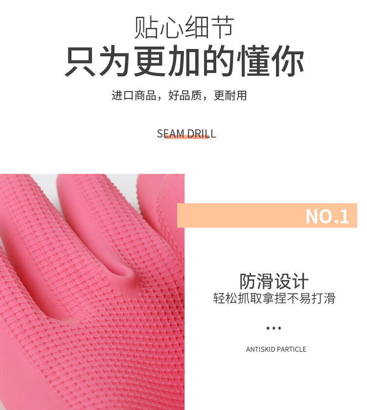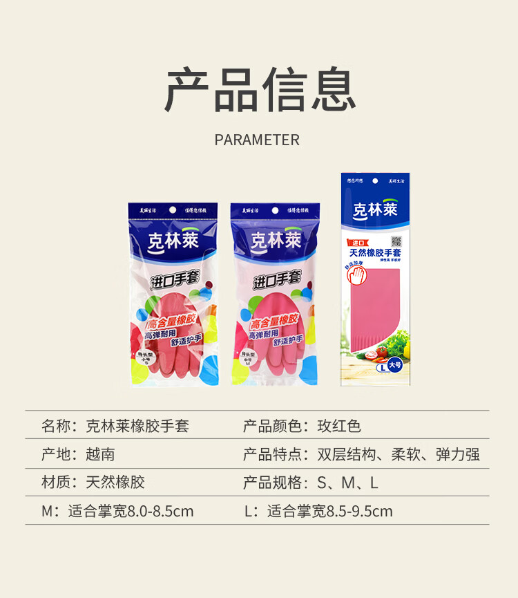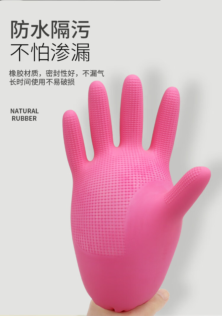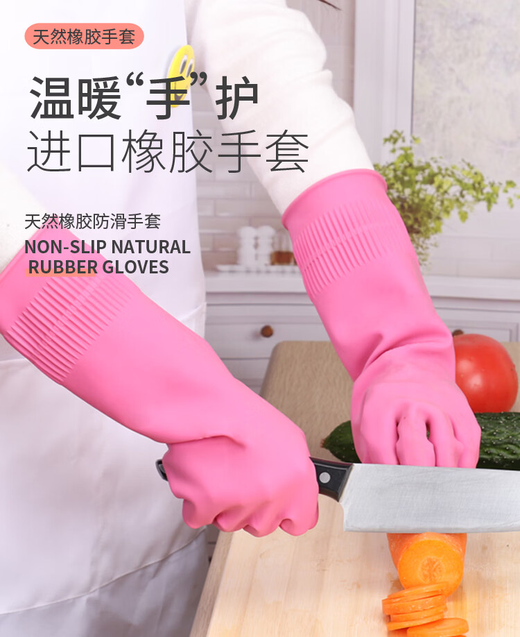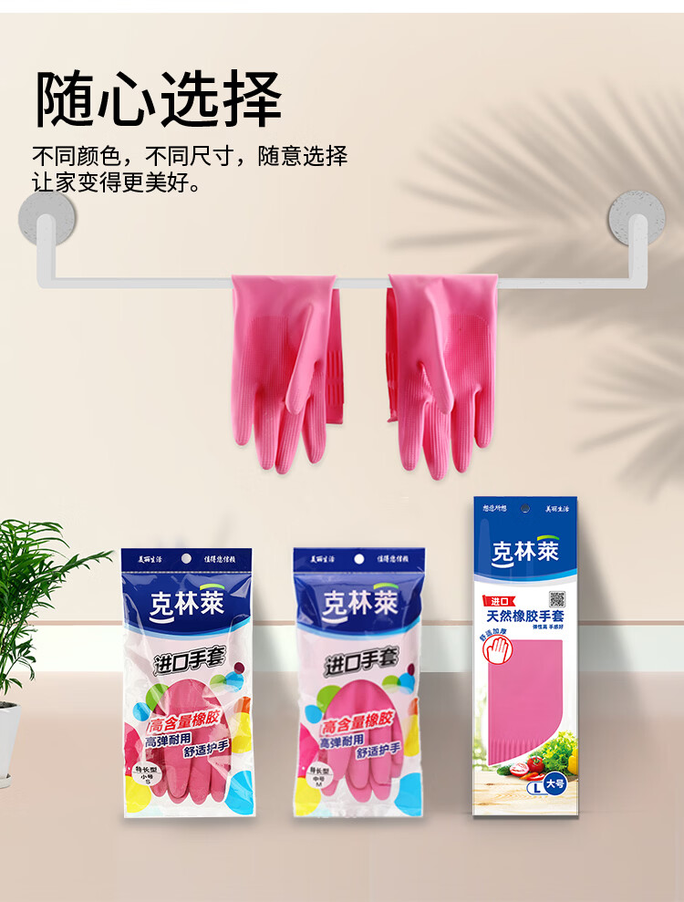 克林莱进口天然橡胶手套洗碗厨房清洁家务洗衣服刷碗耐用饭店餐厨适用 【官方直营】红色 小号 S码 无logo(无束口)
