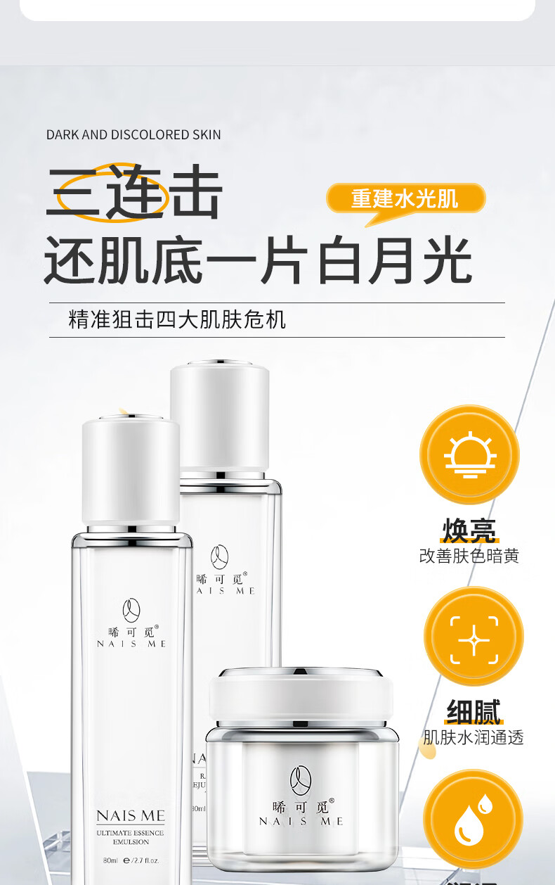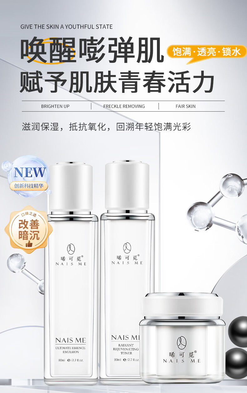 NAIS ME晞可觅 补水祛黄抗皱紧致护肤品套装 【圣诞礼物】 (精粹乳+美肌霜+柔肤水)
