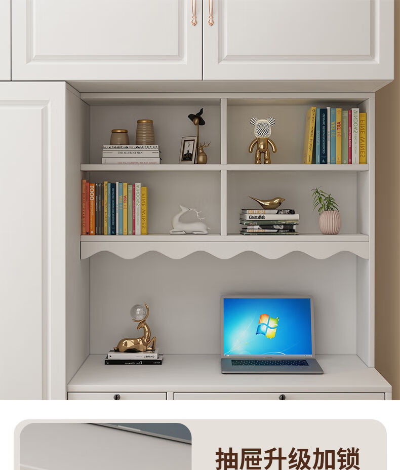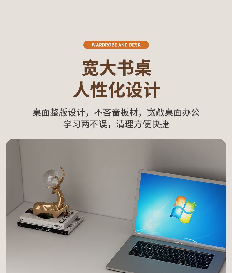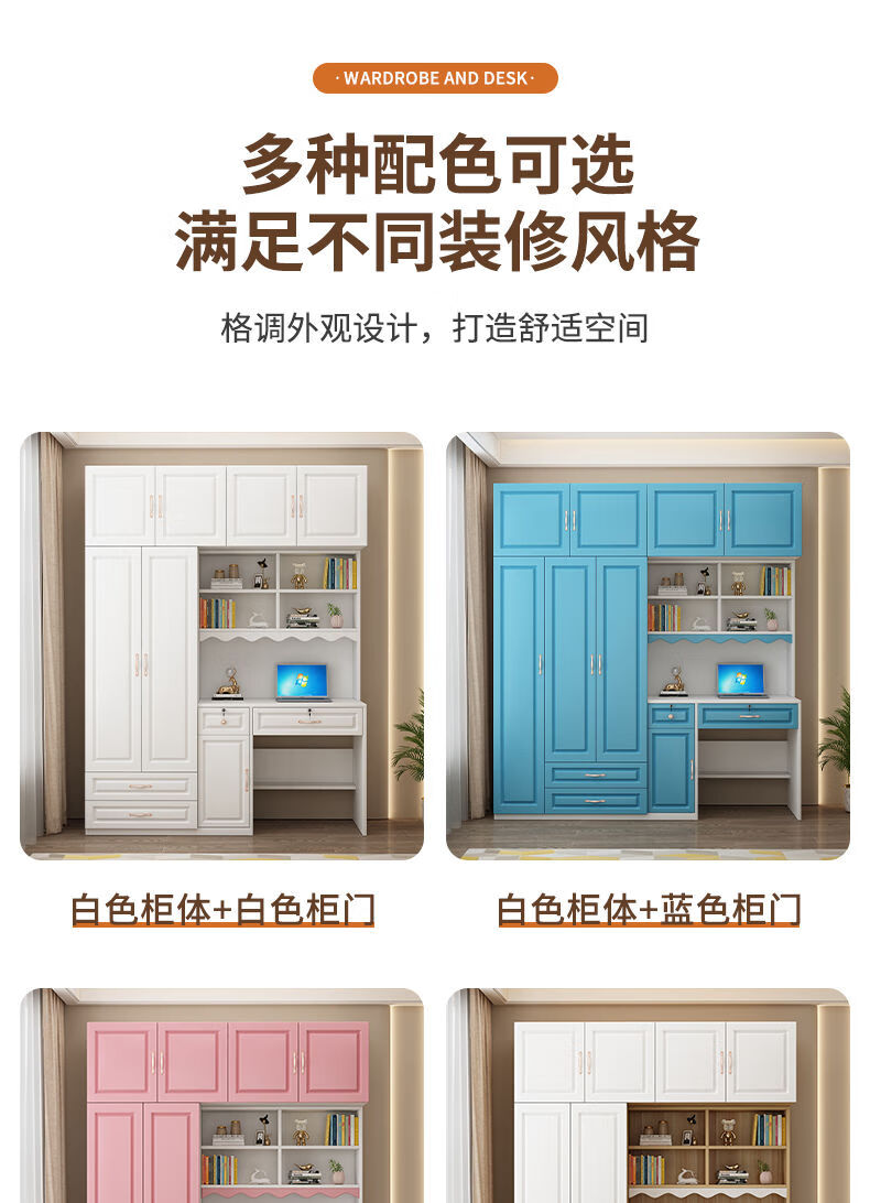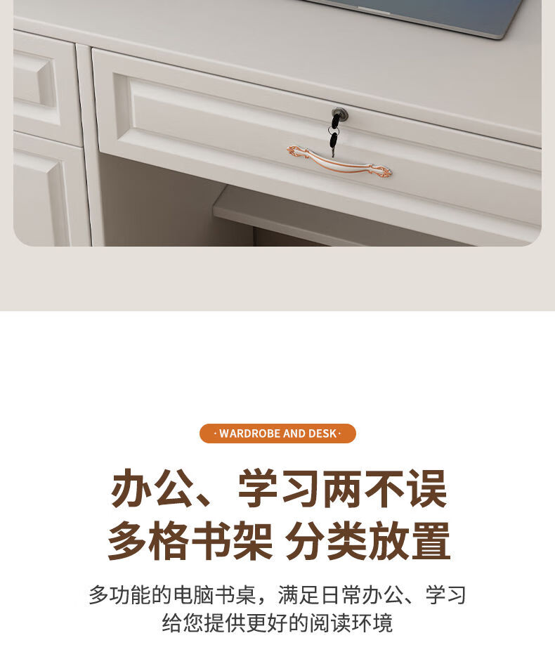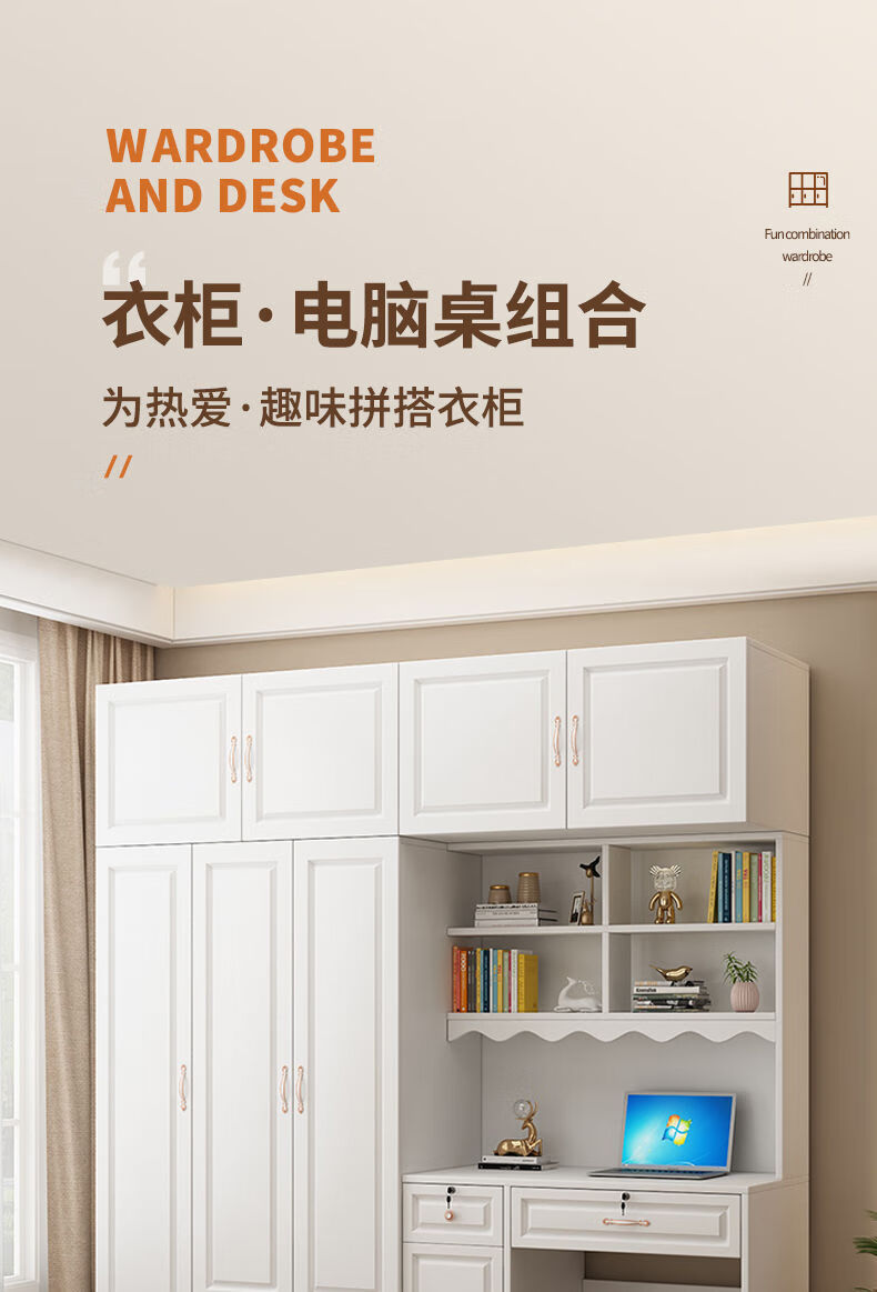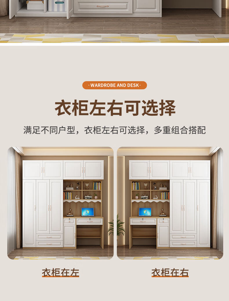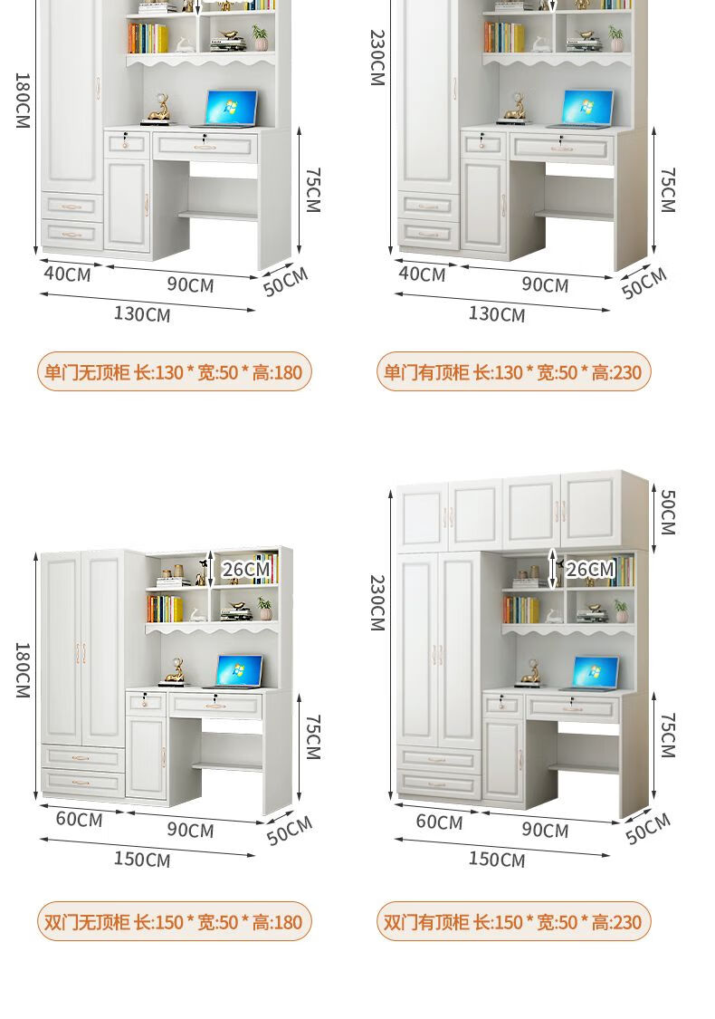 家梦绮2025新款实木电脑桌带衣柜简约台式卧室书架学生写字台连体书桌柜 实木生态板1.5+顶衣柜在左+包安装