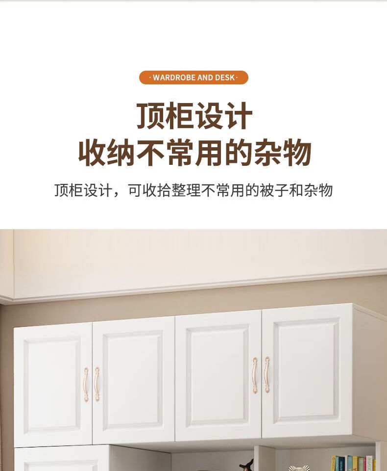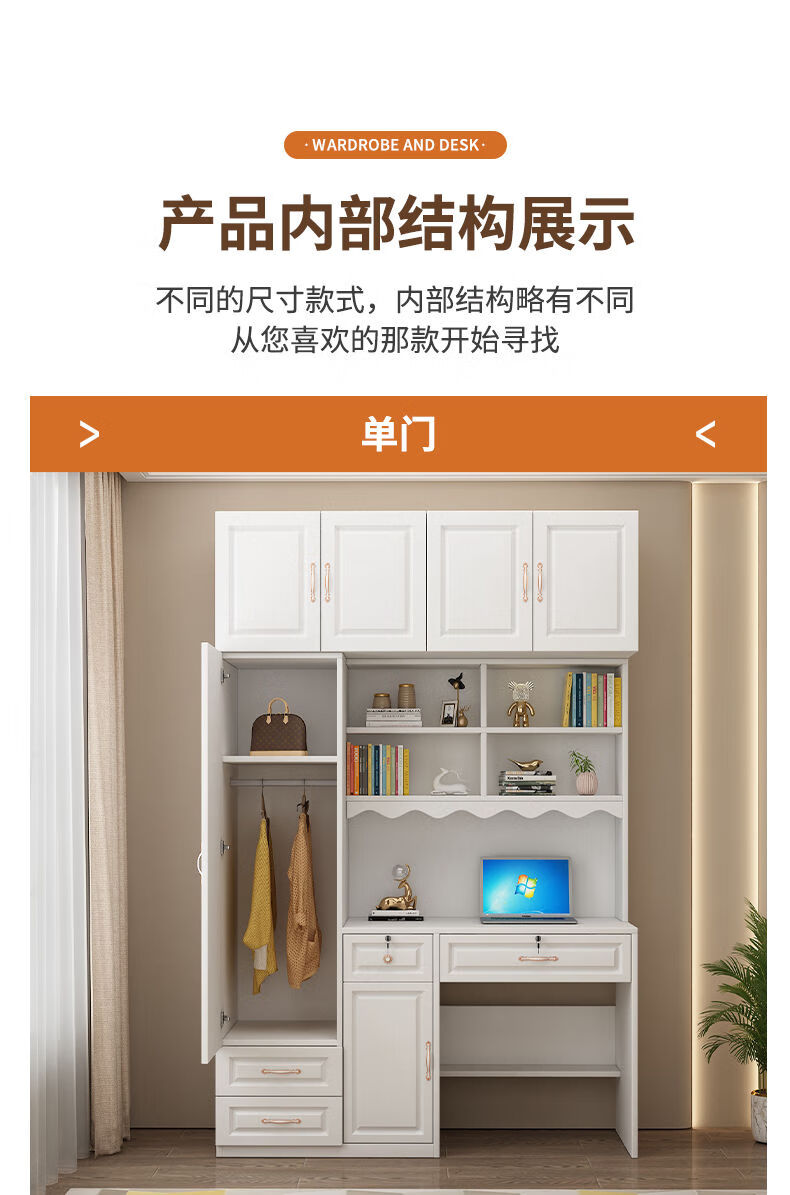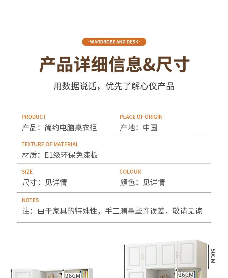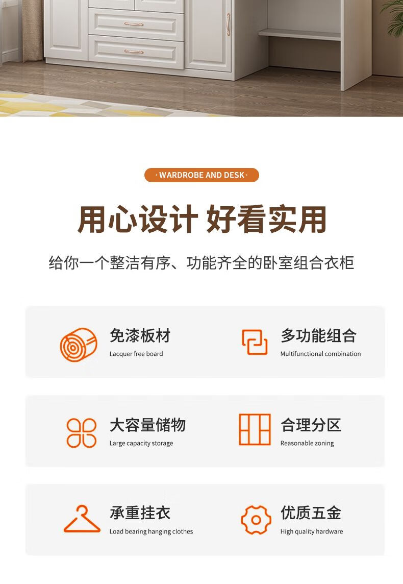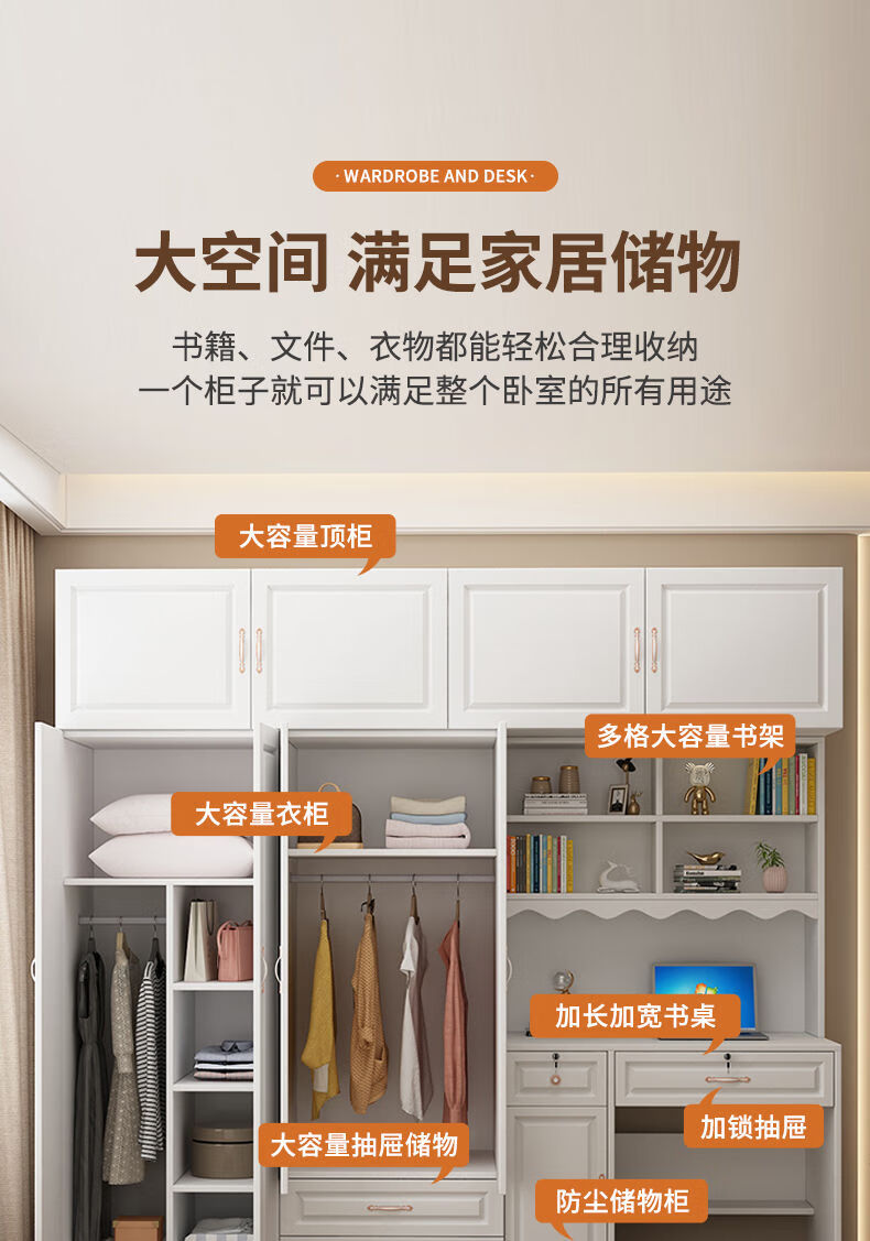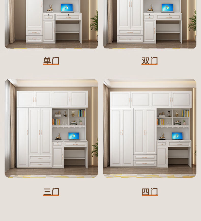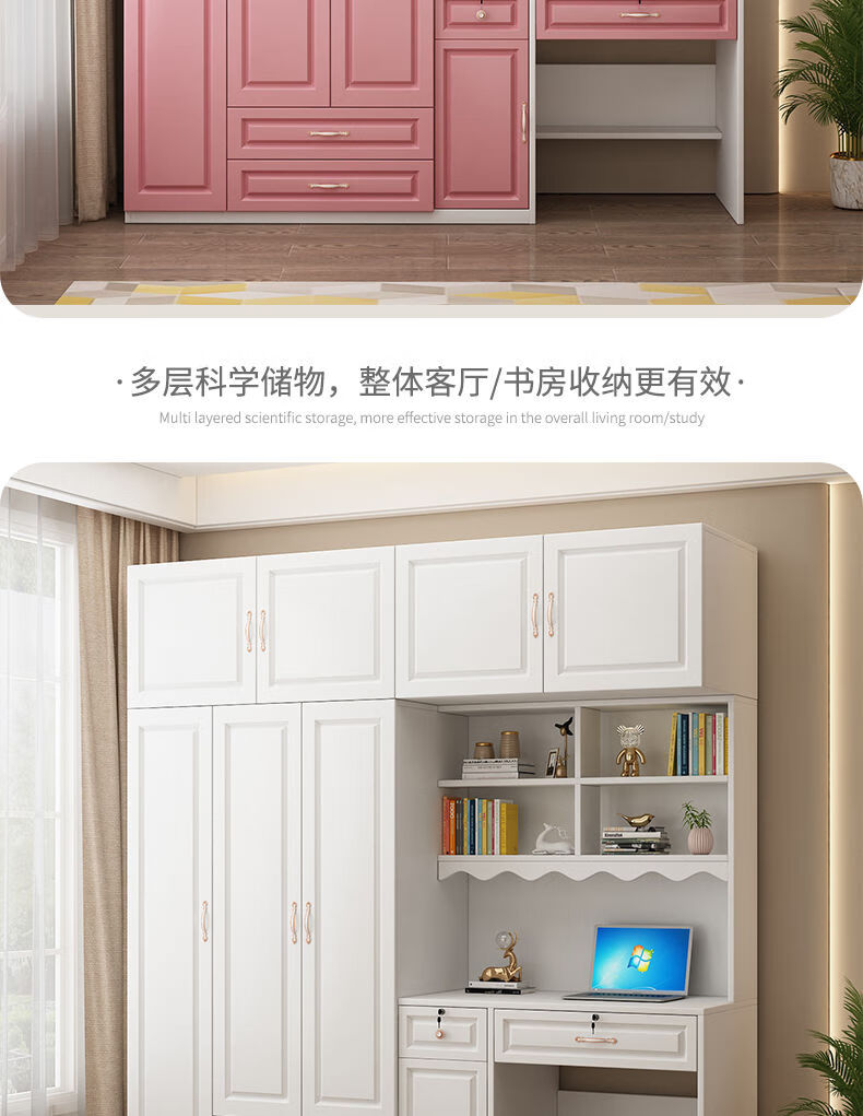 家梦绮2025新款实木电脑桌带衣柜简约台式卧室书架学生写字台连体书桌柜 实木生态板1.5+顶衣柜在左+包安装