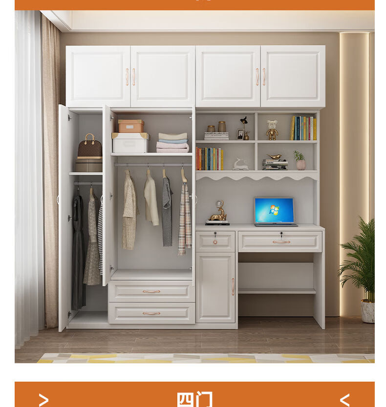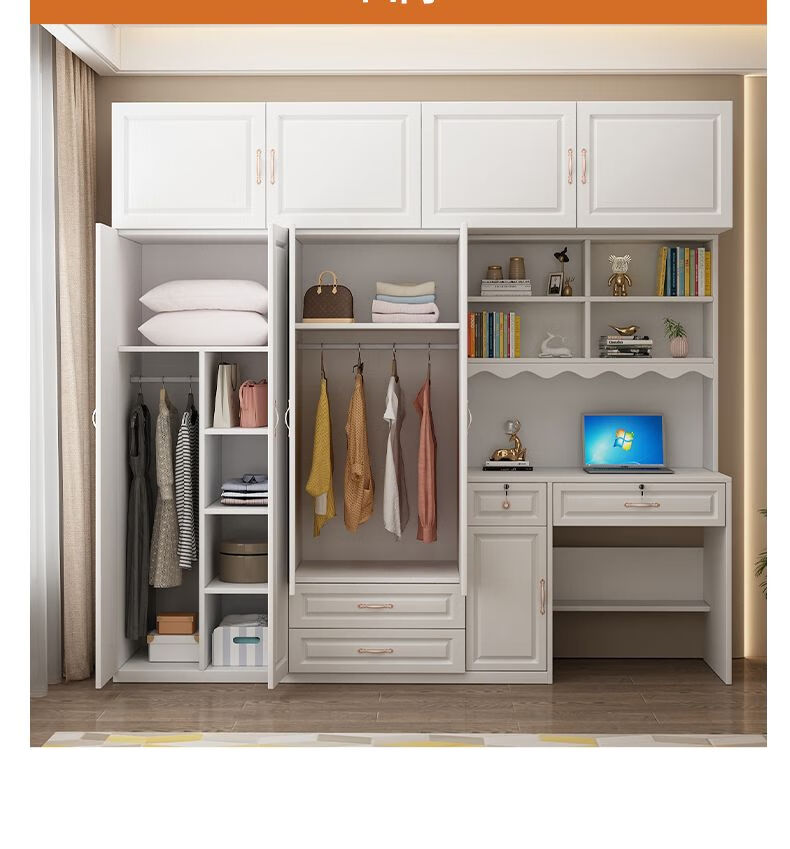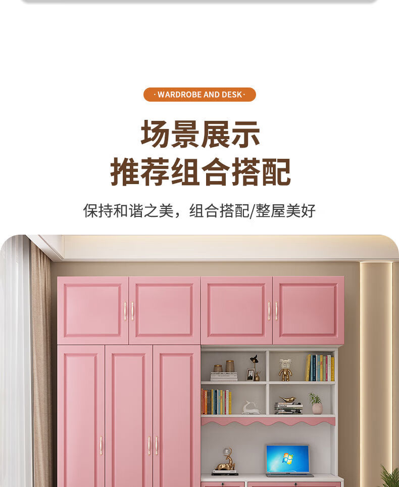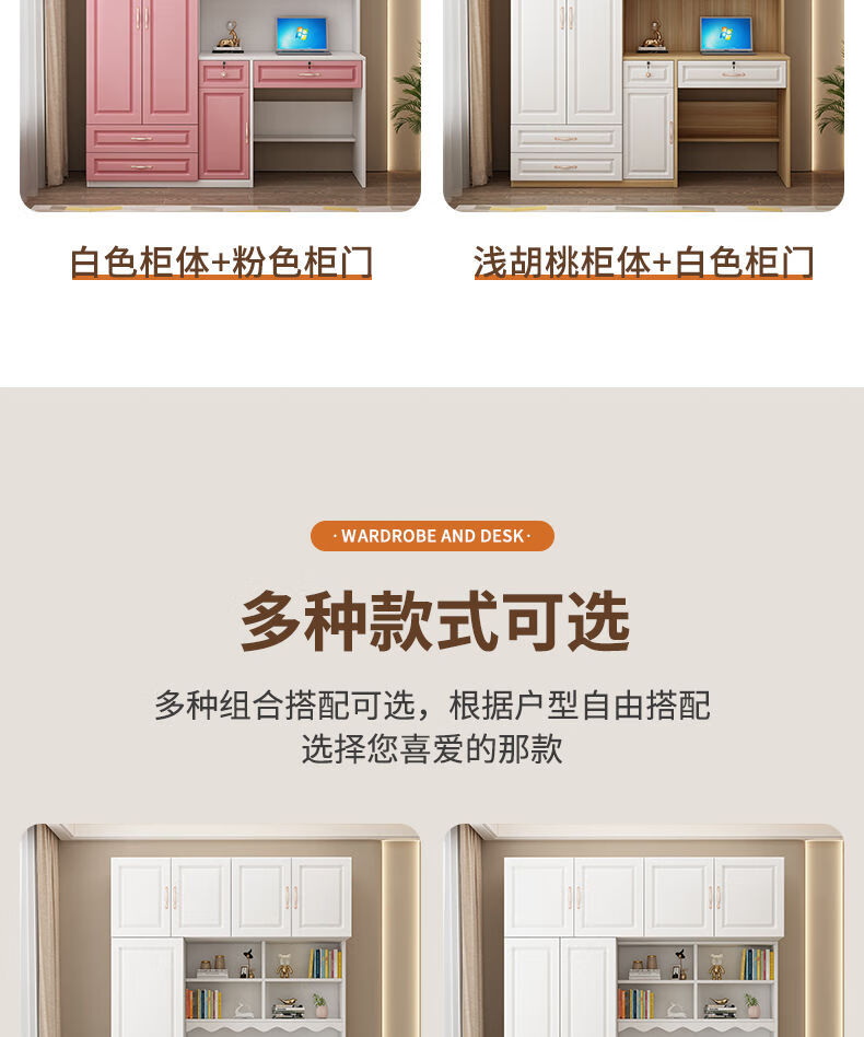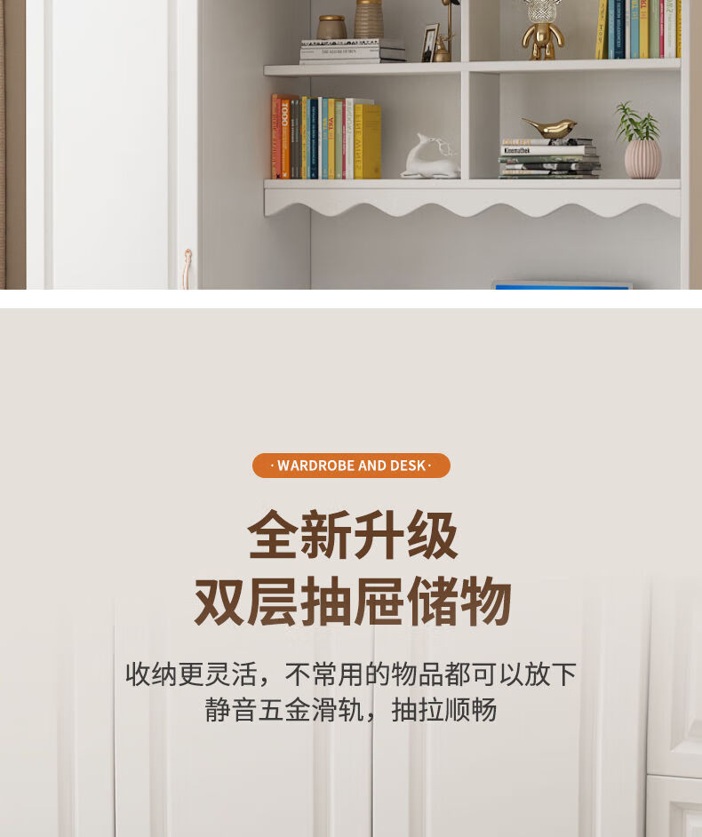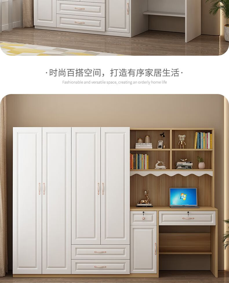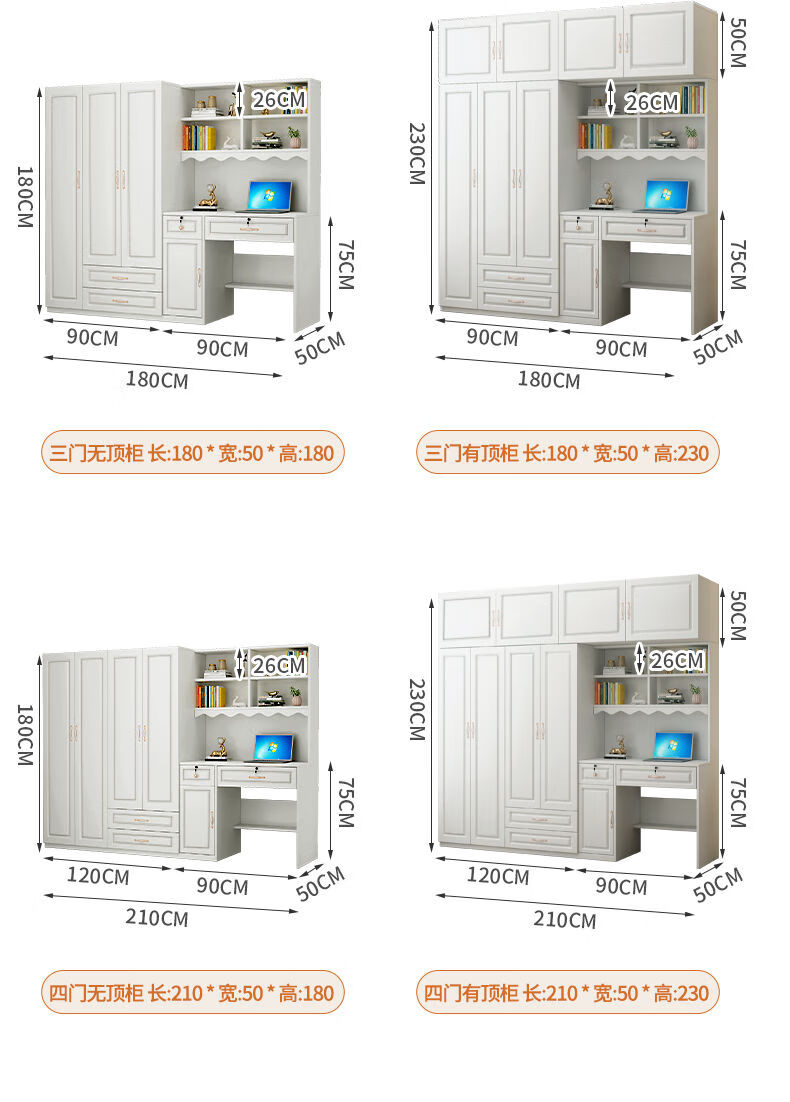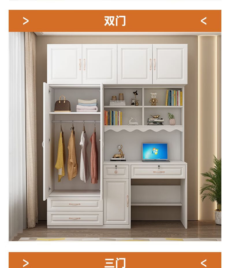 家梦绮2025新款实木电脑桌带衣柜简约台式卧室书架学生写字台连体书桌柜 实木生态板1.5+顶衣柜在左+包安装