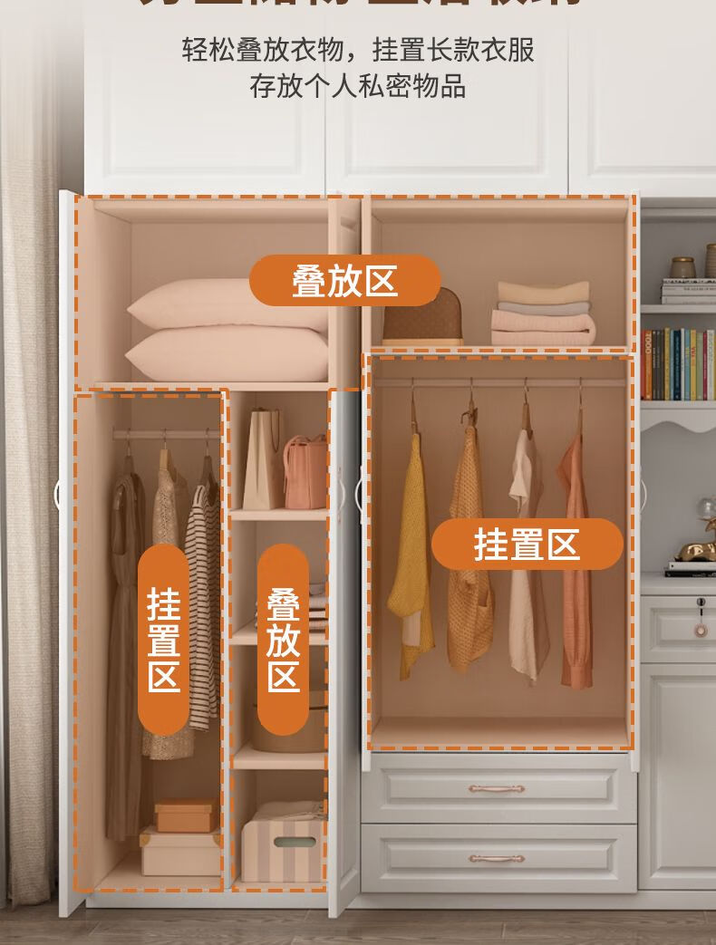 柏帝奇儿童衣柜出租房用卧室简易经济型结实耐用收纳置物架多层衣橱家用 无帘款-大容量储物 十年质保-【加厚50长】