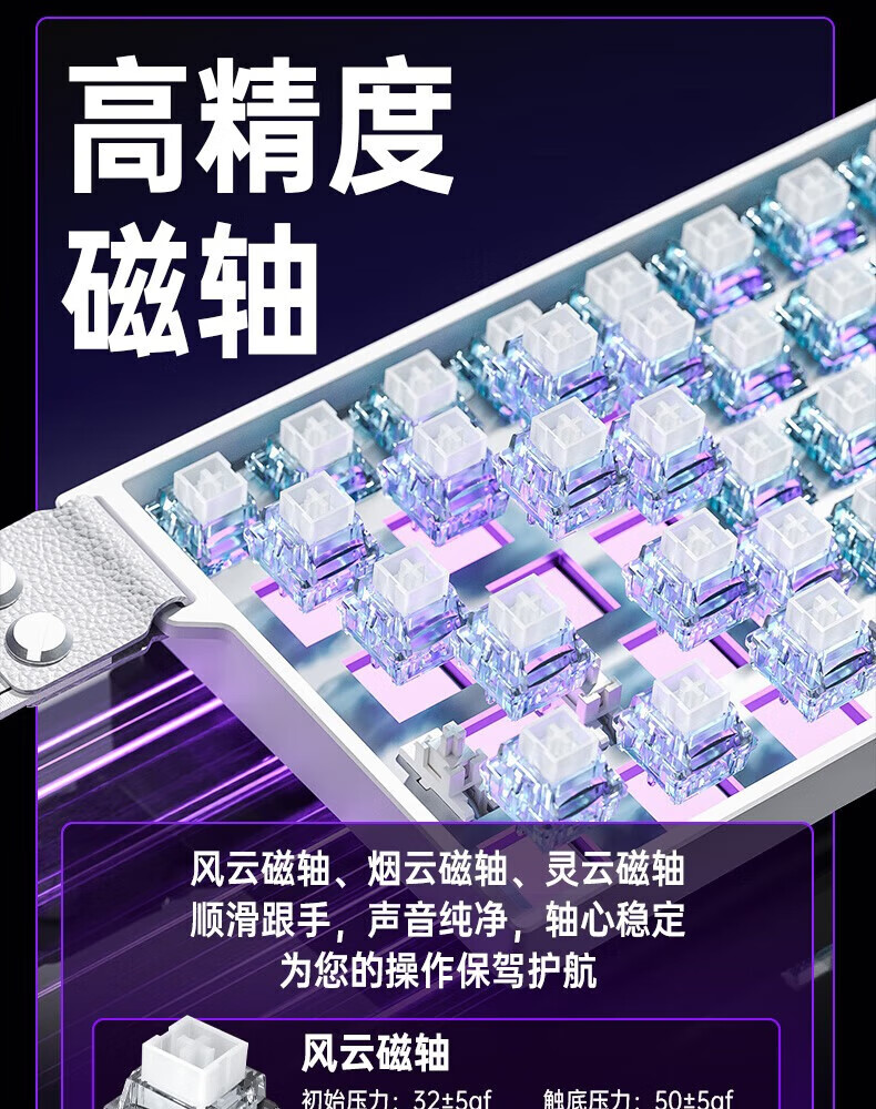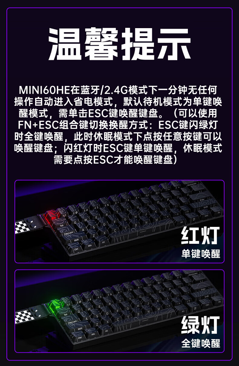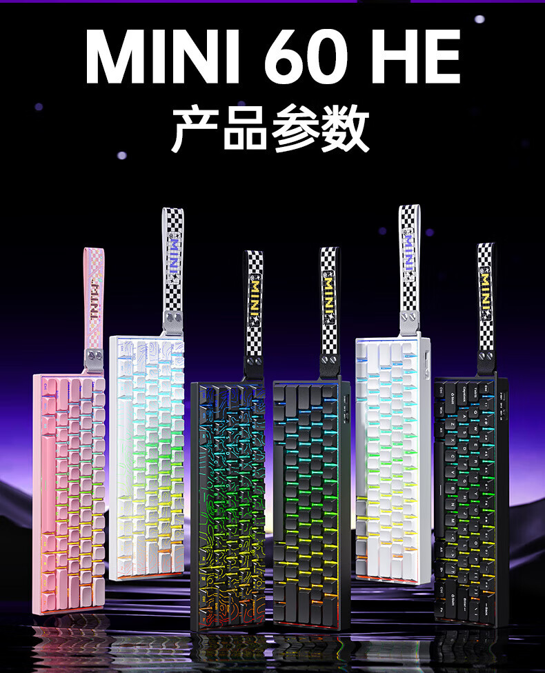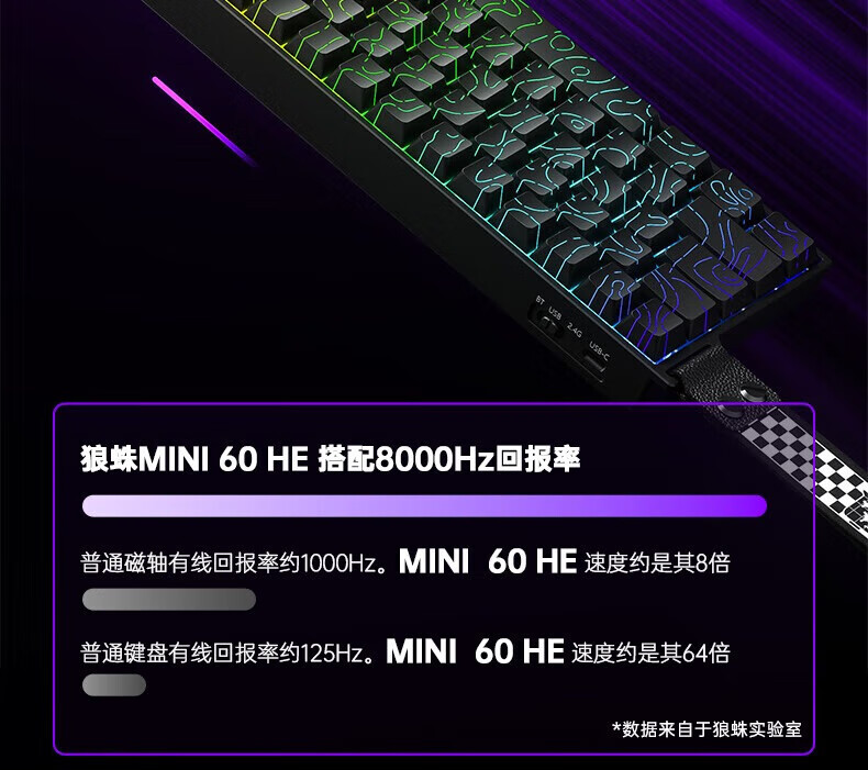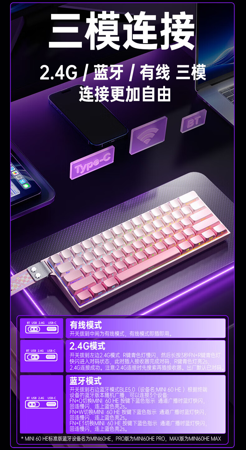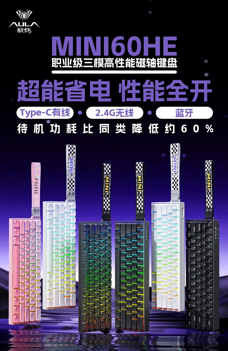 狼蛛(AULA)MINI 60HE磁轴键盘三模 电竞游戏客制化机械无线/蓝牙连接网页驱动 无畏契约 8K回报率Win/Hero 最新升级款-黑雾透【冰云磁轴】