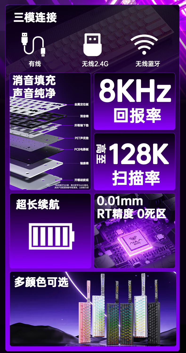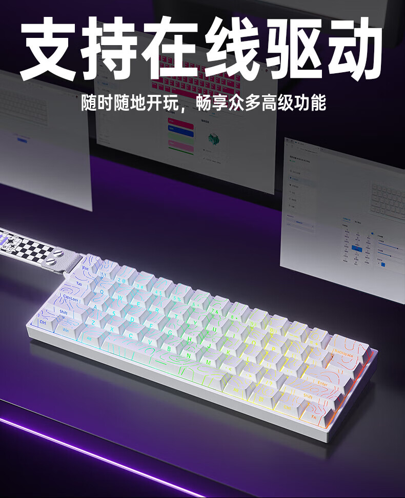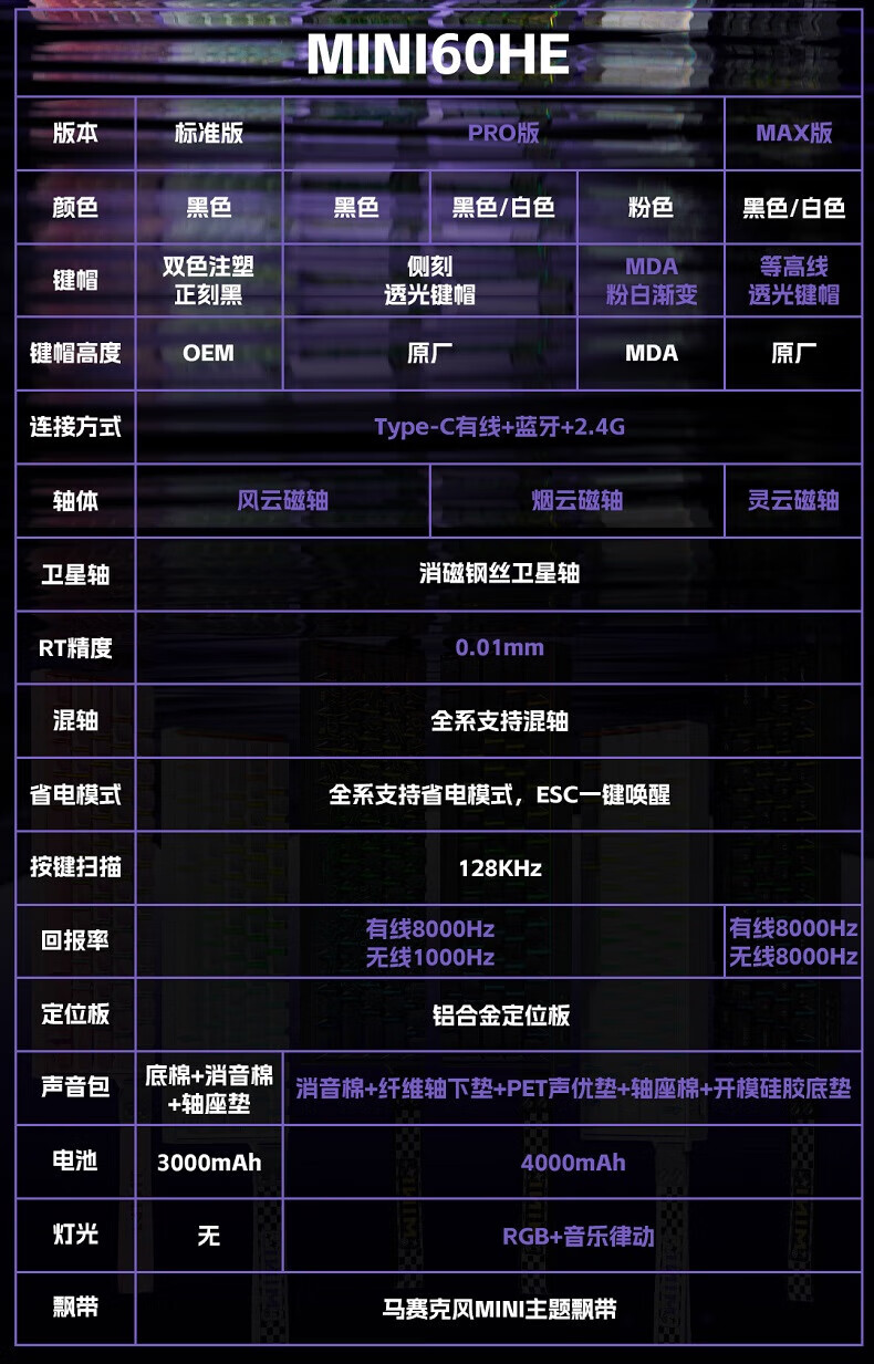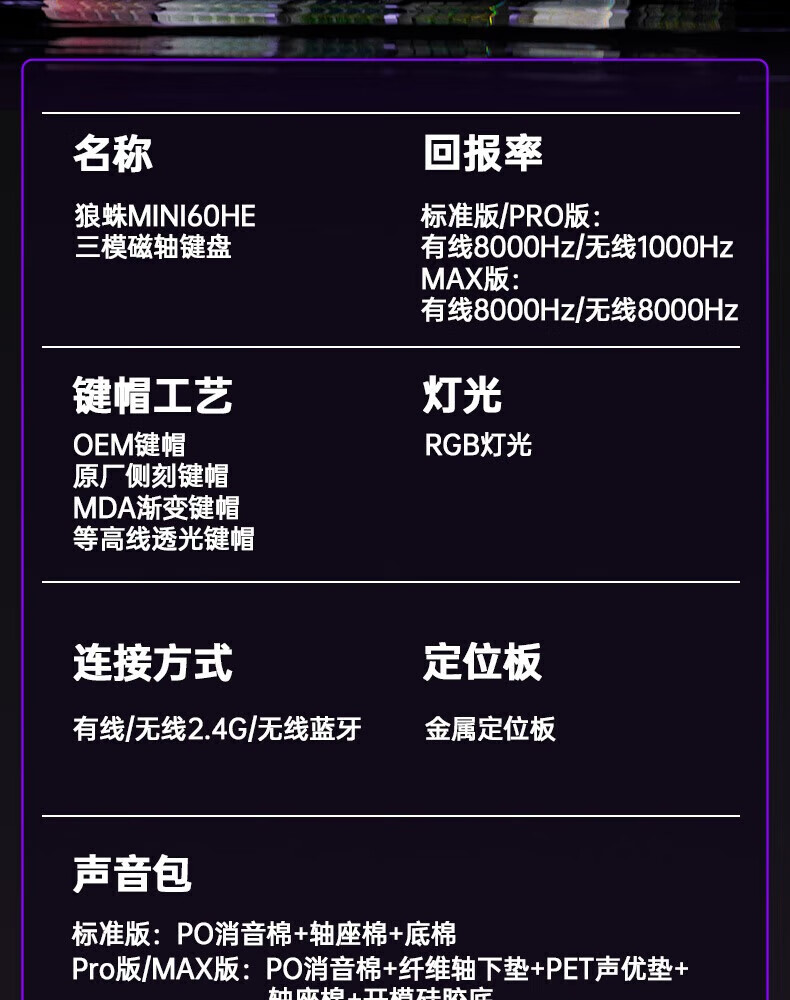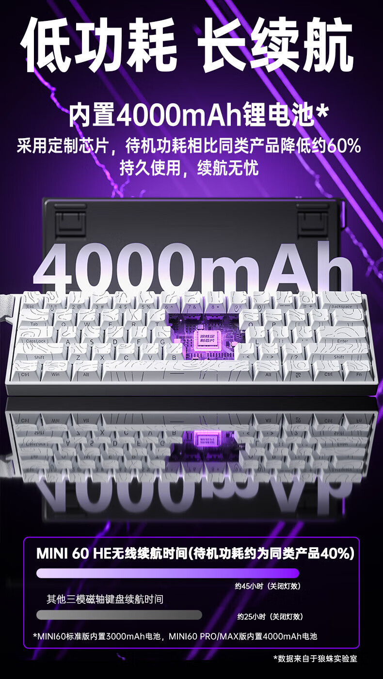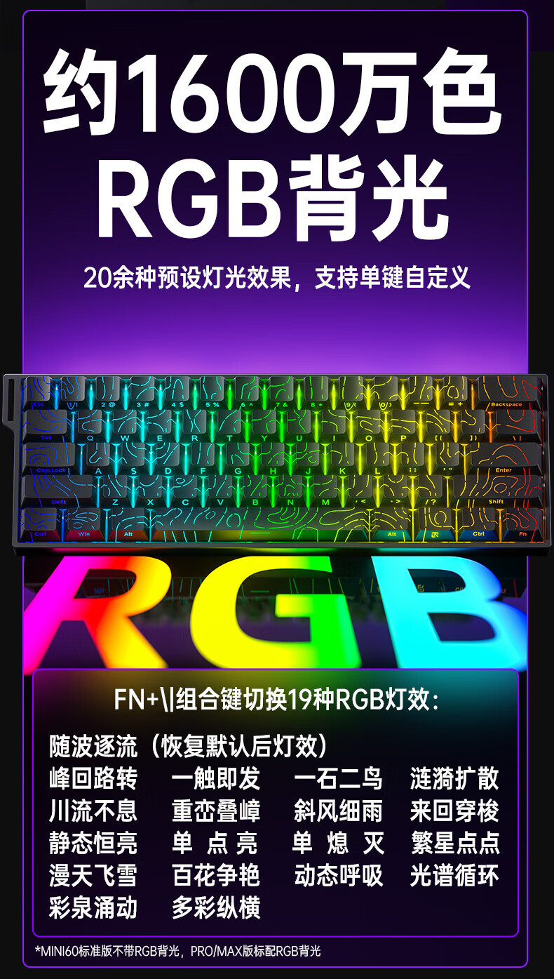 狼蛛(AULA)MINI 60HE磁轴键盘三模 电竞游戏客制化机械无线/蓝牙连接网页驱动 无畏契约 8K回报率Win/Hero 最新升级款-黑雾透【冰云磁轴】