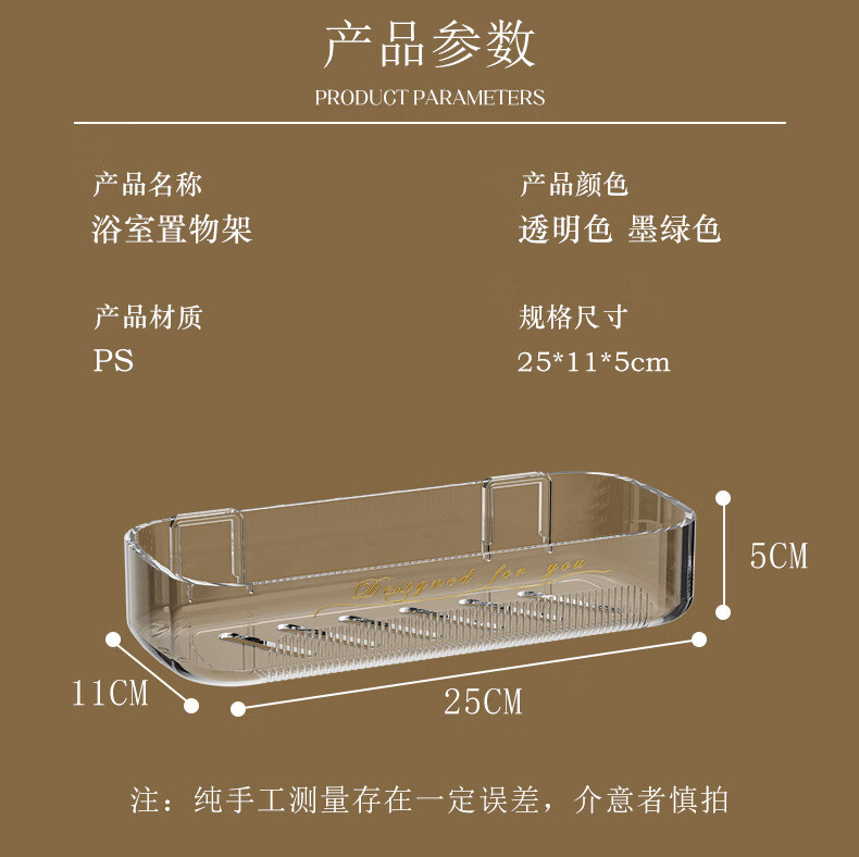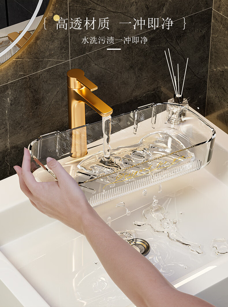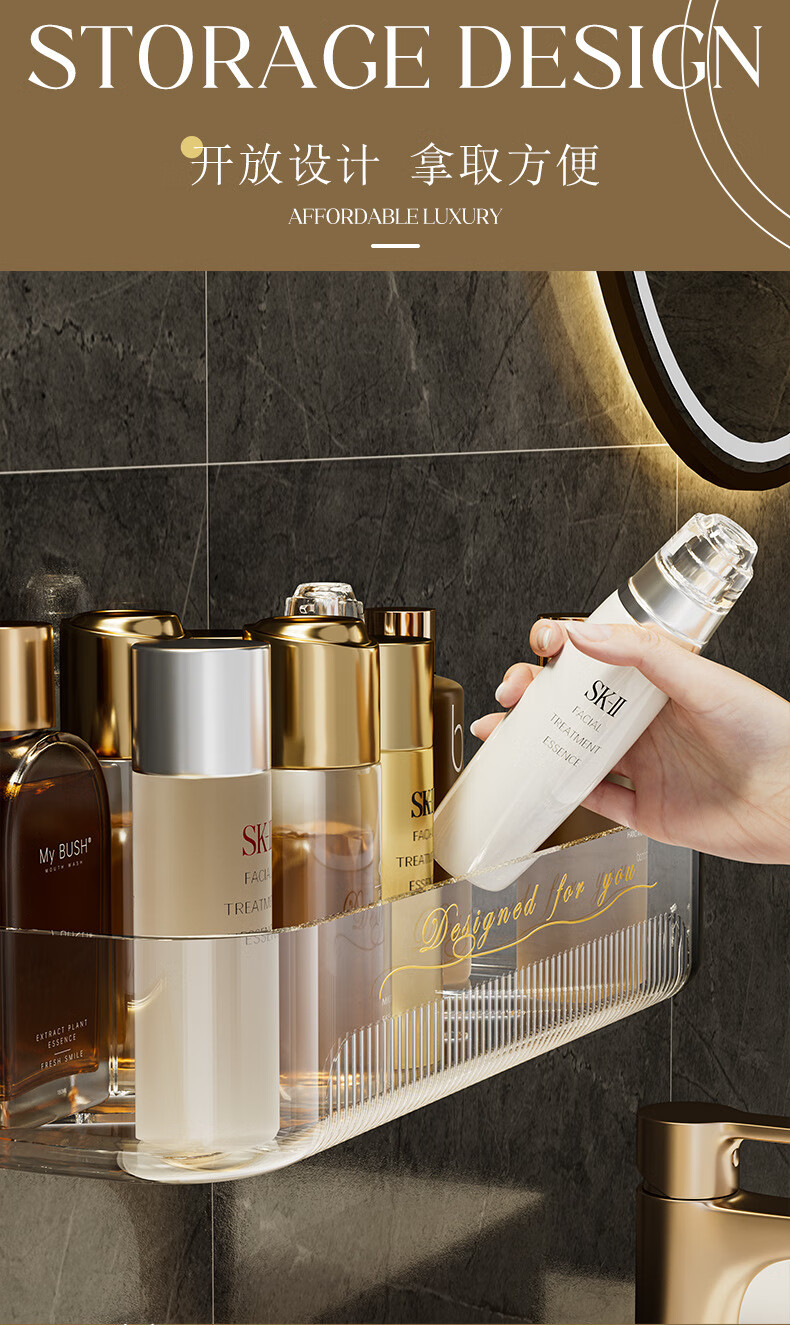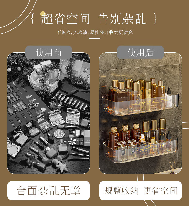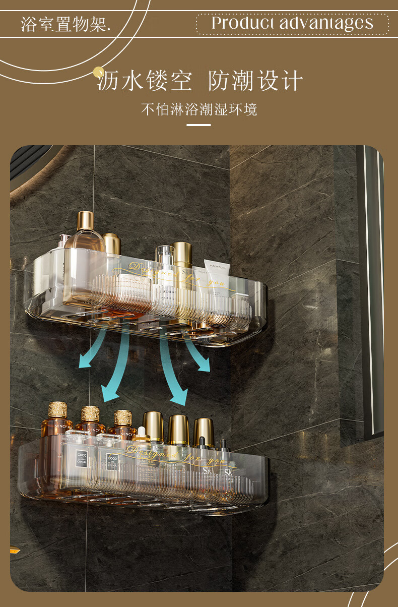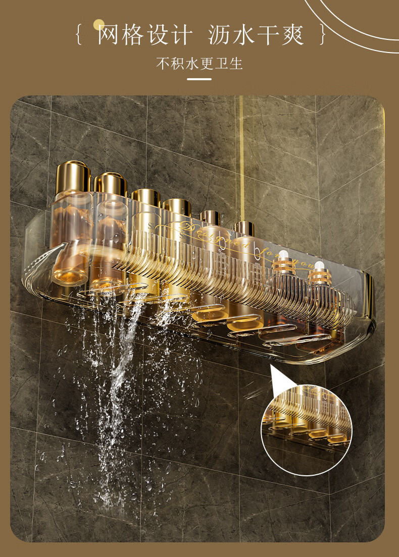 免打孔浴室置物架家用卫生间洗漱用品沥水加高轻奢无痕壁挂收纳架 流光置物架【透明色】
