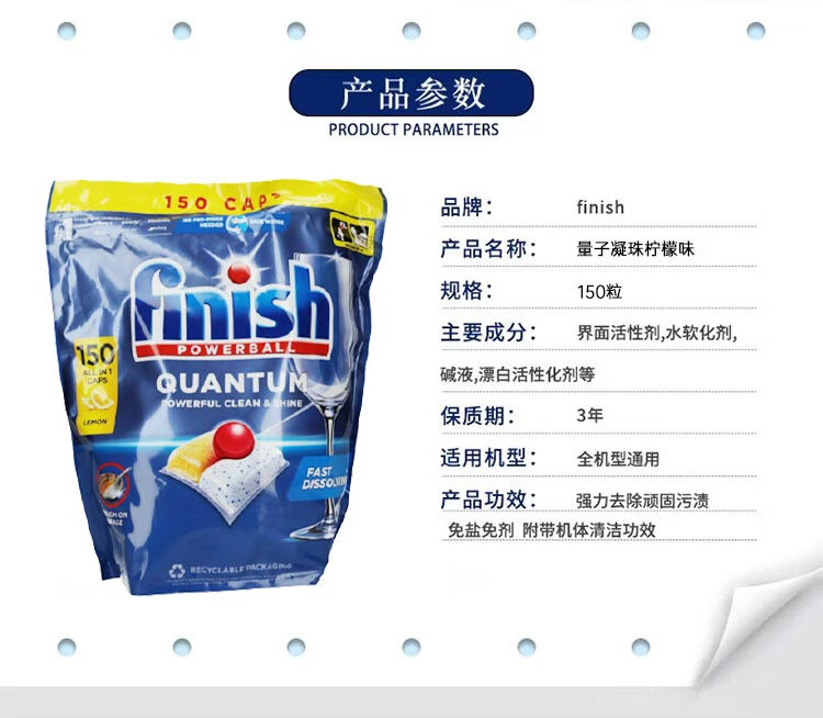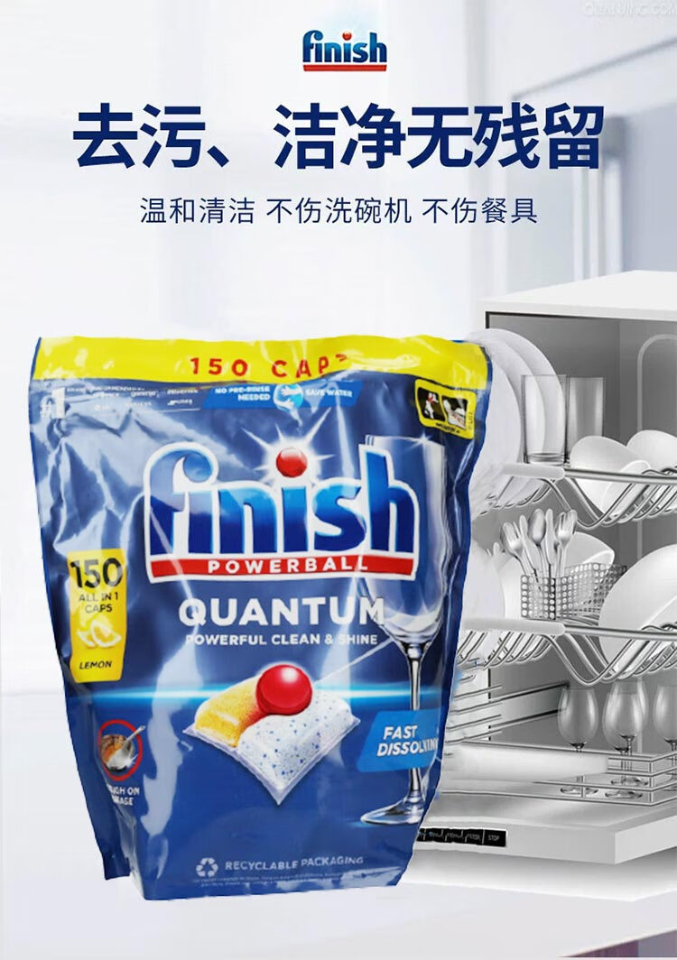 亮碟(finish)量子凝珠柠檬味 去油污水垢清洁养护洗碗机耗材 150粒