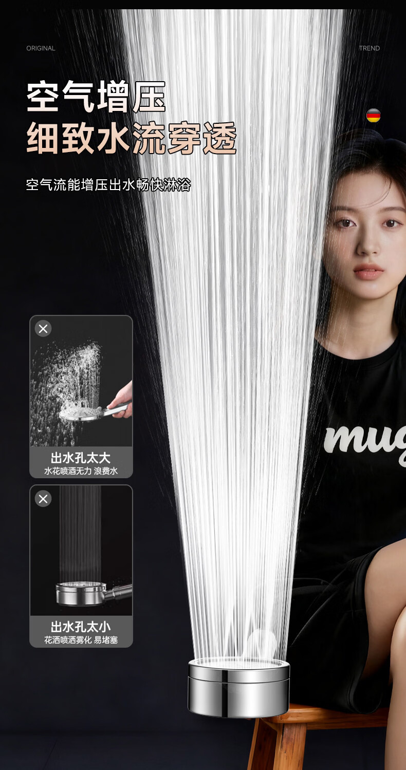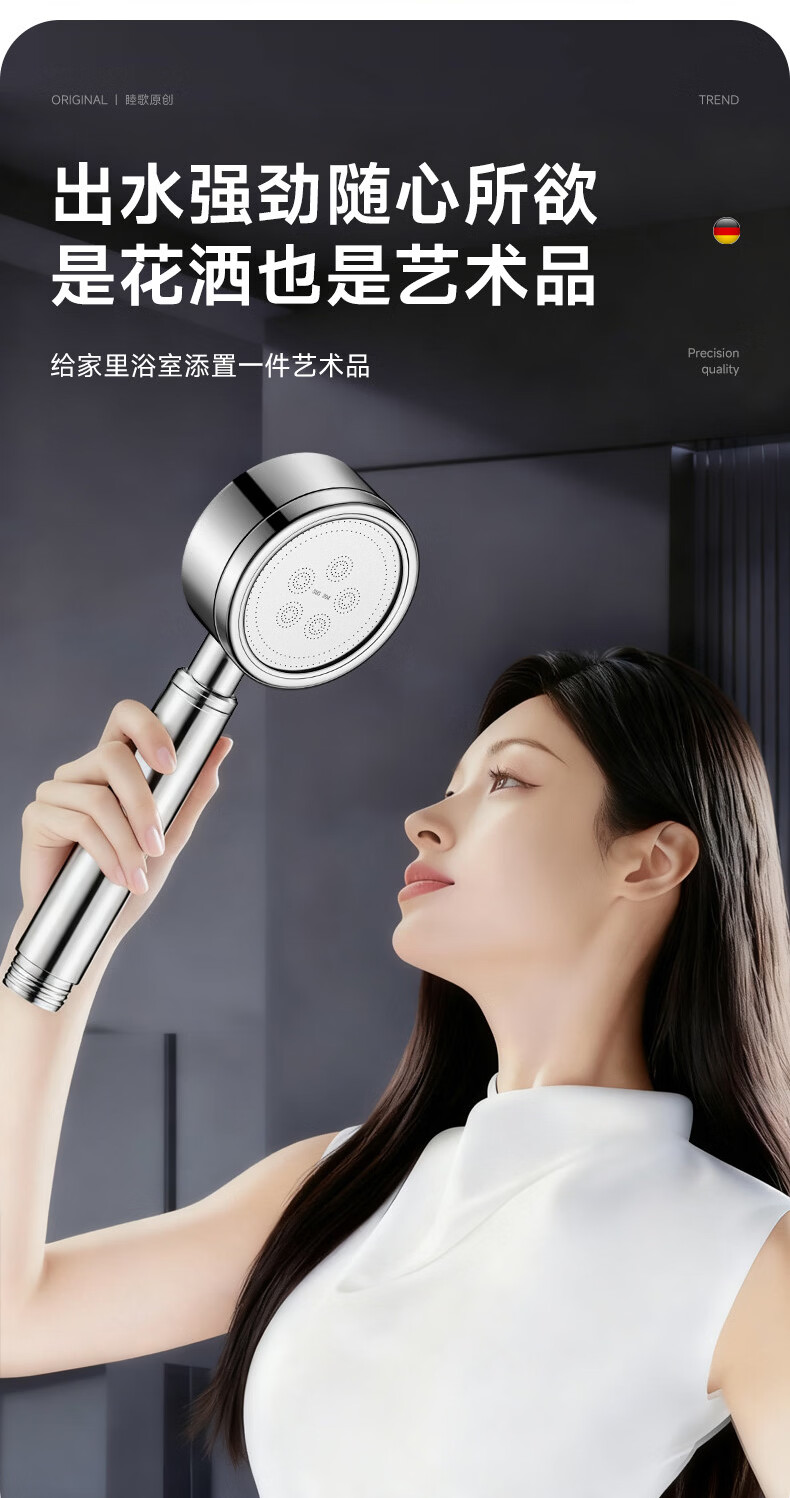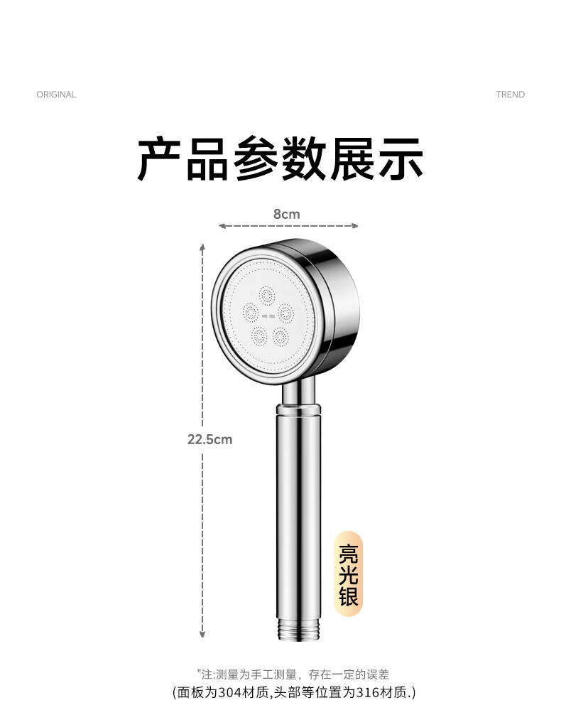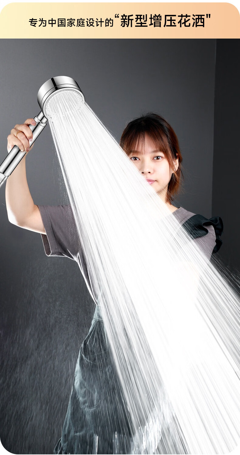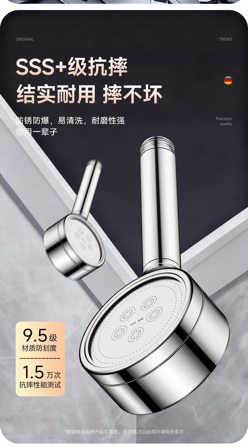 WUZORY【德国】淋浴增压花洒喷头带软管一套家用304不锈钢手持莲蓬喷头 304不锈钢单花洒喷头 真304不锈钢丨畅爽酒店式淋浴