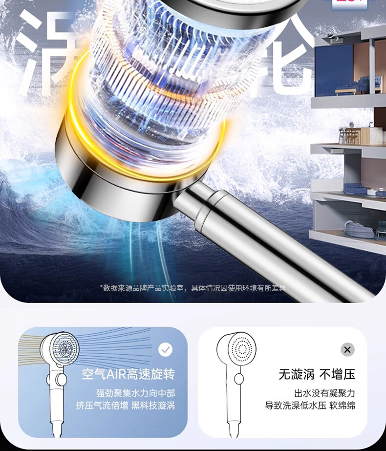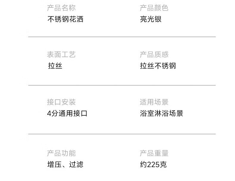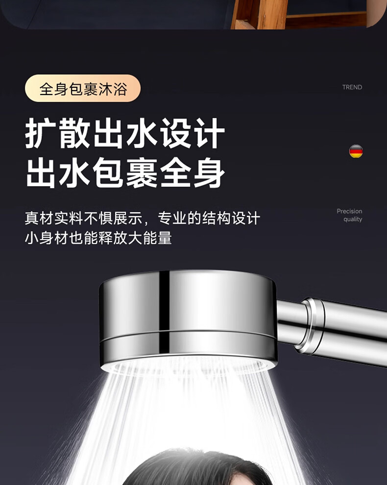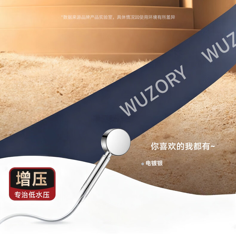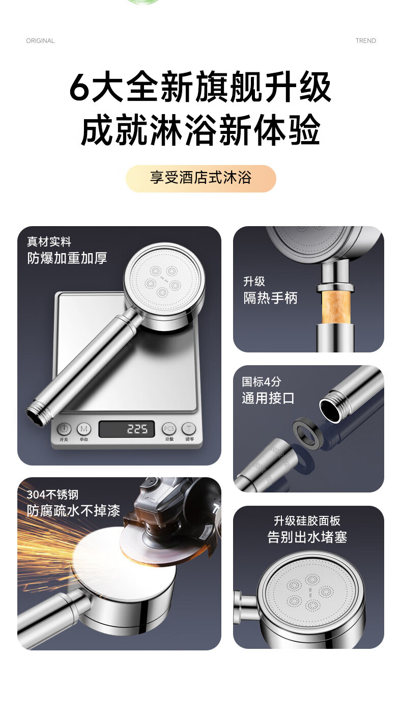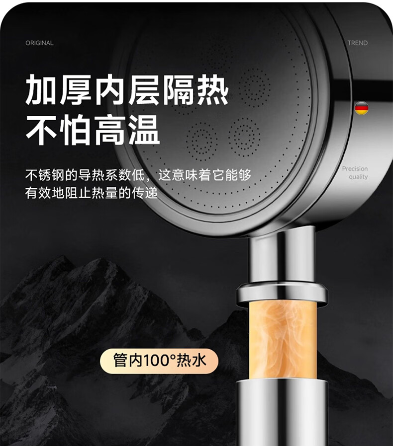 WUZORY【德国】淋浴增压花洒喷头带软管一套家用304不锈钢手持莲蓬喷头 304不锈钢单花洒喷头 真304不锈钢丨畅爽酒店式淋浴