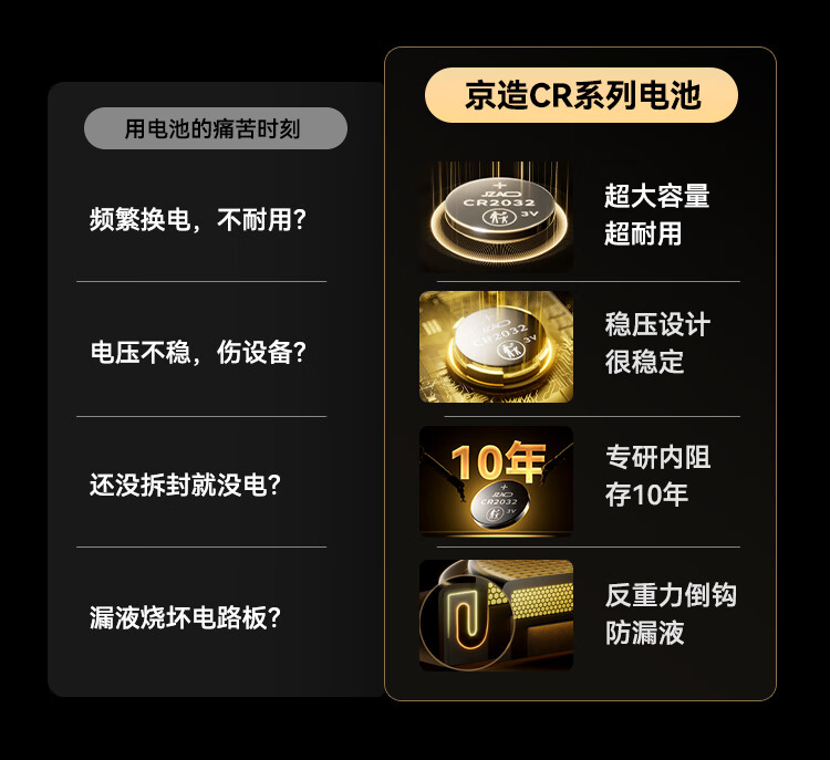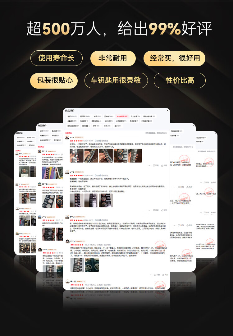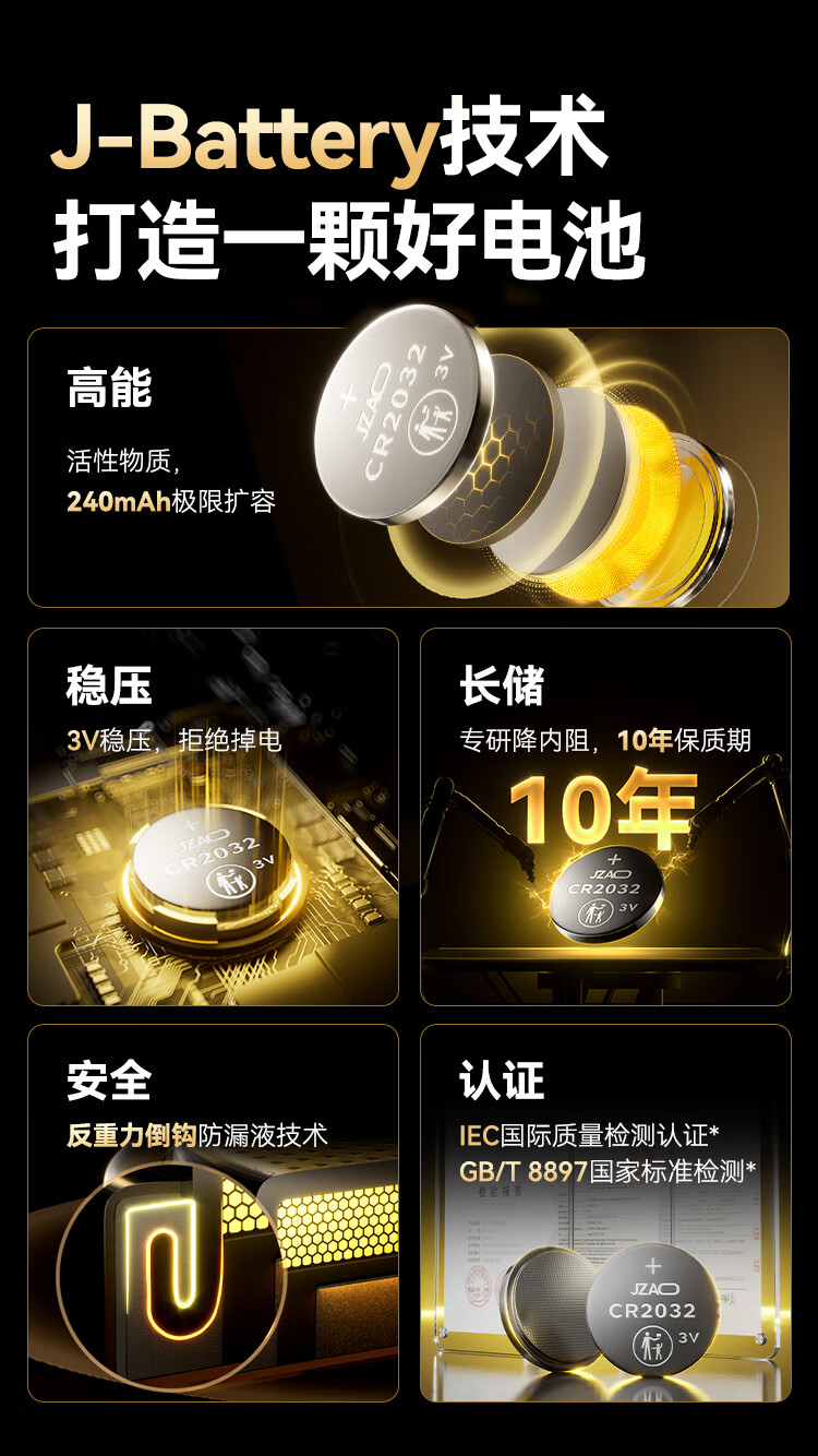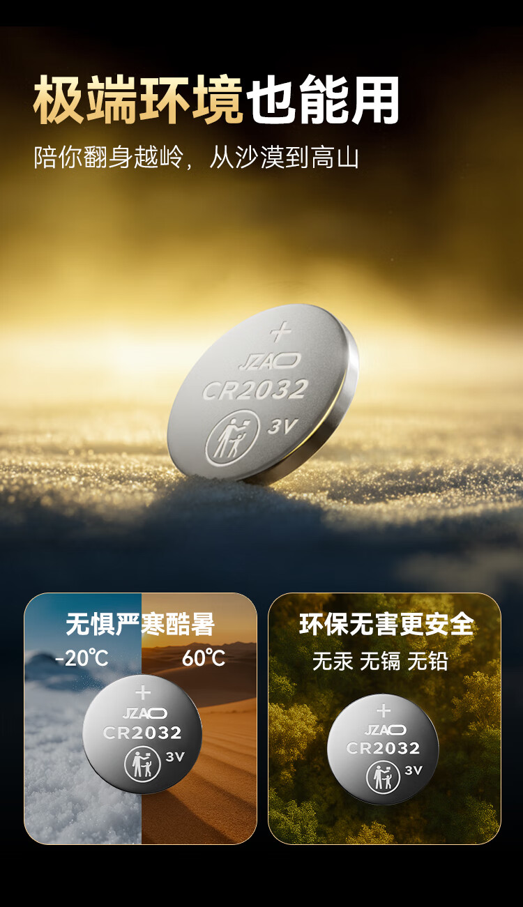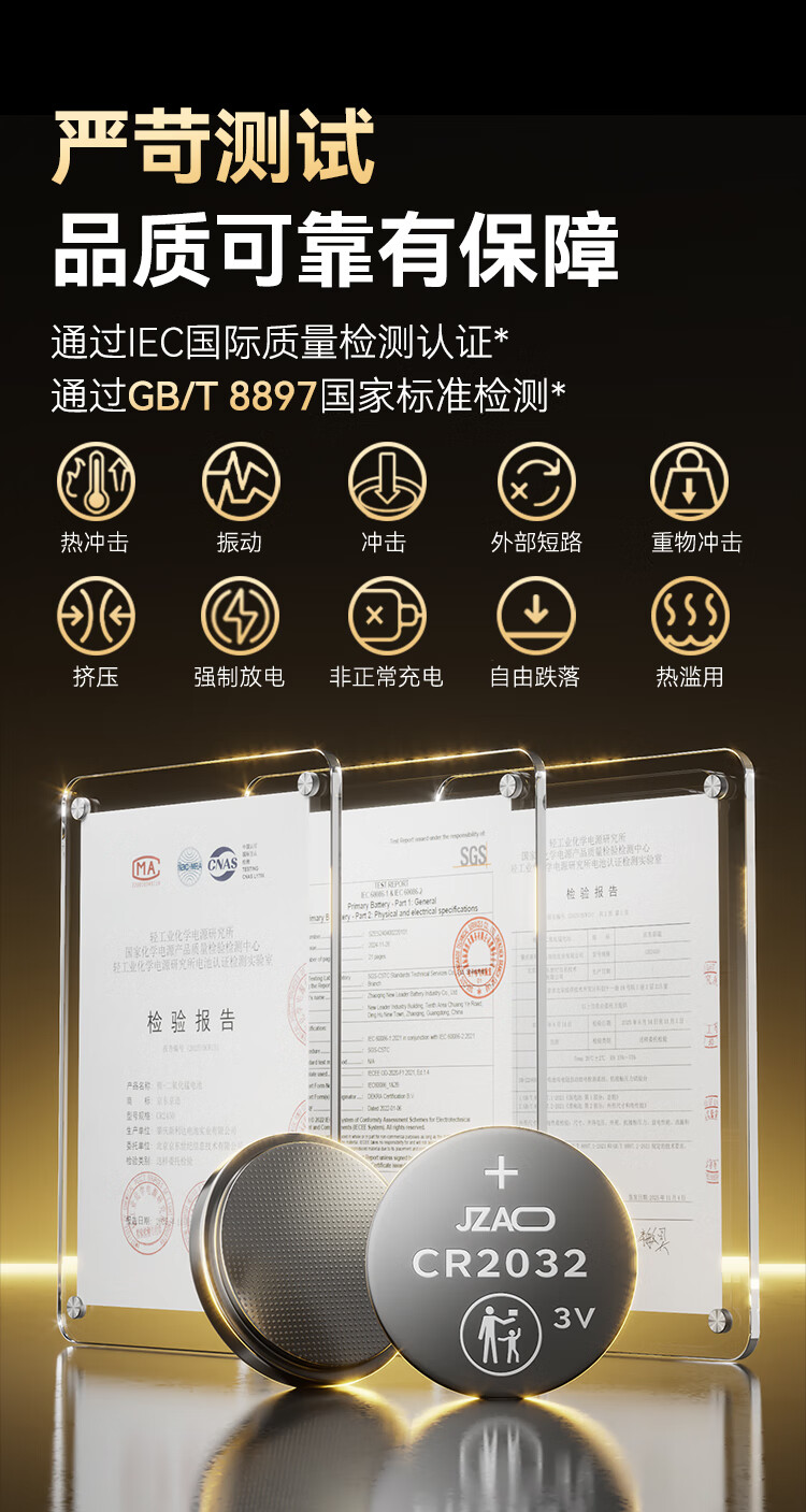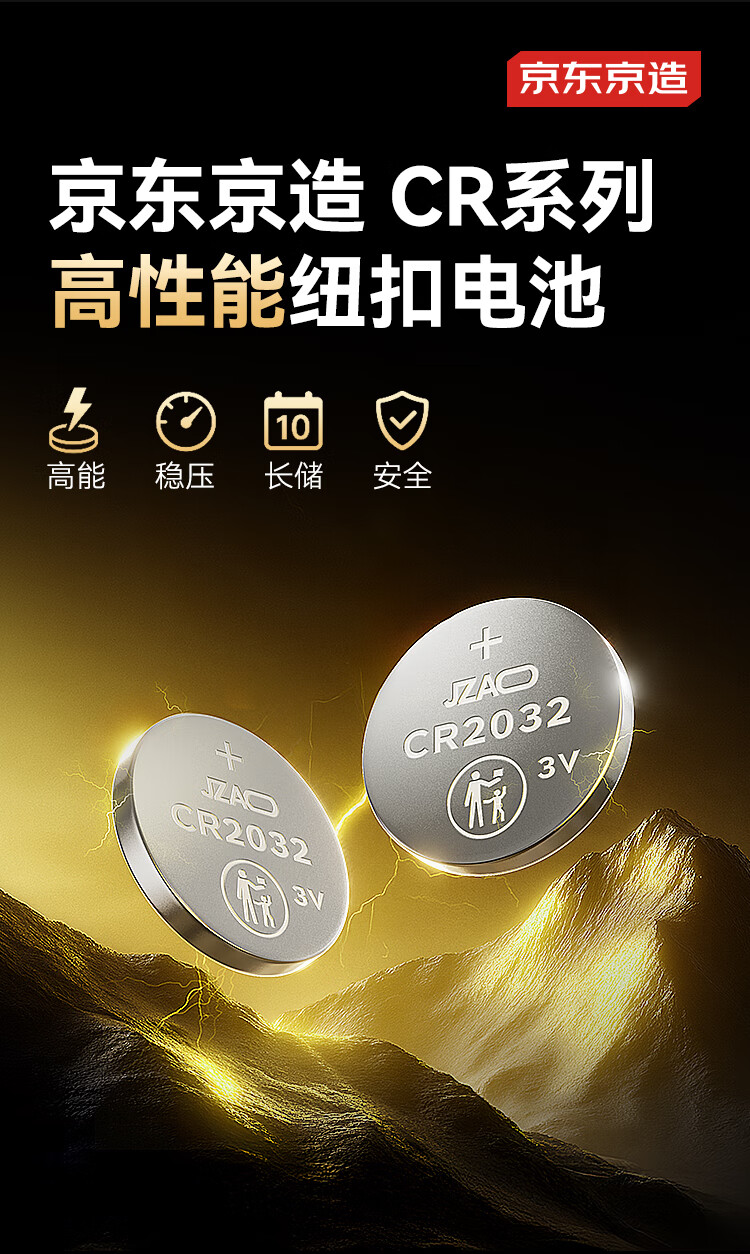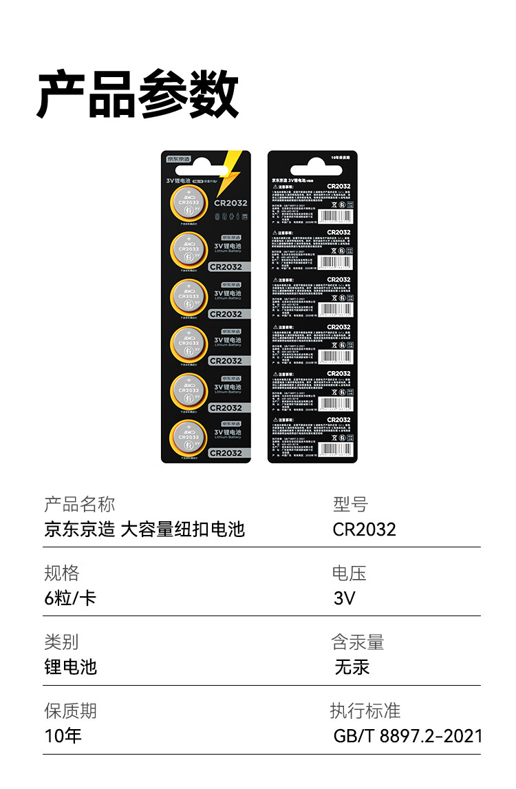 京东京造 CR2032纽扣电池6粒装 3V锂电池 适用大众奥迪宝马奔驰等汽车钥匙手表遥控器电脑主板对讲机
