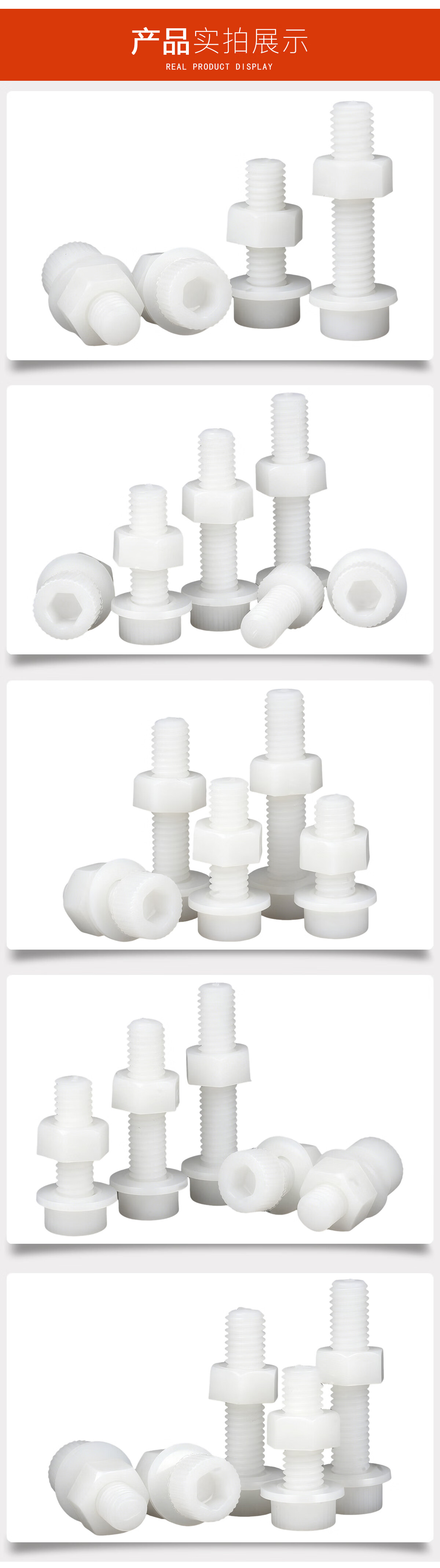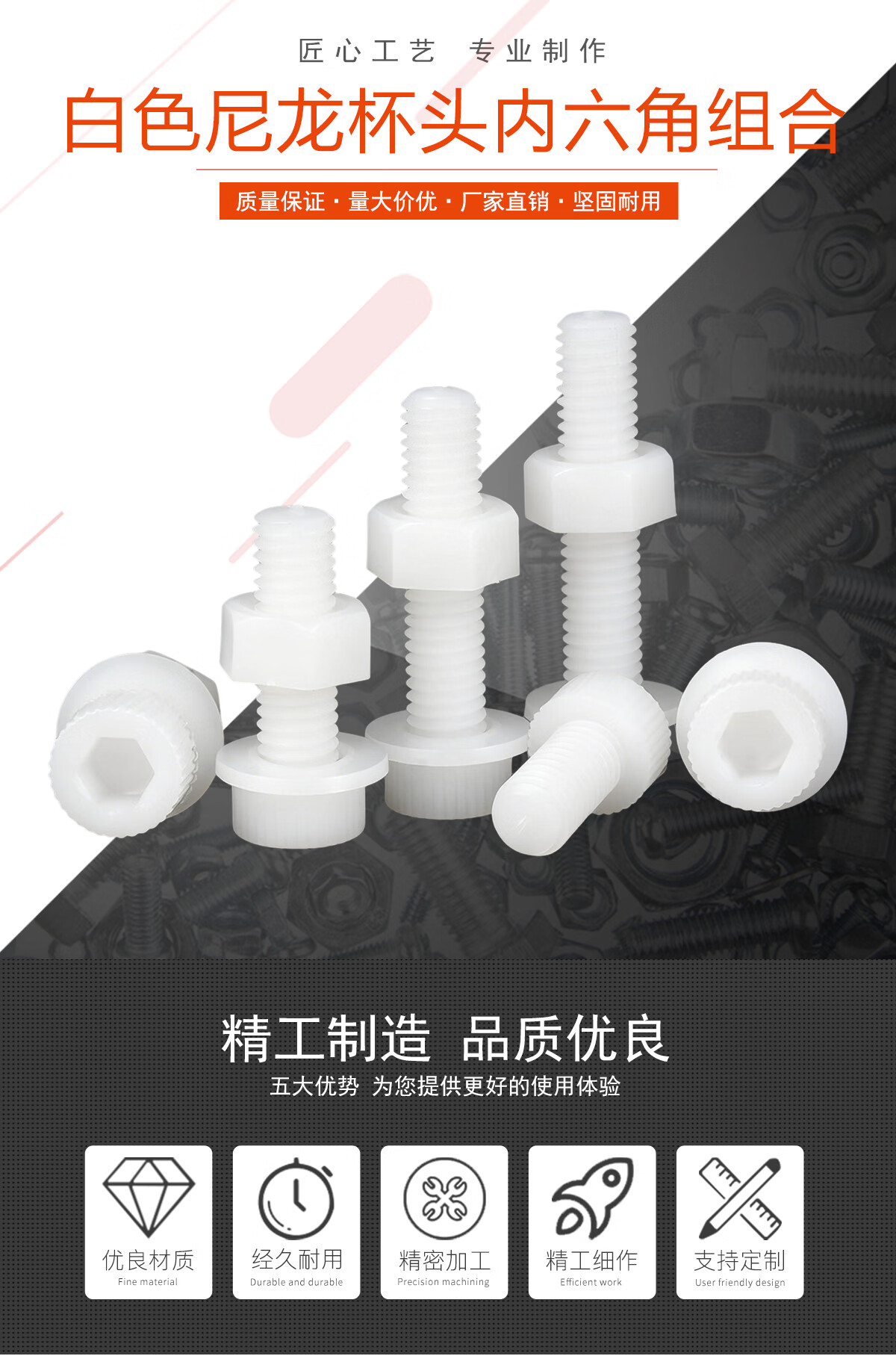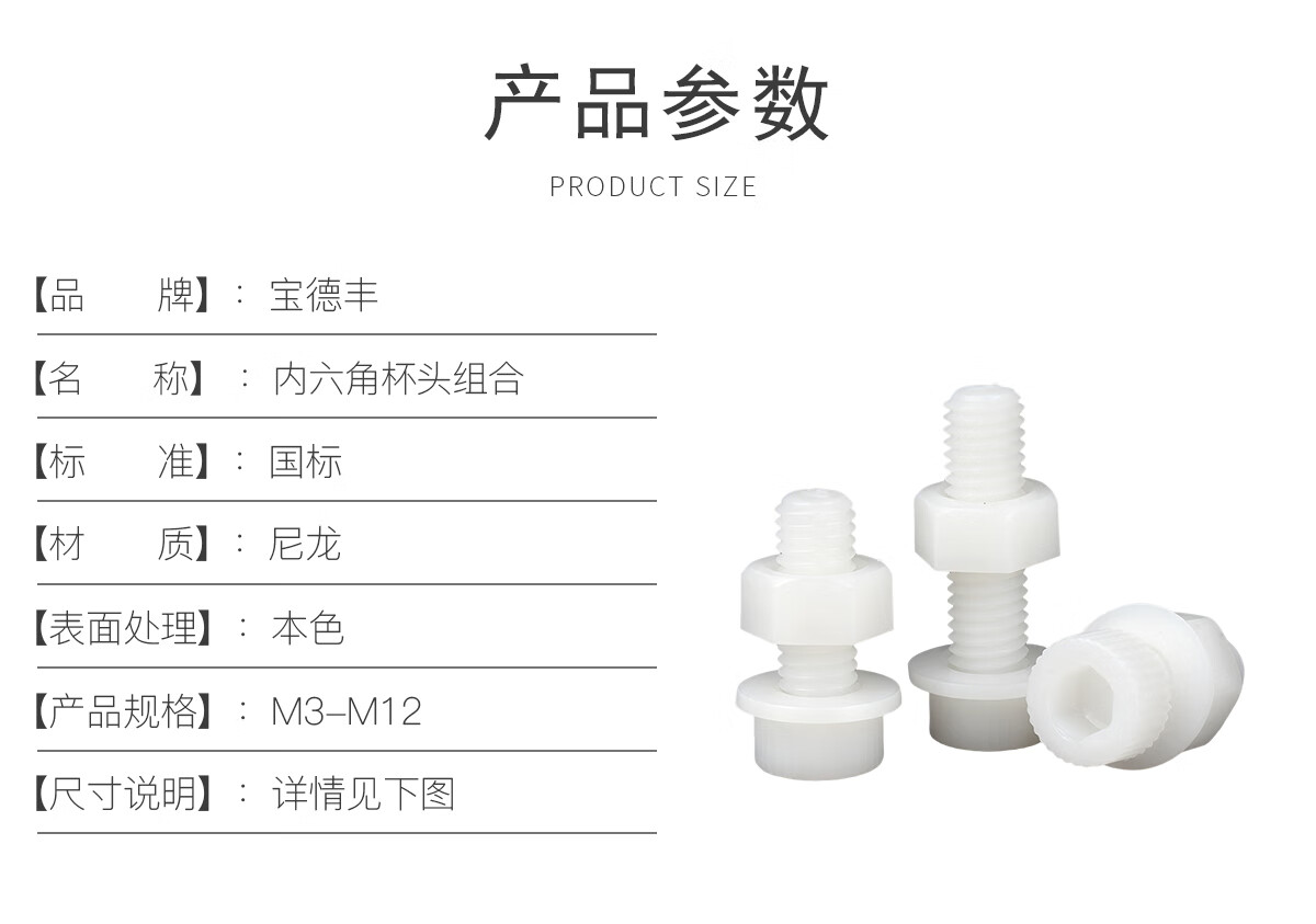 宝德丰白色尼龙内六角螺丝螺母垫片组合套装塑料绝缘杯头螺栓大全M2-M12 M3x4[100套]