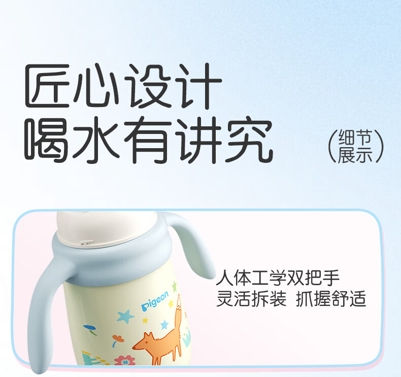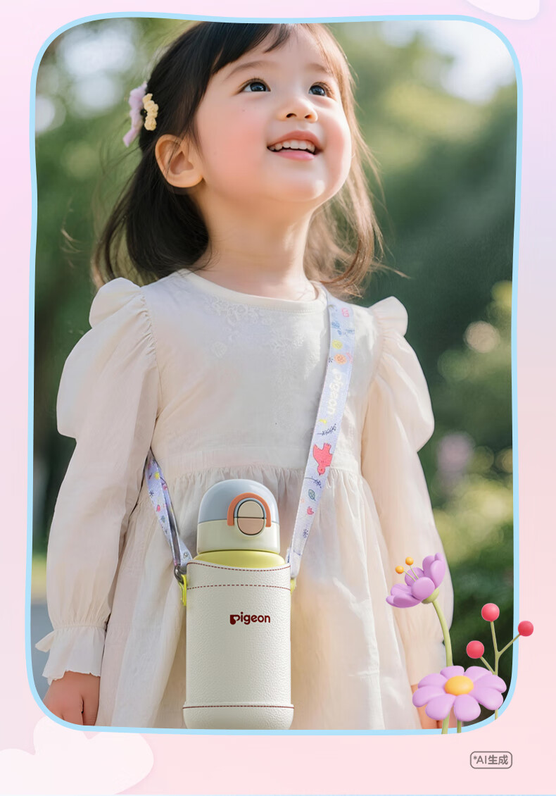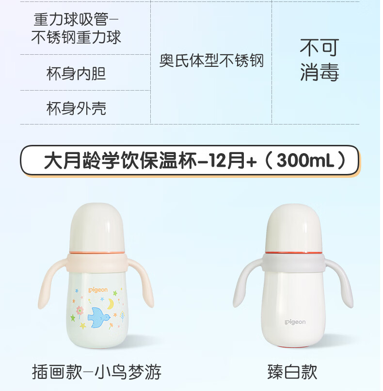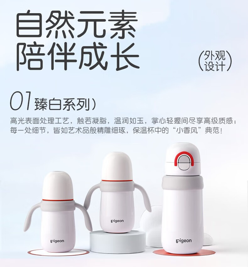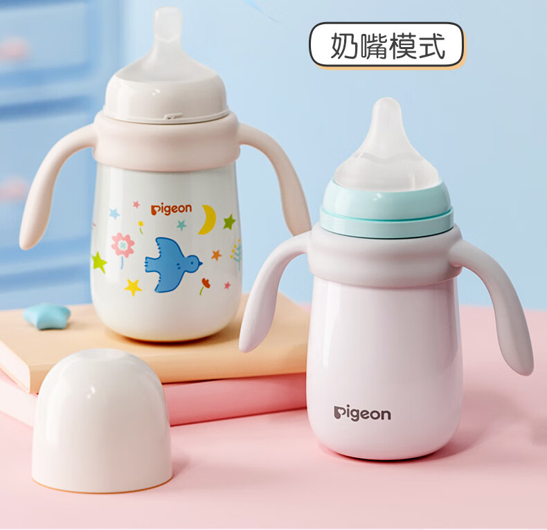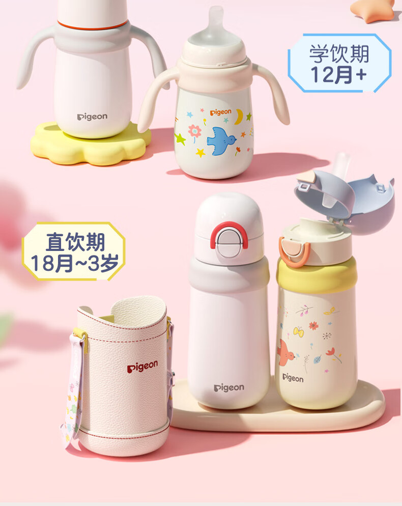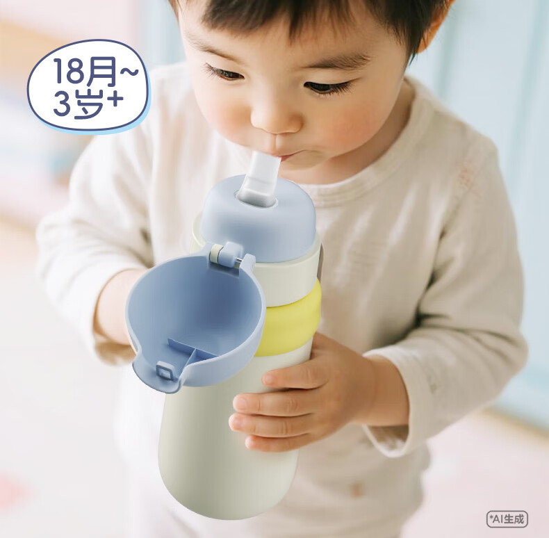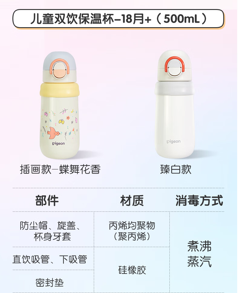 贝亲水杯 大容量宝宝保温杯 儿童保温饮水杯 双饮口吸管杯 保冷杯 500ml 保温杯-灰色