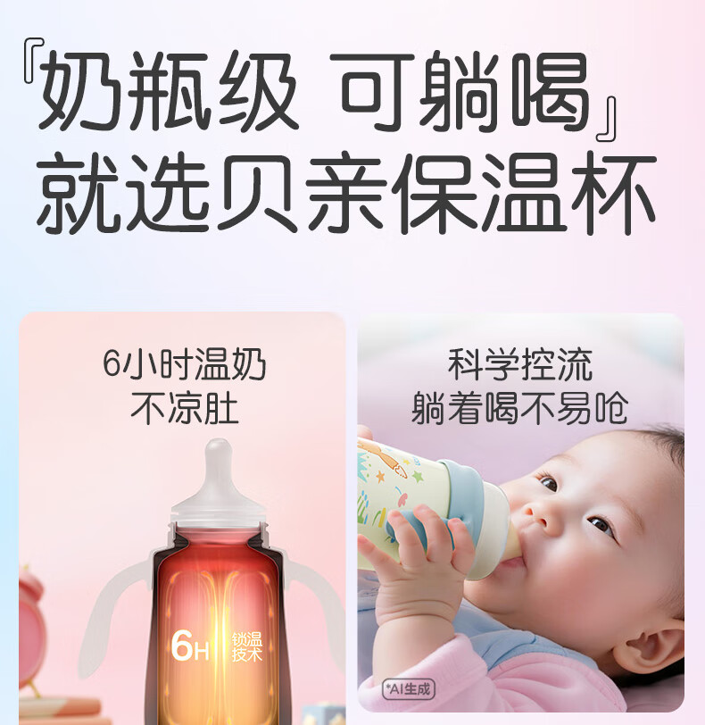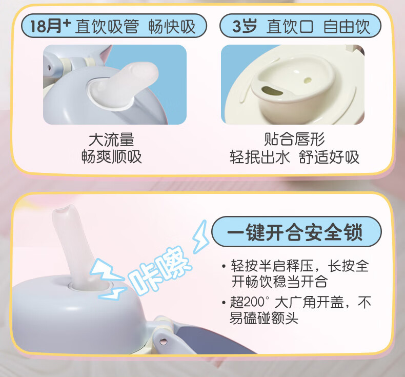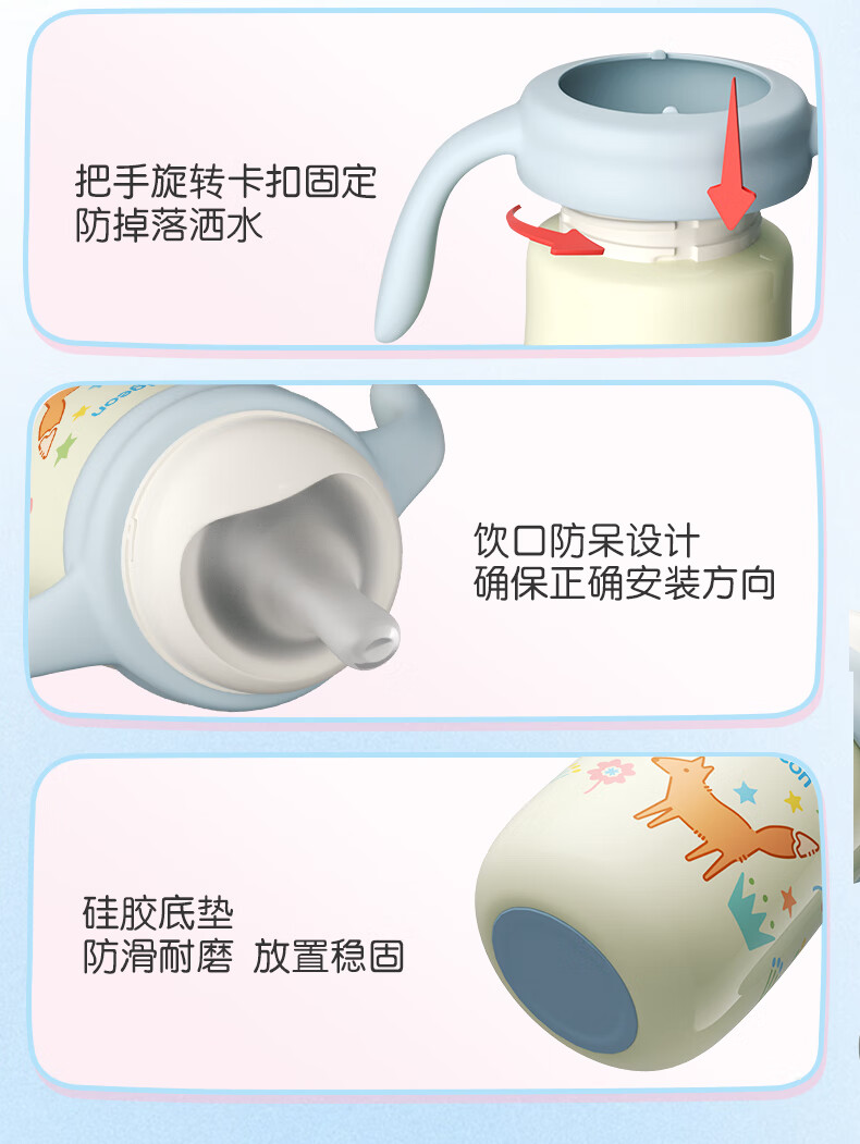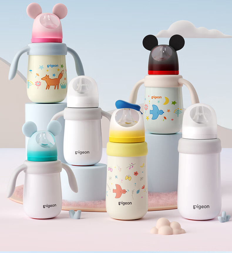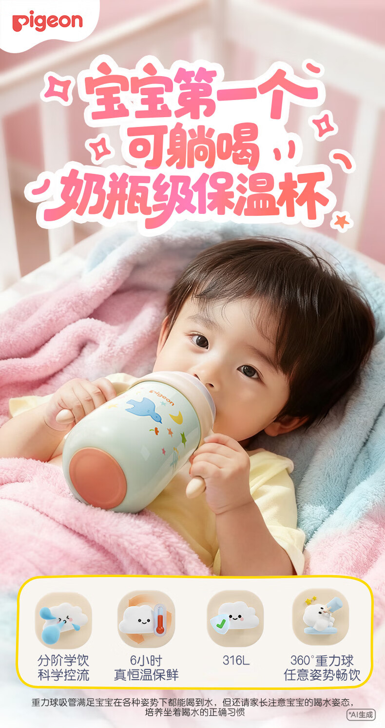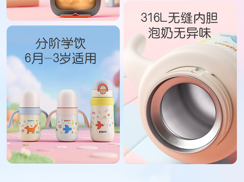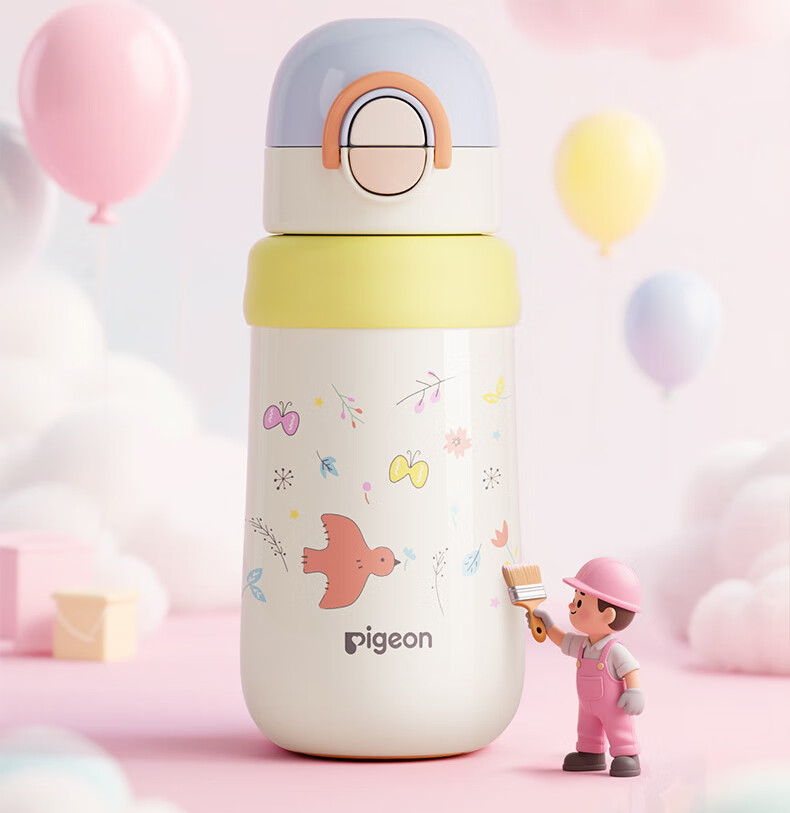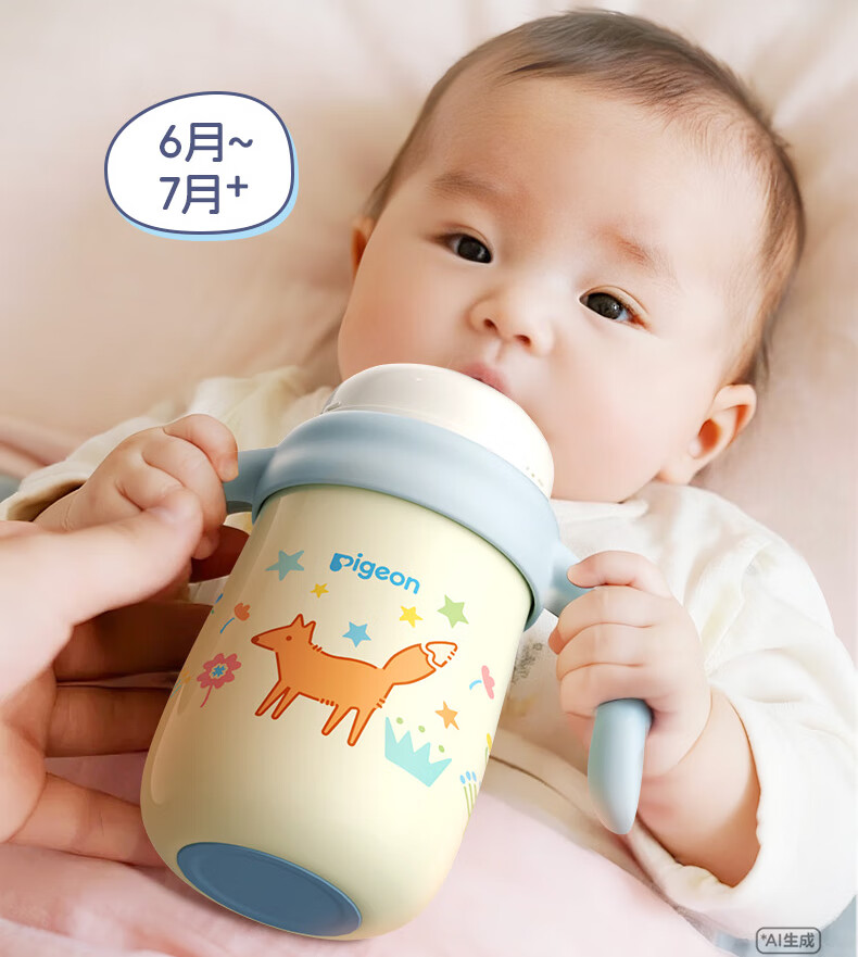 贝亲水杯 大容量宝宝保温杯 儿童保温饮水杯 双饮口吸管杯 保冷杯 500ml 保温杯-灰色