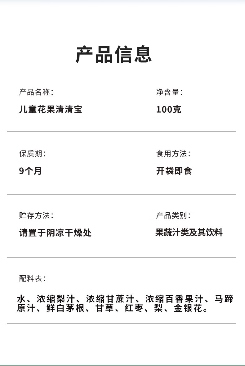 比逗仕儿童花果清清宝*1盒(11袋)儿童果汁清凉降燥
