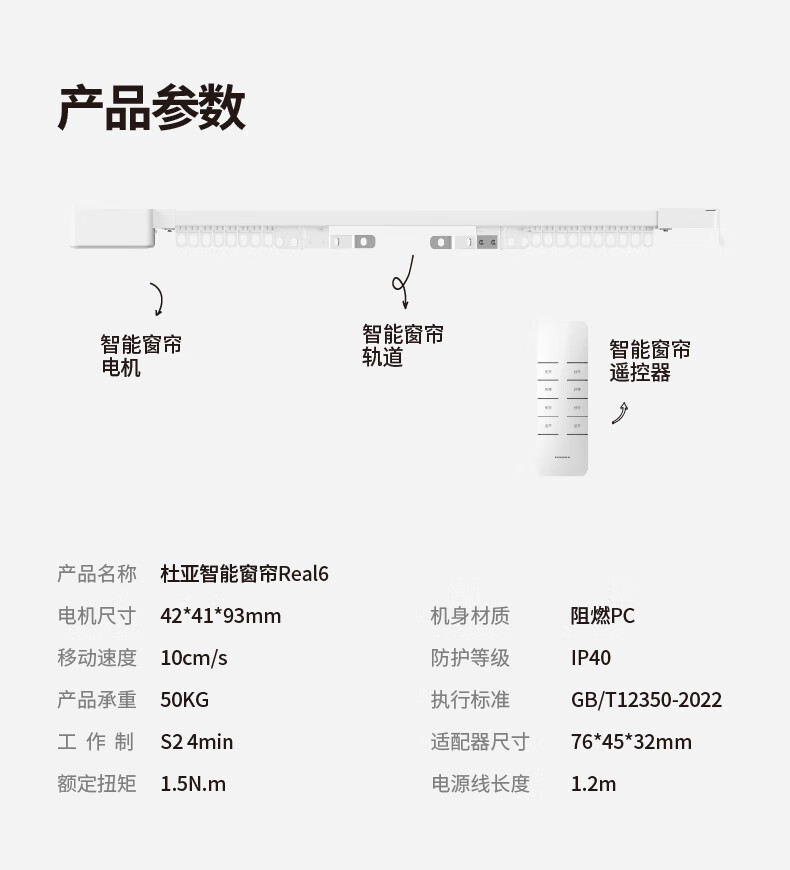 杜亚(DOOYA)Real6蓝牙2.0版智能电动窗帘家居自动窗帘电机语音控制不含布 4米直轨定制蓝牙版包安装