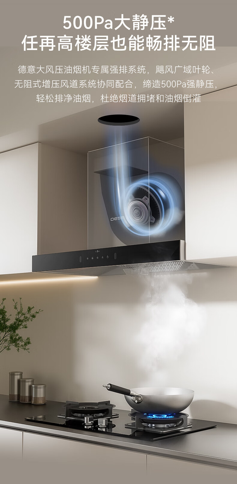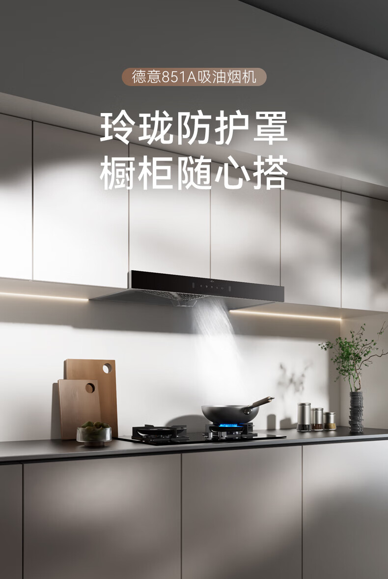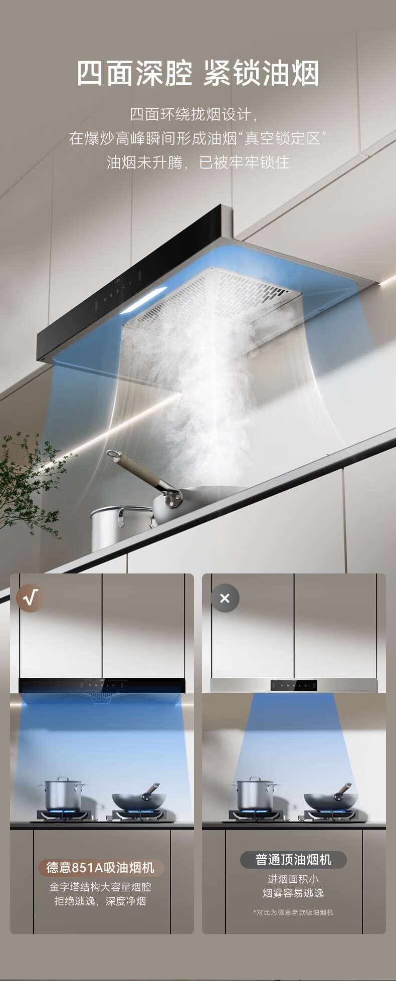 德意(DE&E) 抽油烟机家用 吸油烟机顶吸式欧式24立方大吸力免拆洗免换网挥手智控 换新不改柜烟机851A 【烟灶套装】24m³+716A天然气
