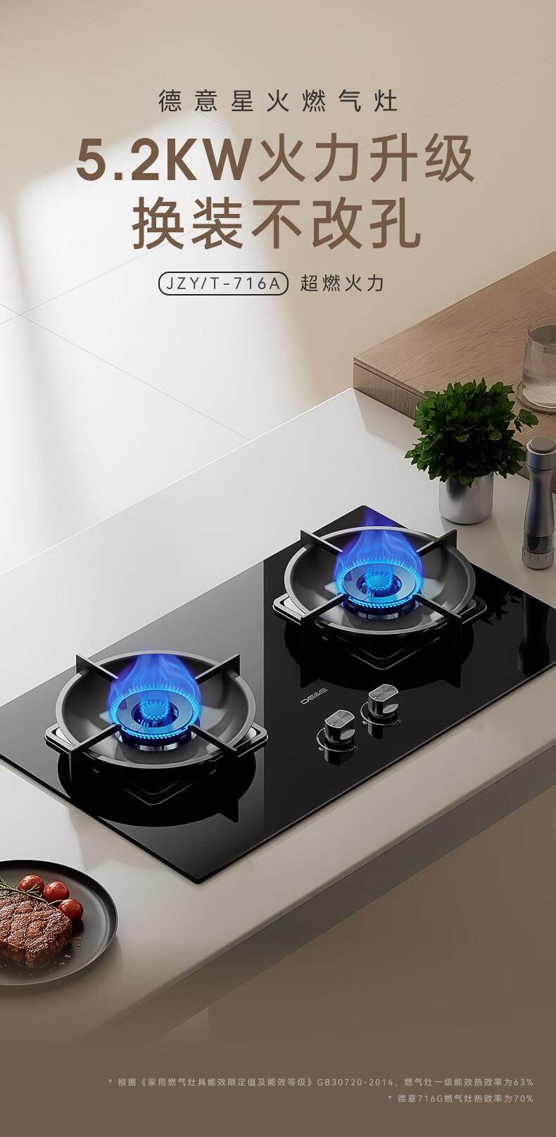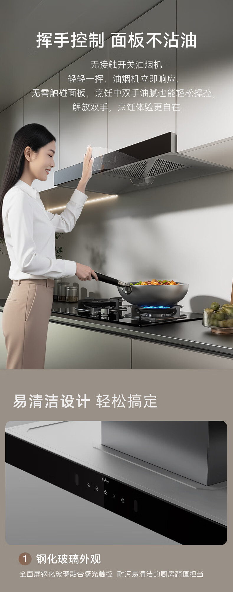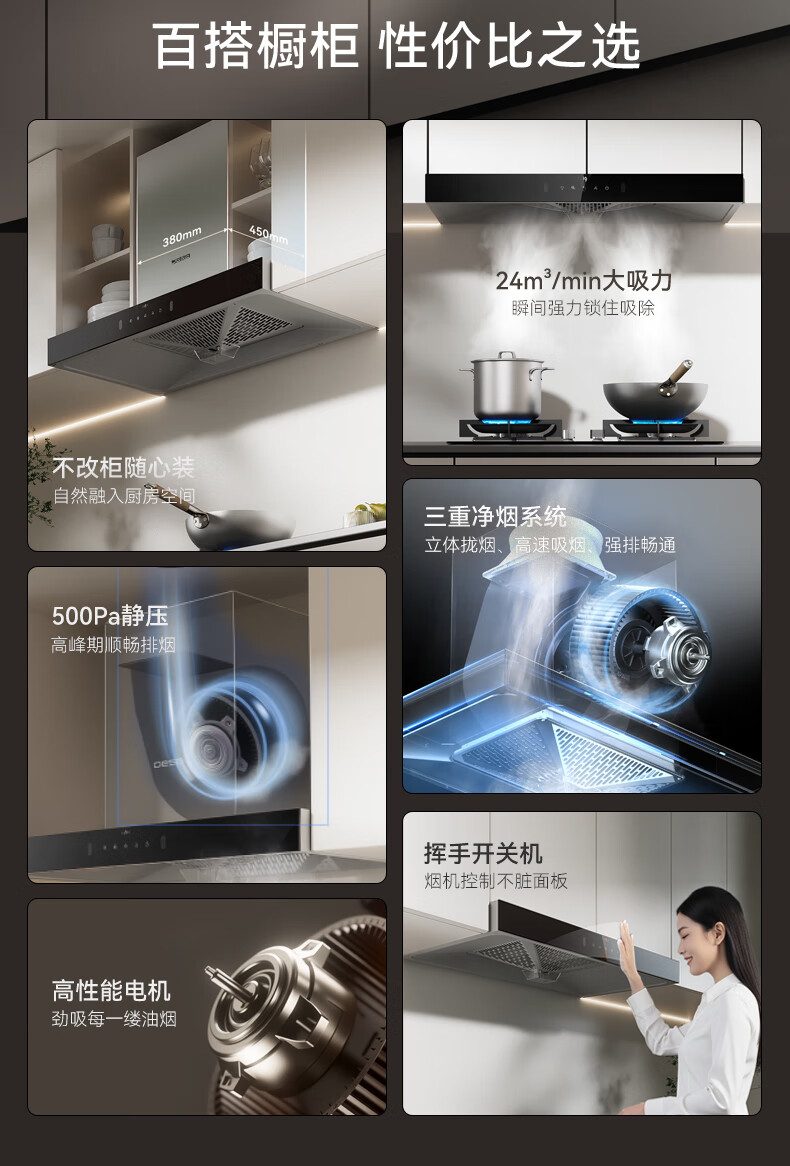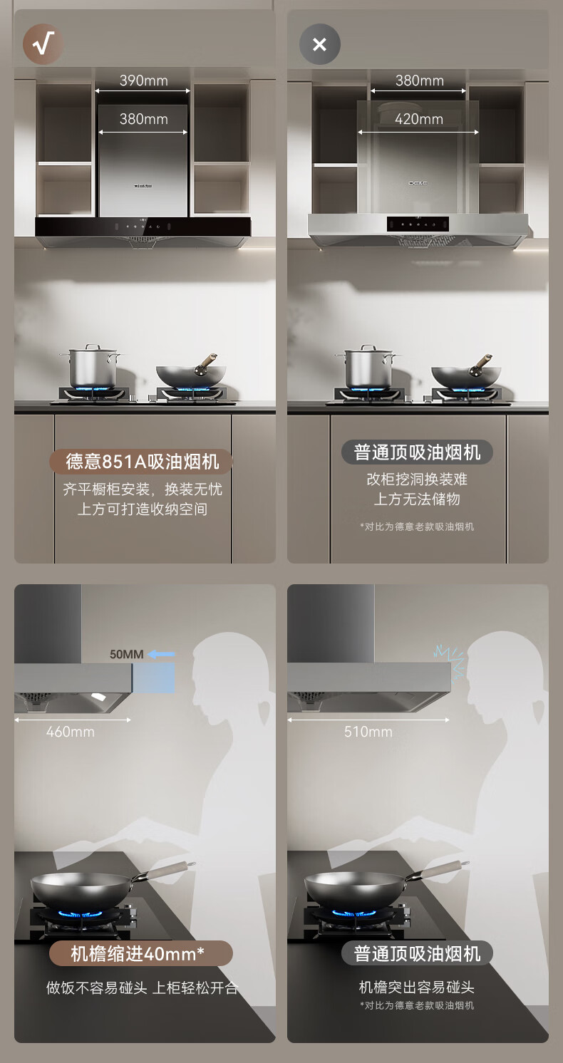 德意(DE&E) 抽油烟机家用 吸油烟机顶吸式欧式24立方大吸力免拆洗免换网挥手智控 换新不改柜烟机851A 【烟灶套装】24m³+716A天然气