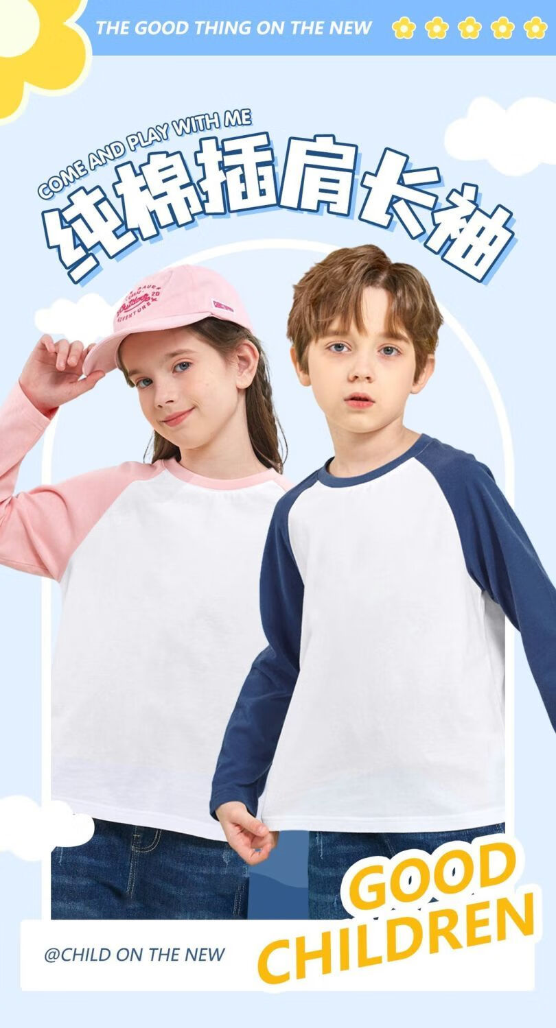 马克华菲(MARK FAIRWHALE)儿童春秋纯棉打底衫男女童2025新款上衣潮流薄款插肩长袖T恤 M厨师鳄鱼青绿 130