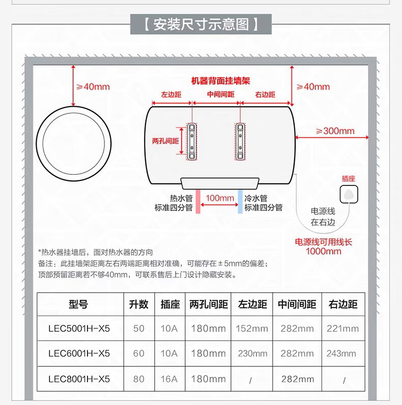 海尔(Haier)智家出品Leader统帅热水器电热水器LC1家用40升储水式卫生间洗澡小户型租房优选上门安装防电墙 40L 1500W 租房优选 LC行业第一