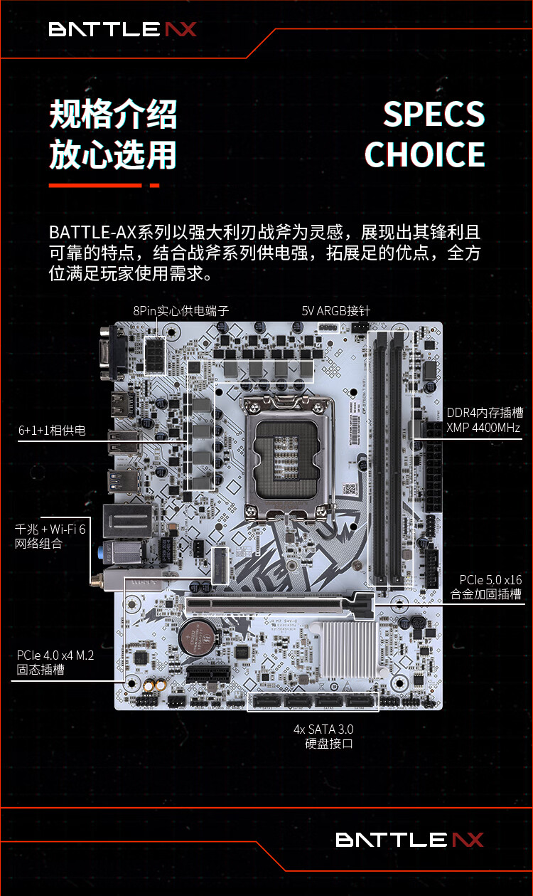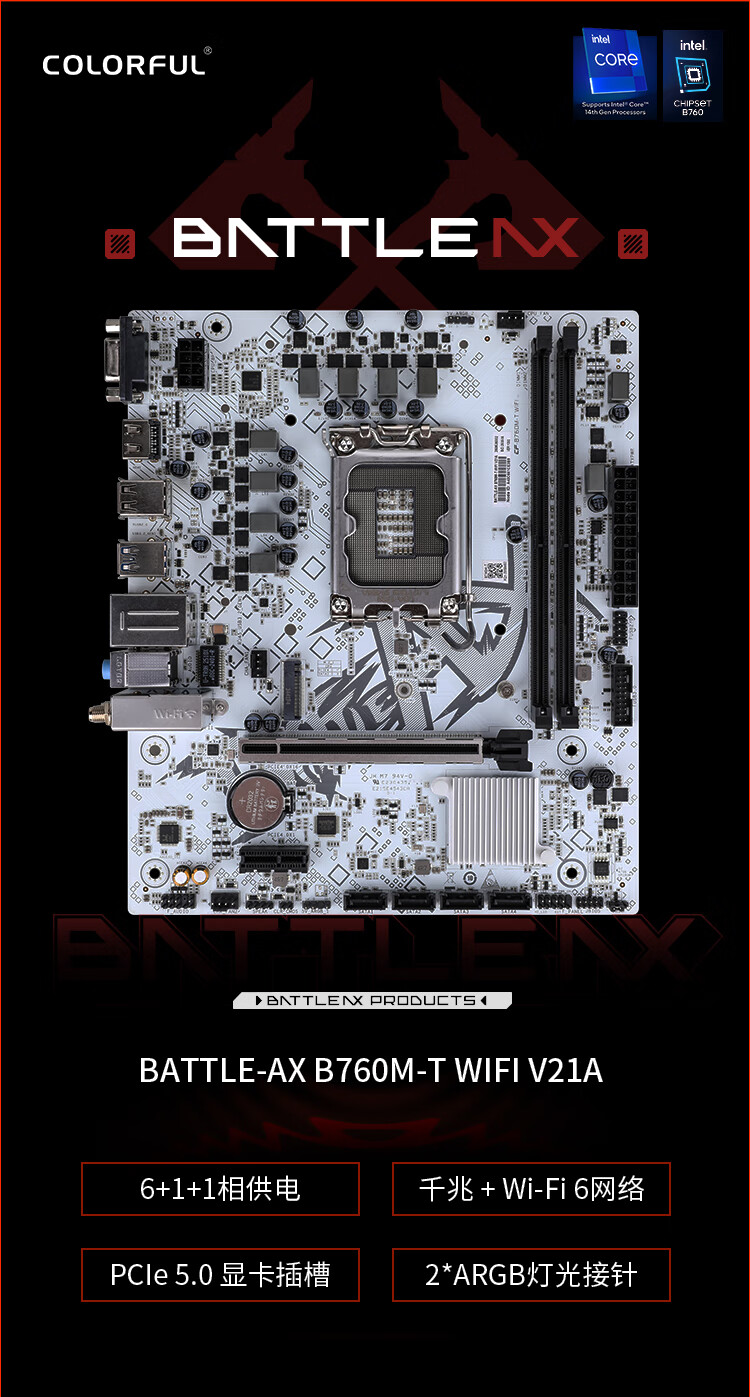 七彩虹(Colorful)BATTLE-AX B760M-T WIFI V21A DDR4主板 支持 CPU12600KF/13490F/14400F(Intel B760/LGA 1700)