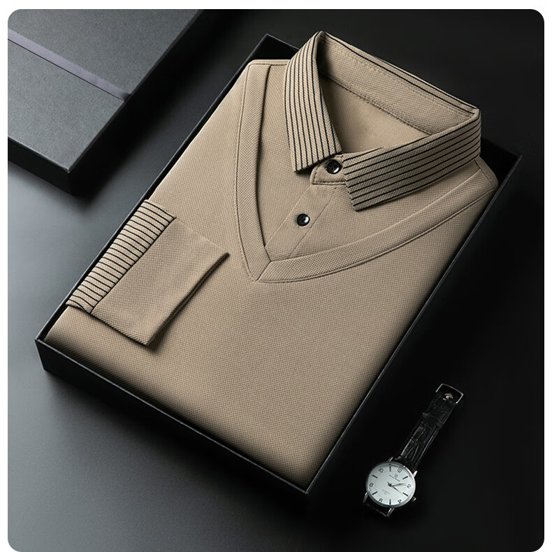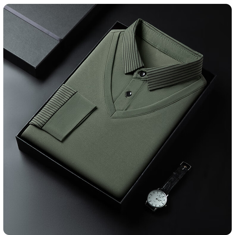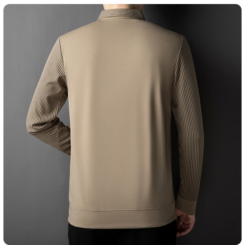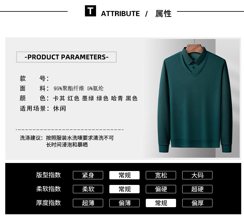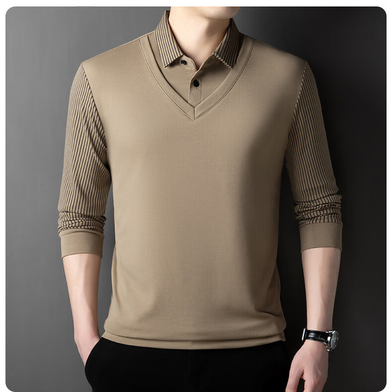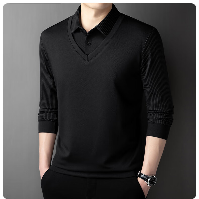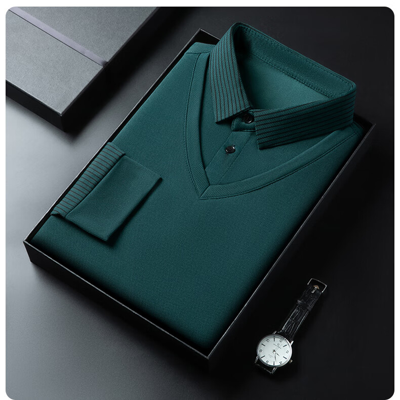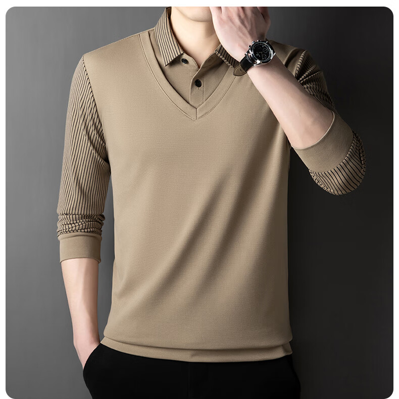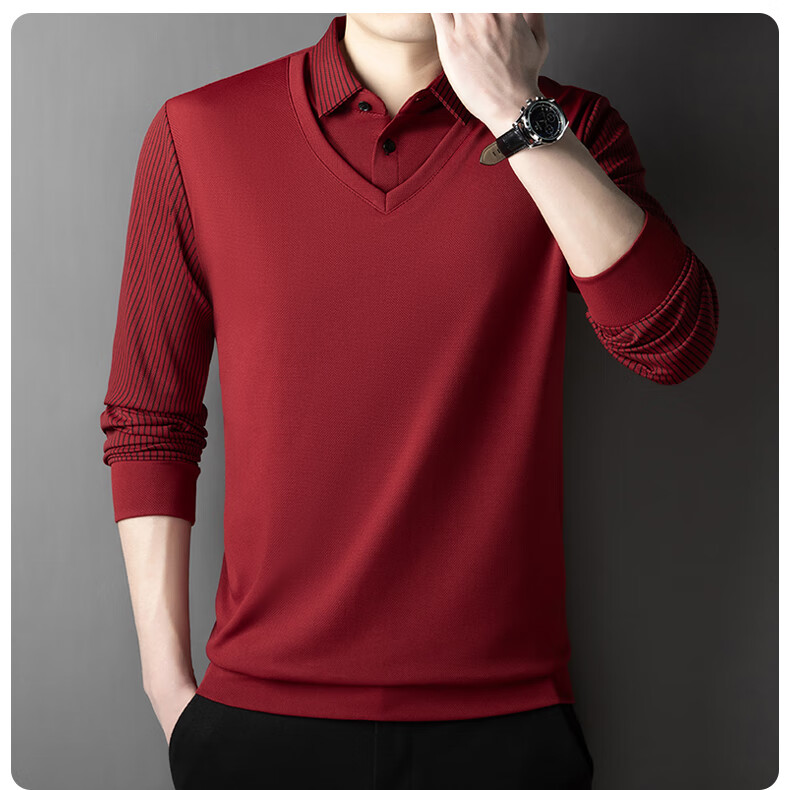 雅鹿男装加绒加厚假两件毛衣男士休闲翻领时尚潮流男装上衣t恤衫 豆绿加绒 XL (175)(建议140-155斤)