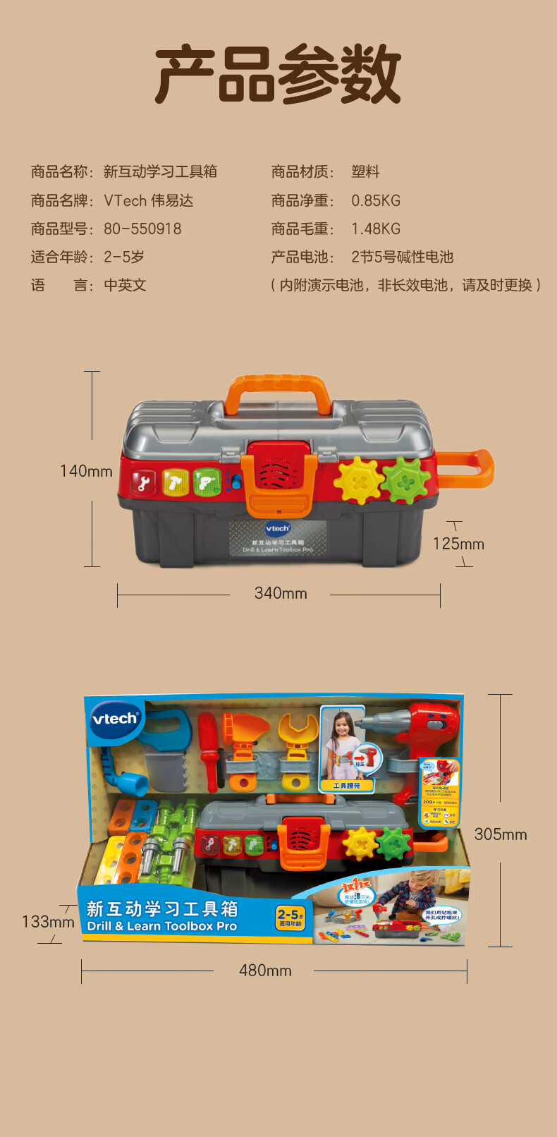 伟易达(Vtech)玩具过家家新互动学习工具箱仿真维修2岁3岁儿童男女孩生日礼物 新互动学习工具箱【2-5岁】