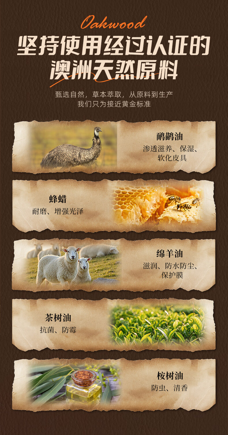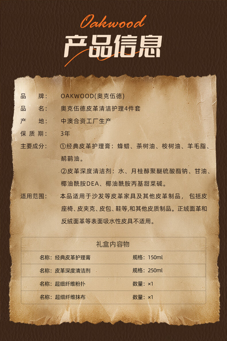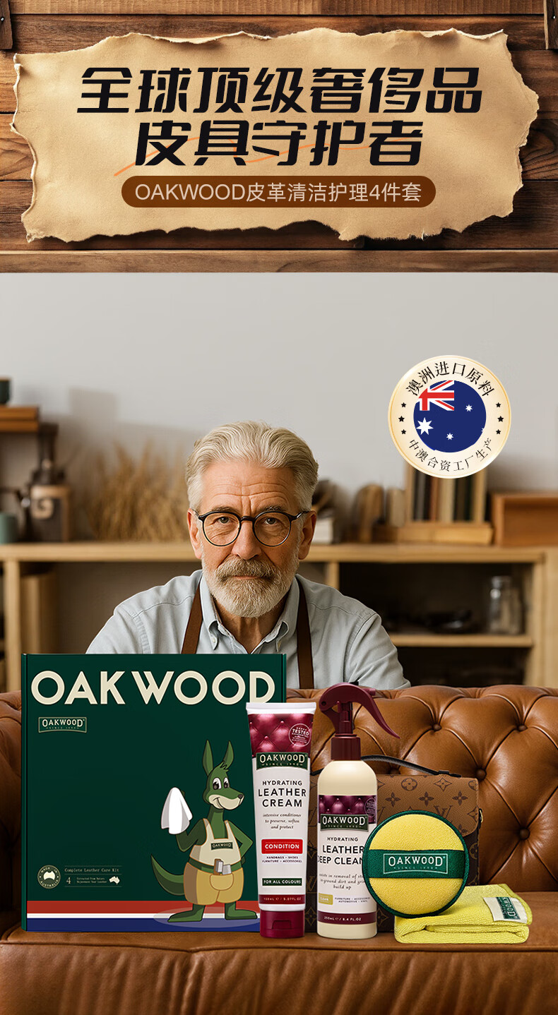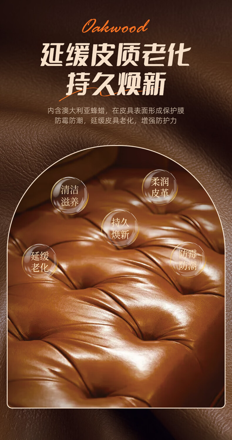 奥克伍德(OAKWOOD)澳洲进口皮革护理膏150ml 皮衣皮具保养油真皮沙发座椅清洁护理剂
