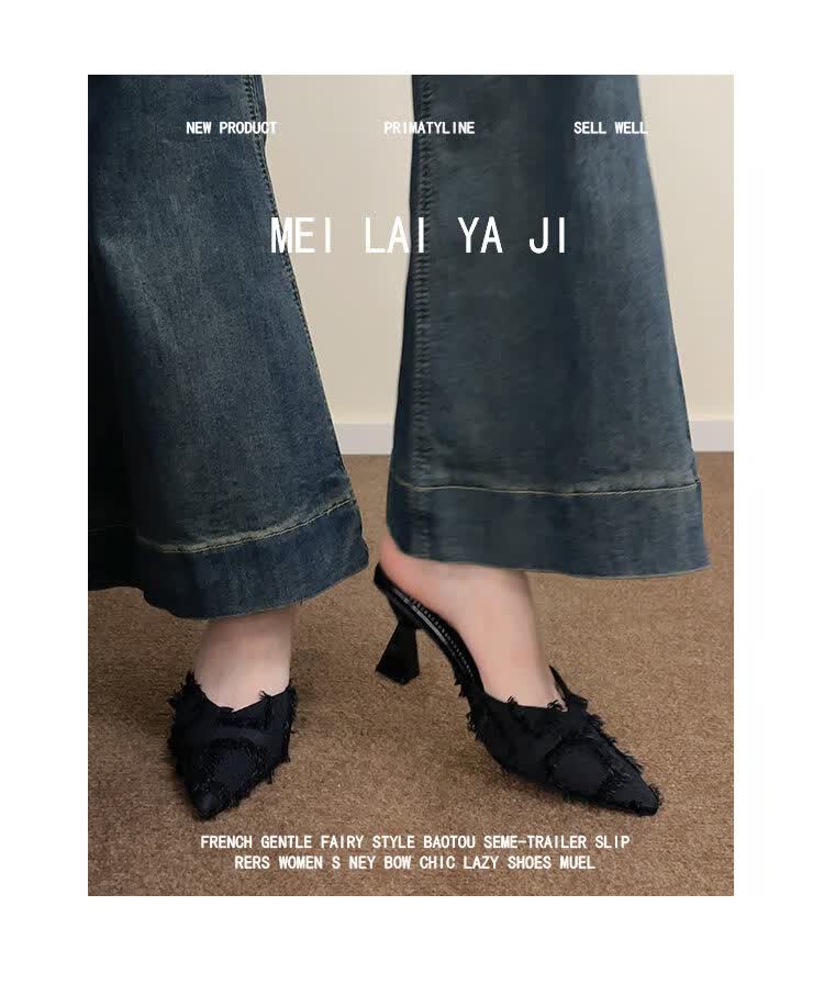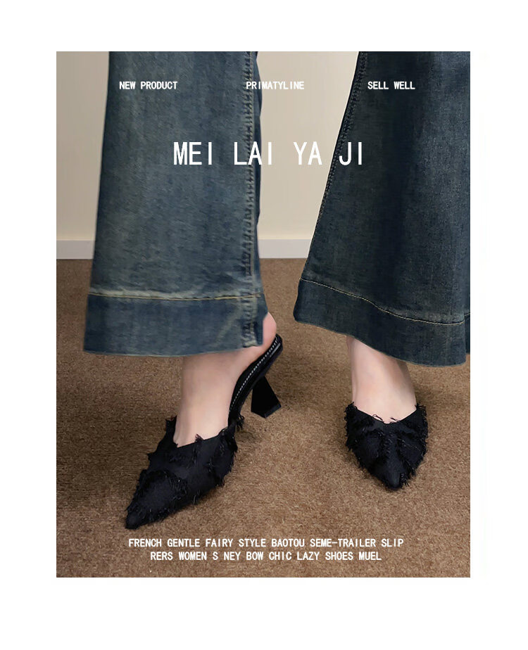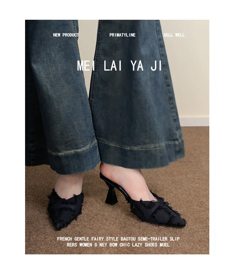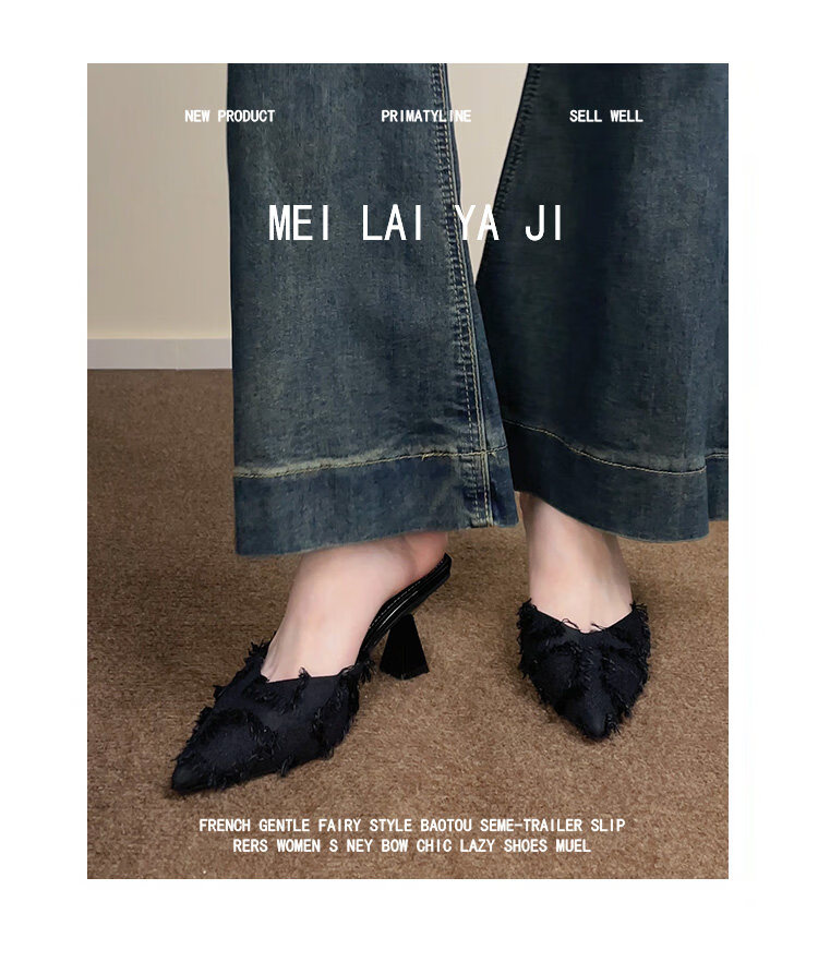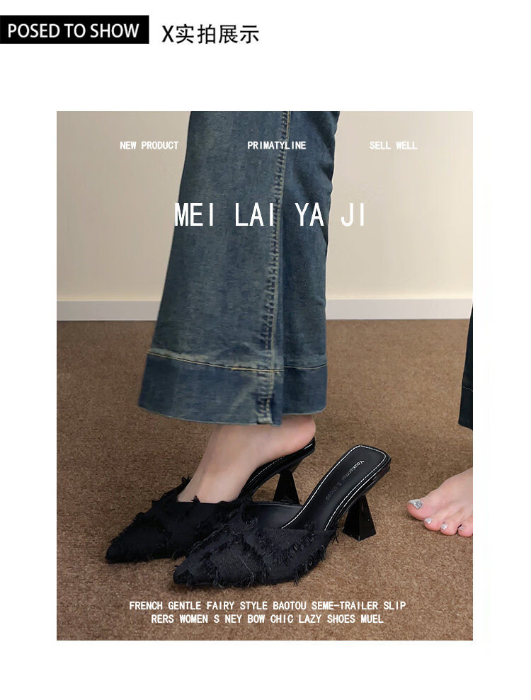 丝流苏毛毛包头高跟半拖鞋女夏季尖头酒杯跟高跟鞋 杏色 34