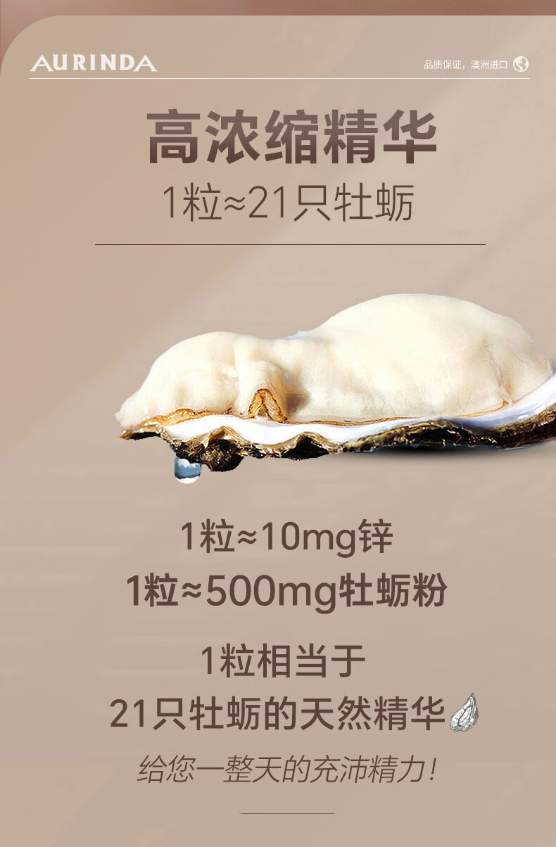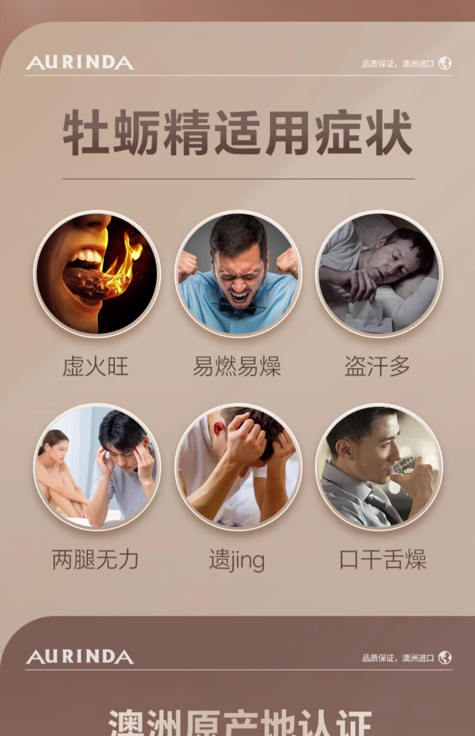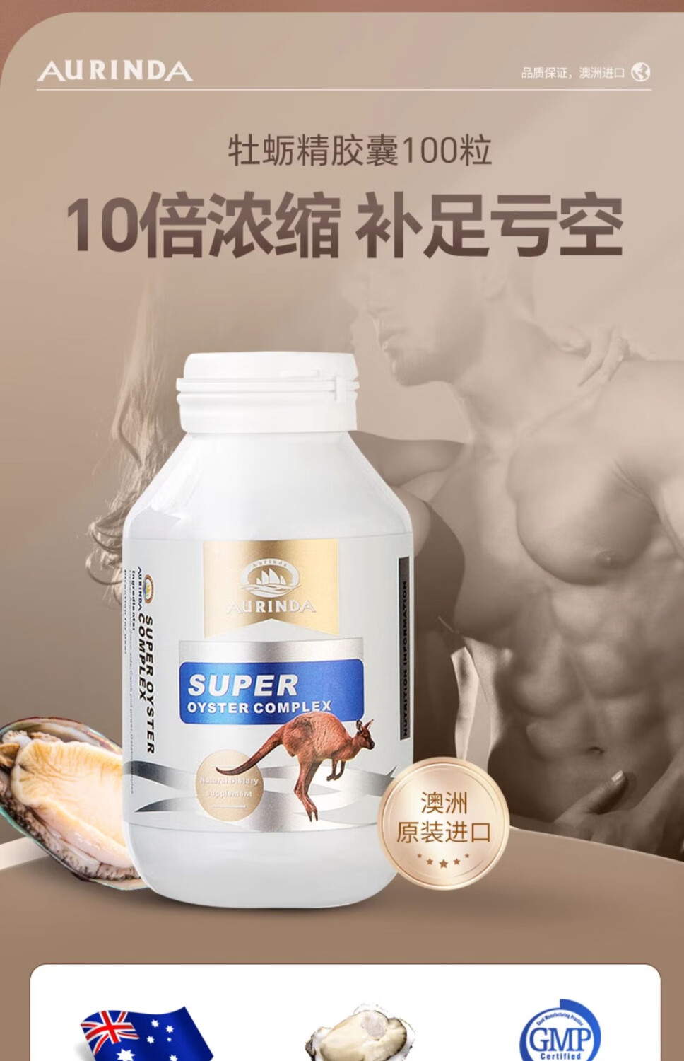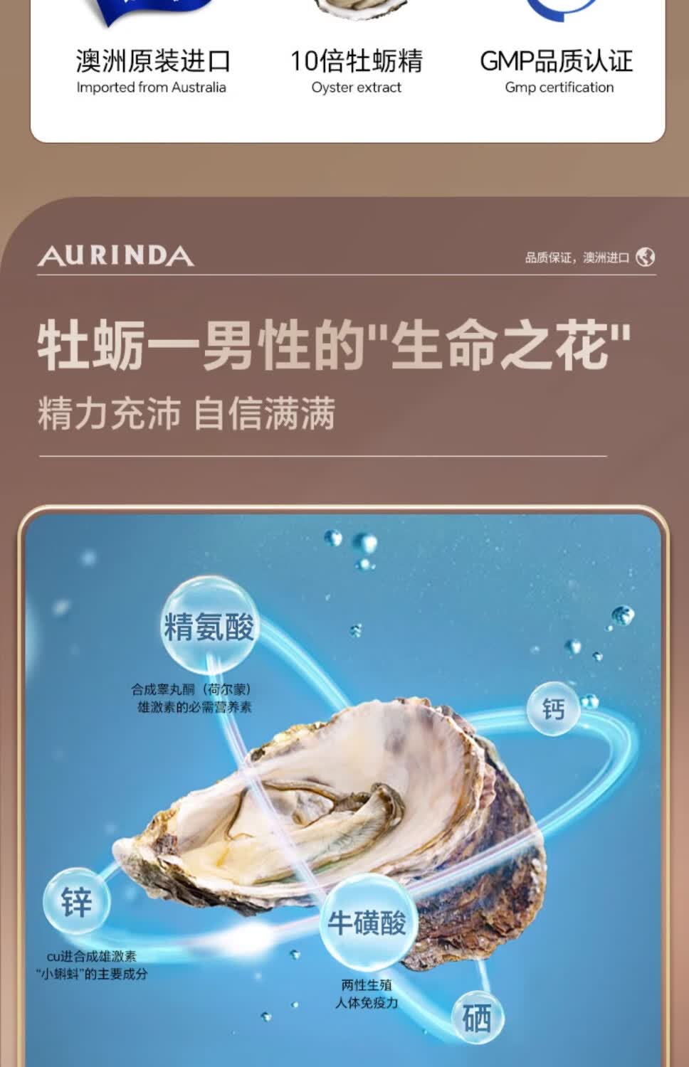 Aurinda AURINDA澳琳达促睾牡蛎精胶囊雄性激素睾酮男性澳洲原装进口 1瓶装 肾力满满【牡蛎精】100粒