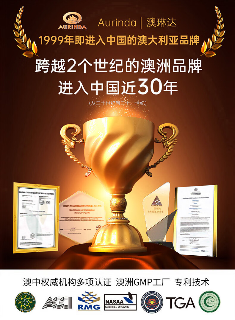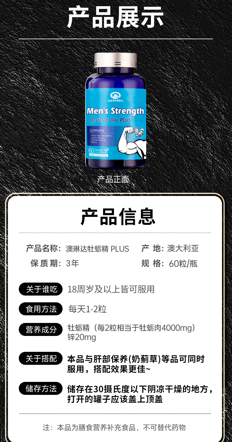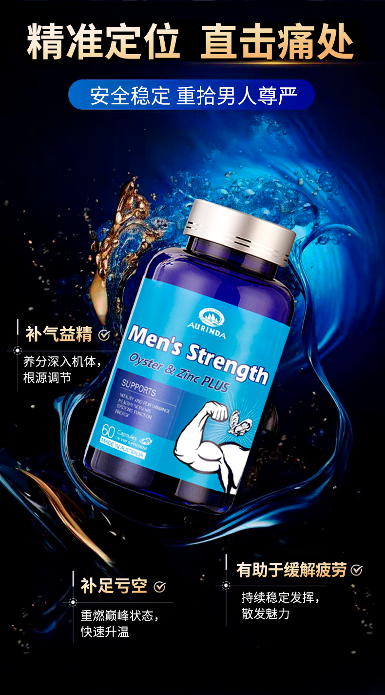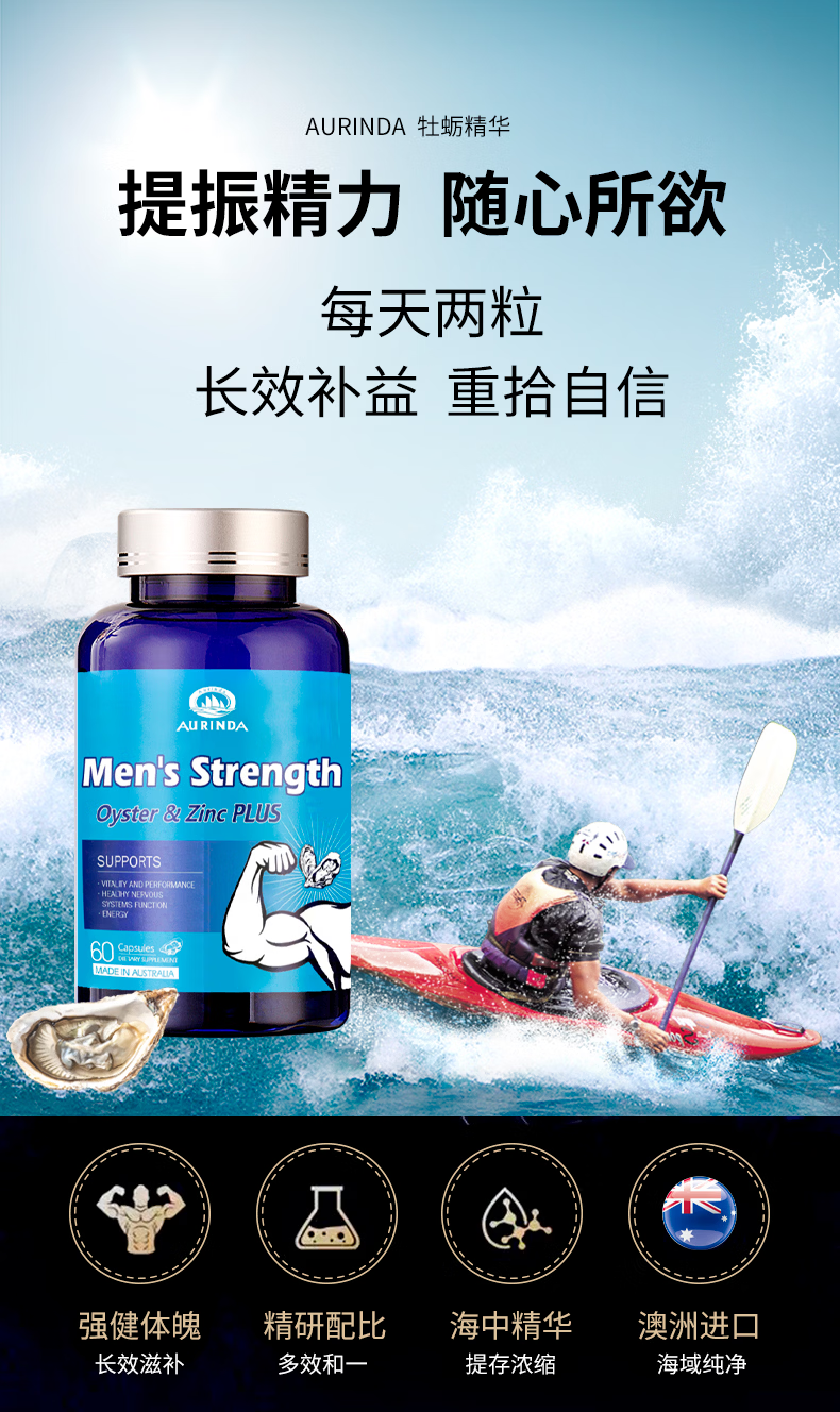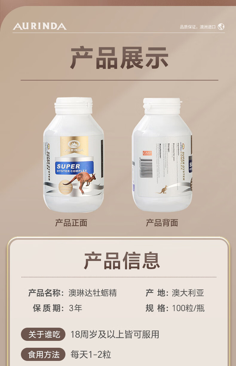 Aurinda AURINDA澳琳达促睾牡蛎精胶囊雄性激素睾酮男性澳洲原装进口 1瓶装 肾力满满【牡蛎精】100粒