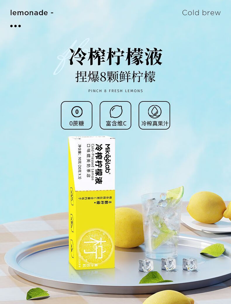 红允MikooLab味觉烙印 冷榨柠檬液30g*3条柠檬汁饮品维C柠檬冲饮解腻 【3条】冷榨柠檬液1盒
