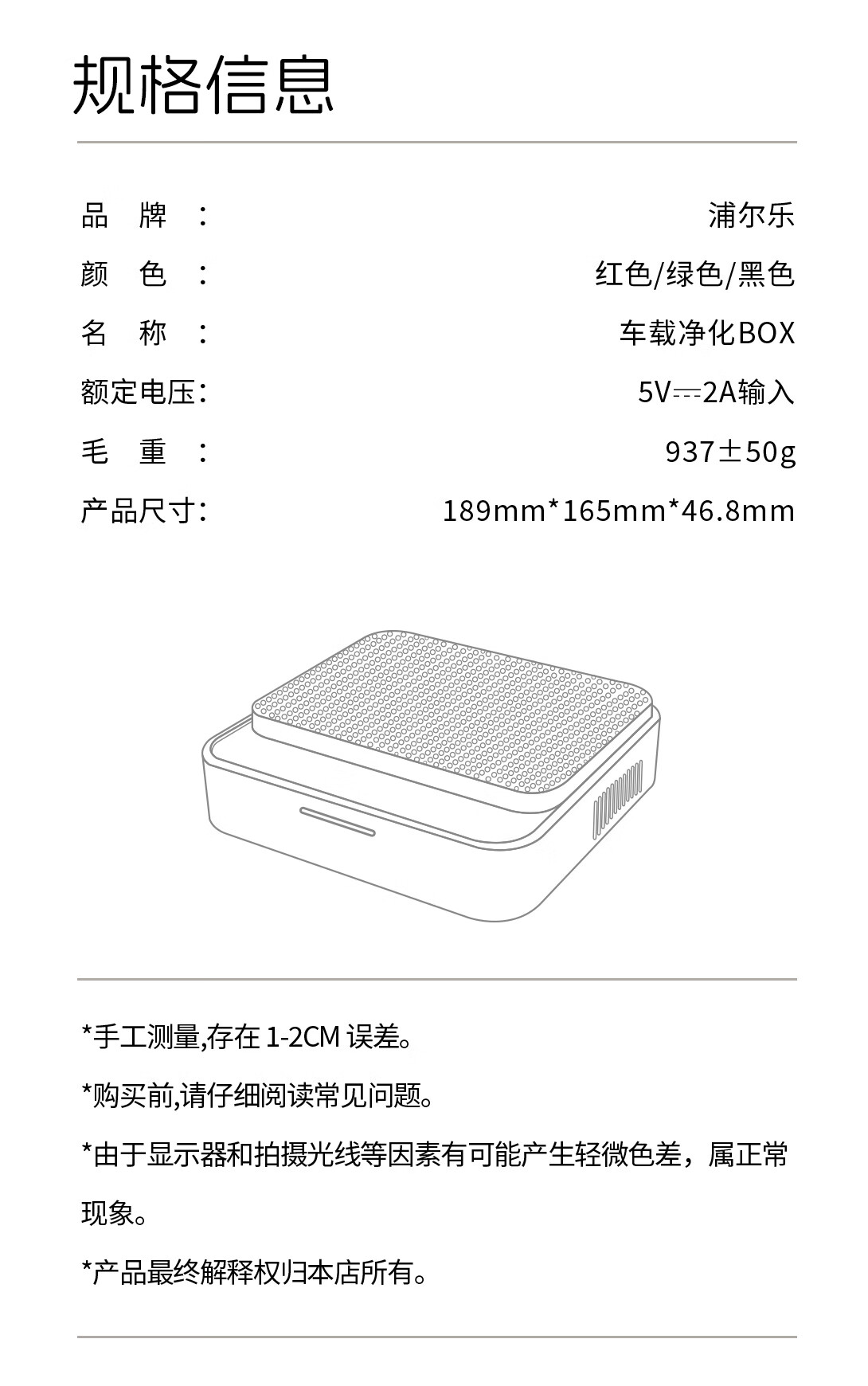 浦尔乐净化BOX车载空气净化器大吸力高效负离子臭氧等离子除味除臭二手烟尼古丁焦油甲醛新车必备滤芯 净化BOX【车载黑色款】