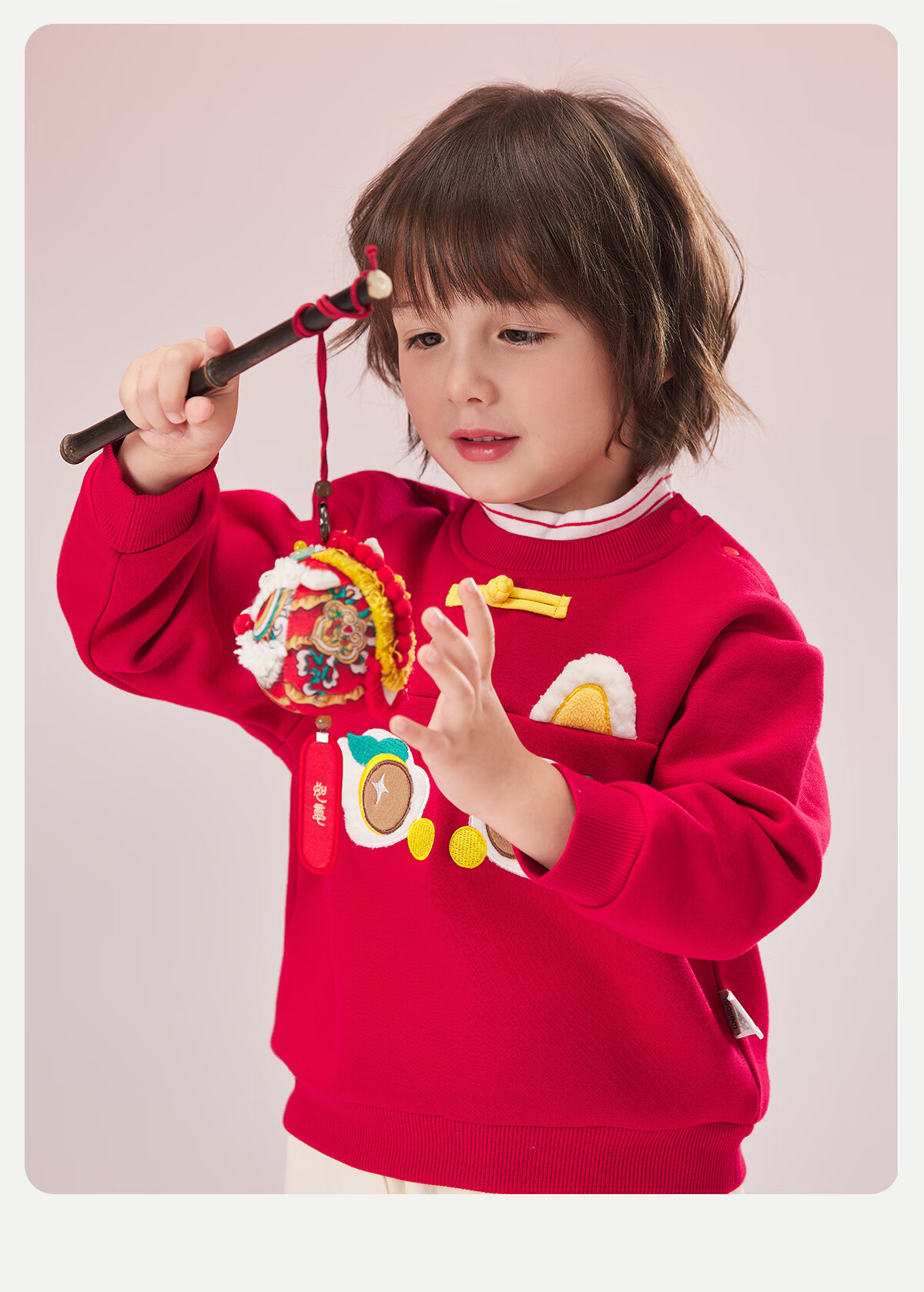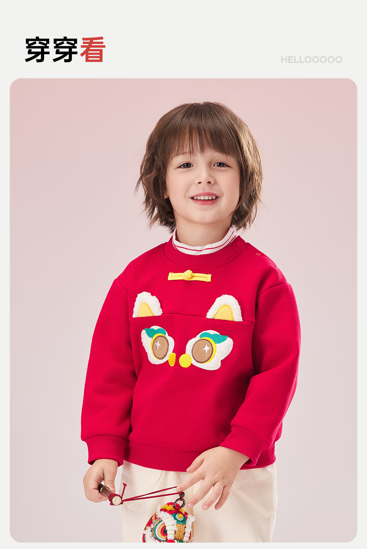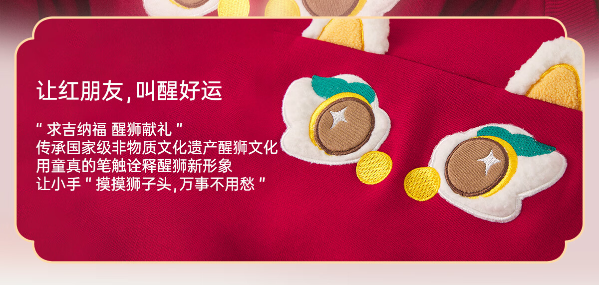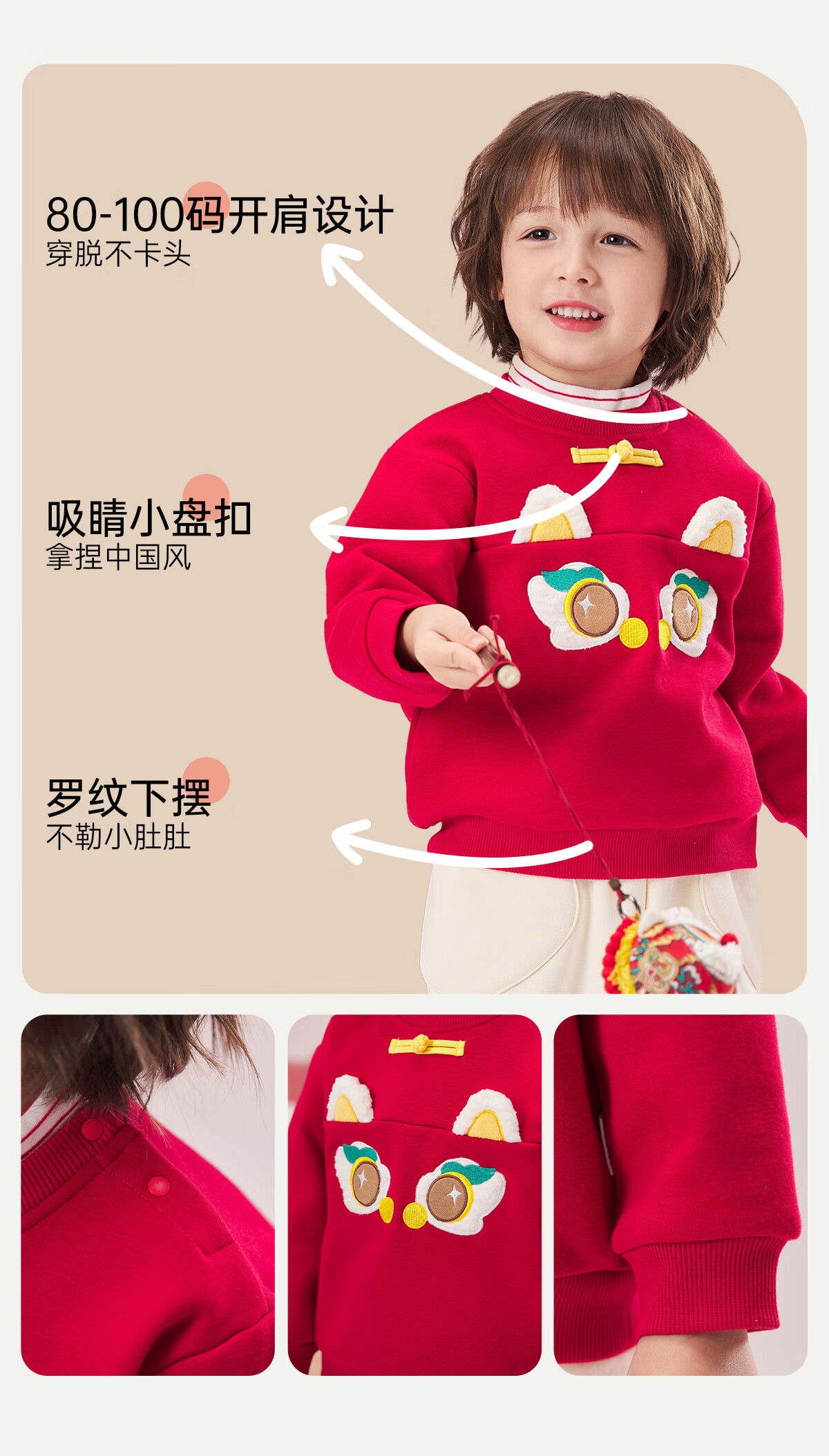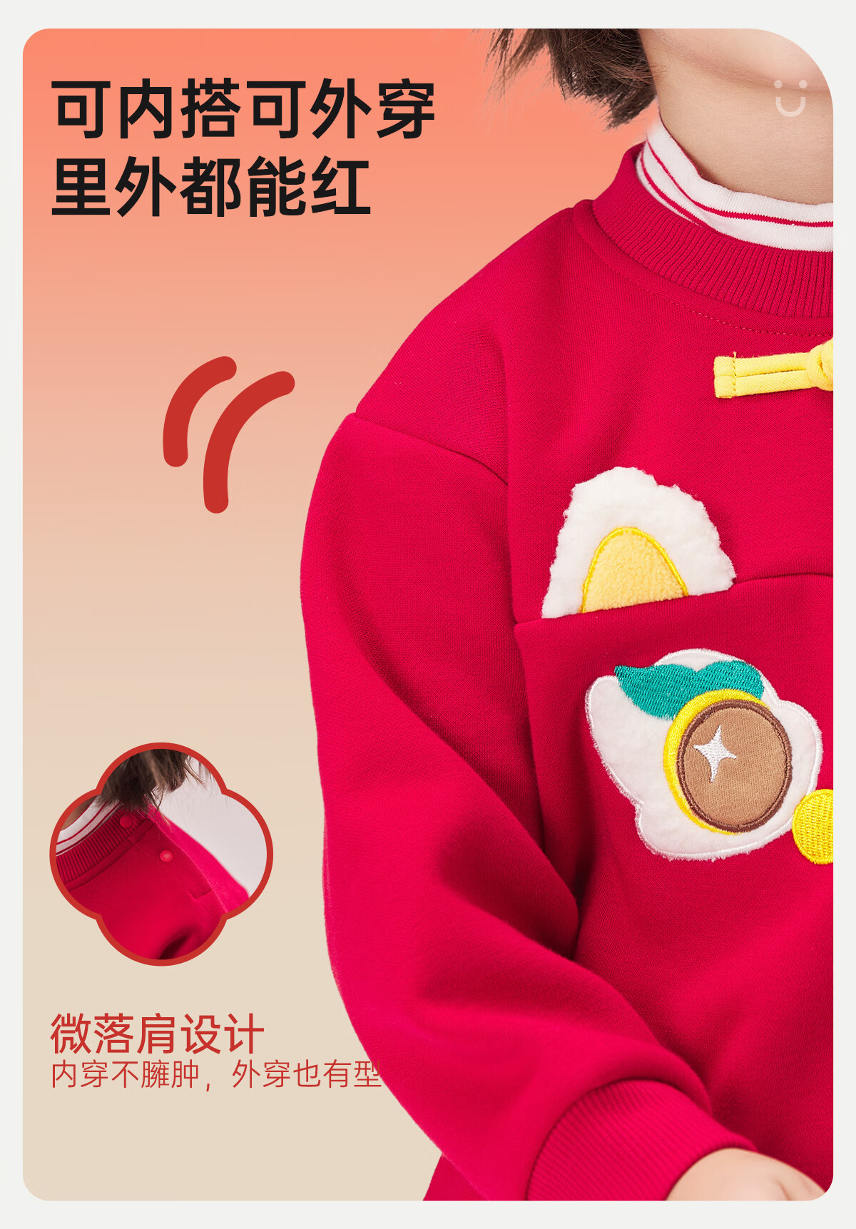 威尔贝鲁(WELLBER)儿童卫衣2024秋冬款新年拜年上衣保暖男女童套头长袖休闲童装 假两件卫衣【新年红】 110
