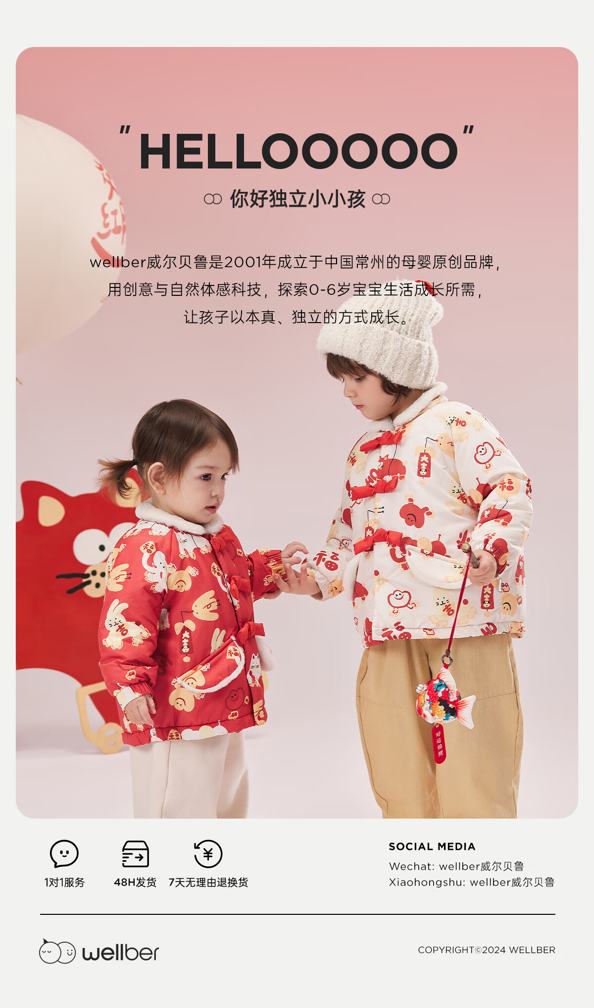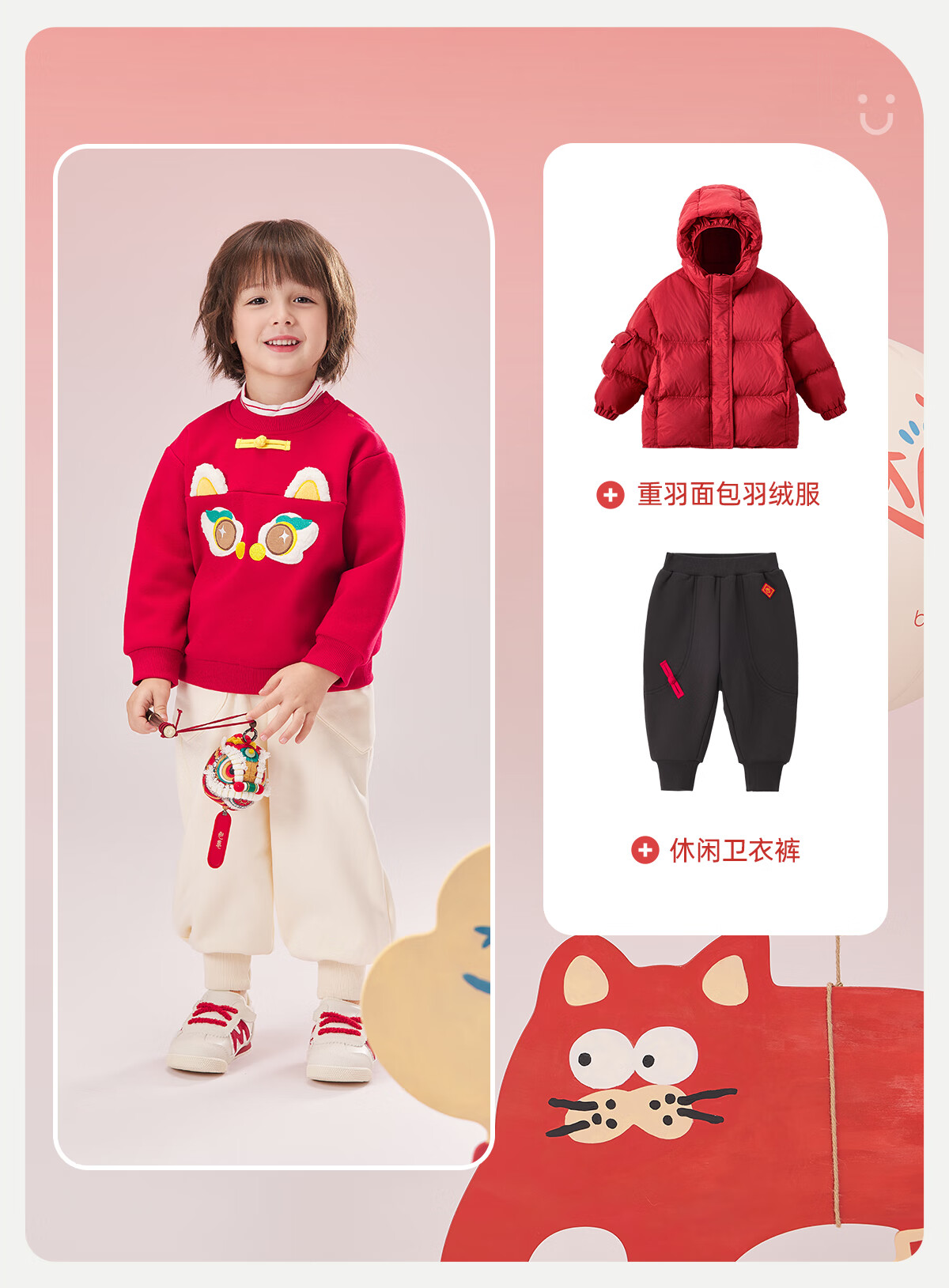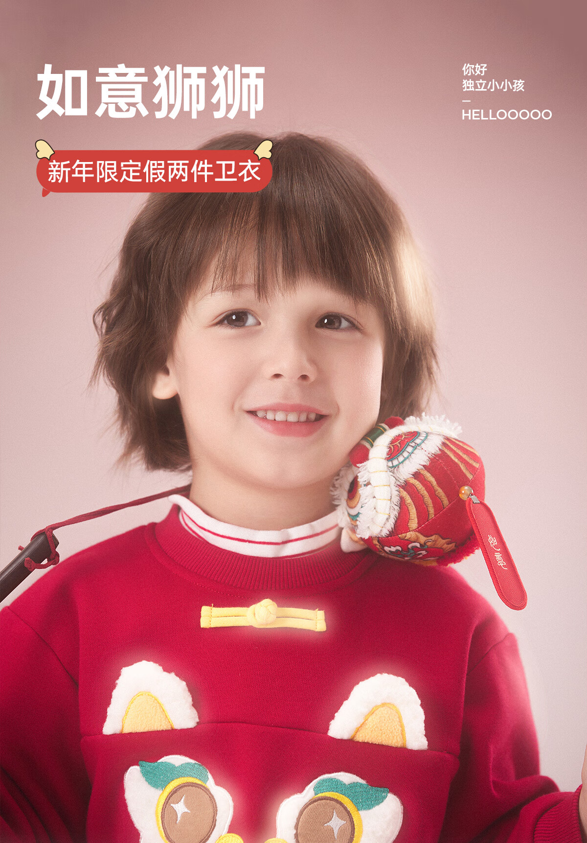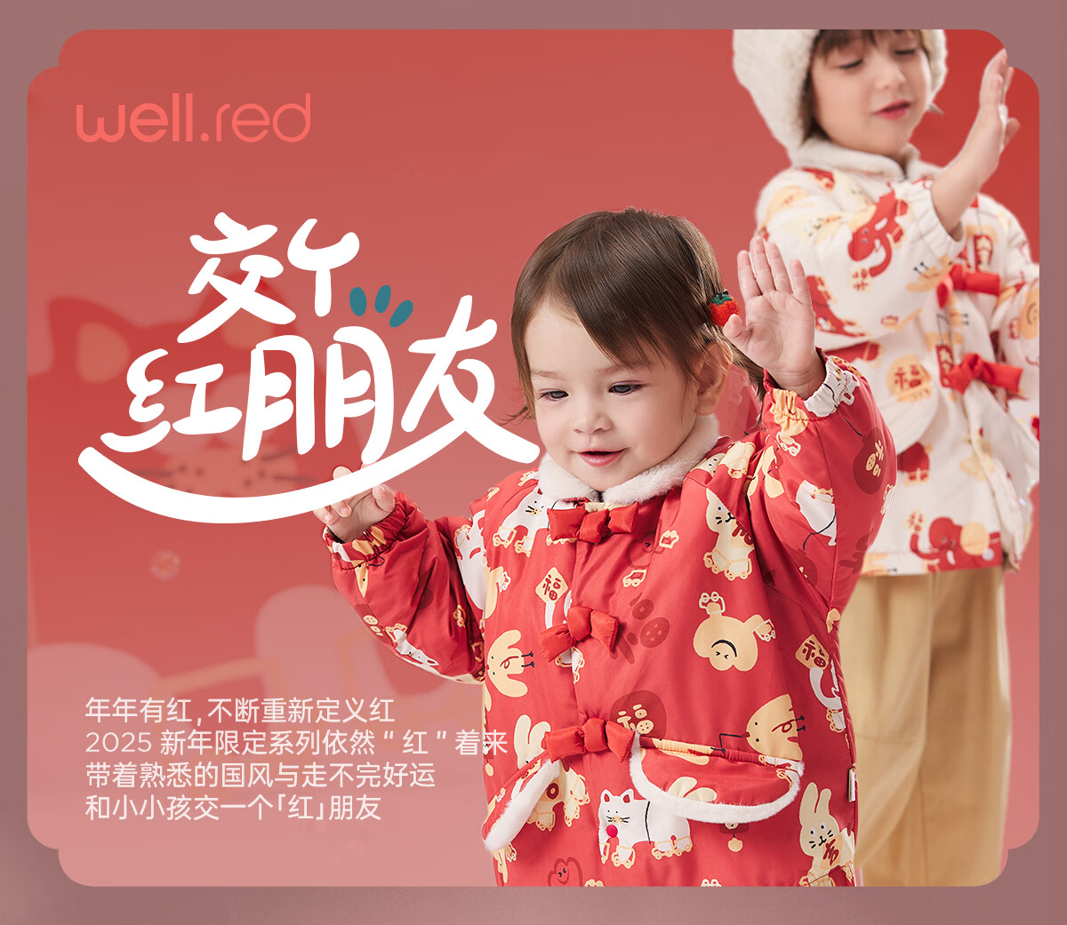 威尔贝鲁(WELLBER)儿童卫衣2024秋冬款新年拜年上衣保暖男女童套头长袖休闲童装 假两件卫衣【新年红】 110