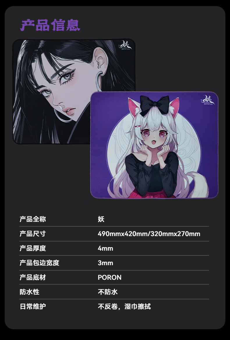 首席玩家(1st player)妖Pro电竞鼠标垫超大大号桌垫高颜值御姐萝莉二次元FPS专用游戏垫瓦/CS2/APEX/三角洲 狸 490x420mm
