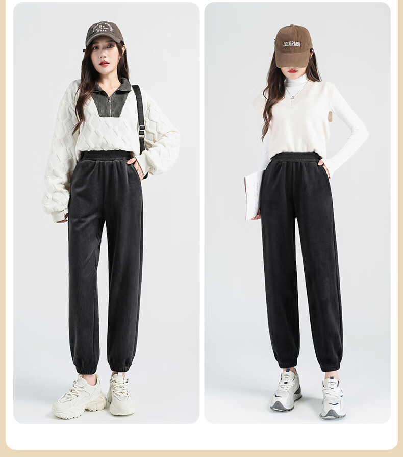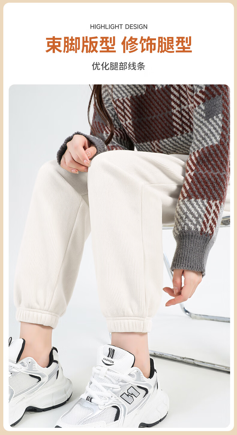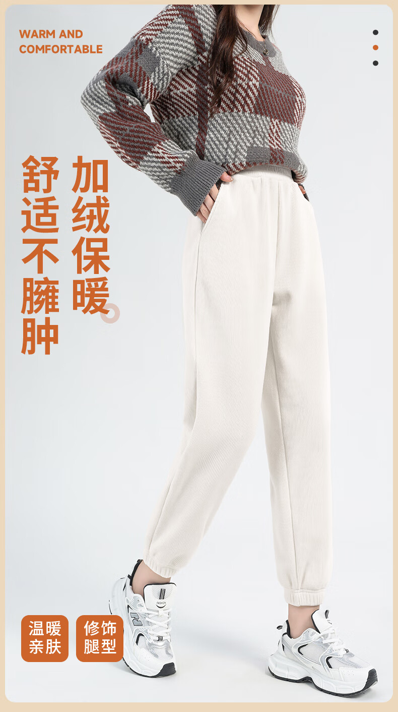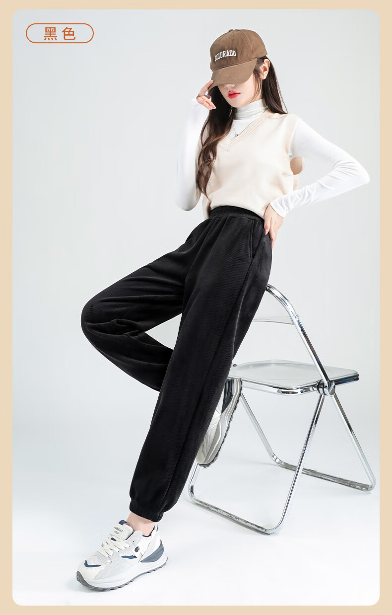 真维斯(Jeanswest)加绒裤子加厚保暖灯芯绒束脚裤冬季新款休闲裤小个子运动裤3GX 黑#纯色 XL