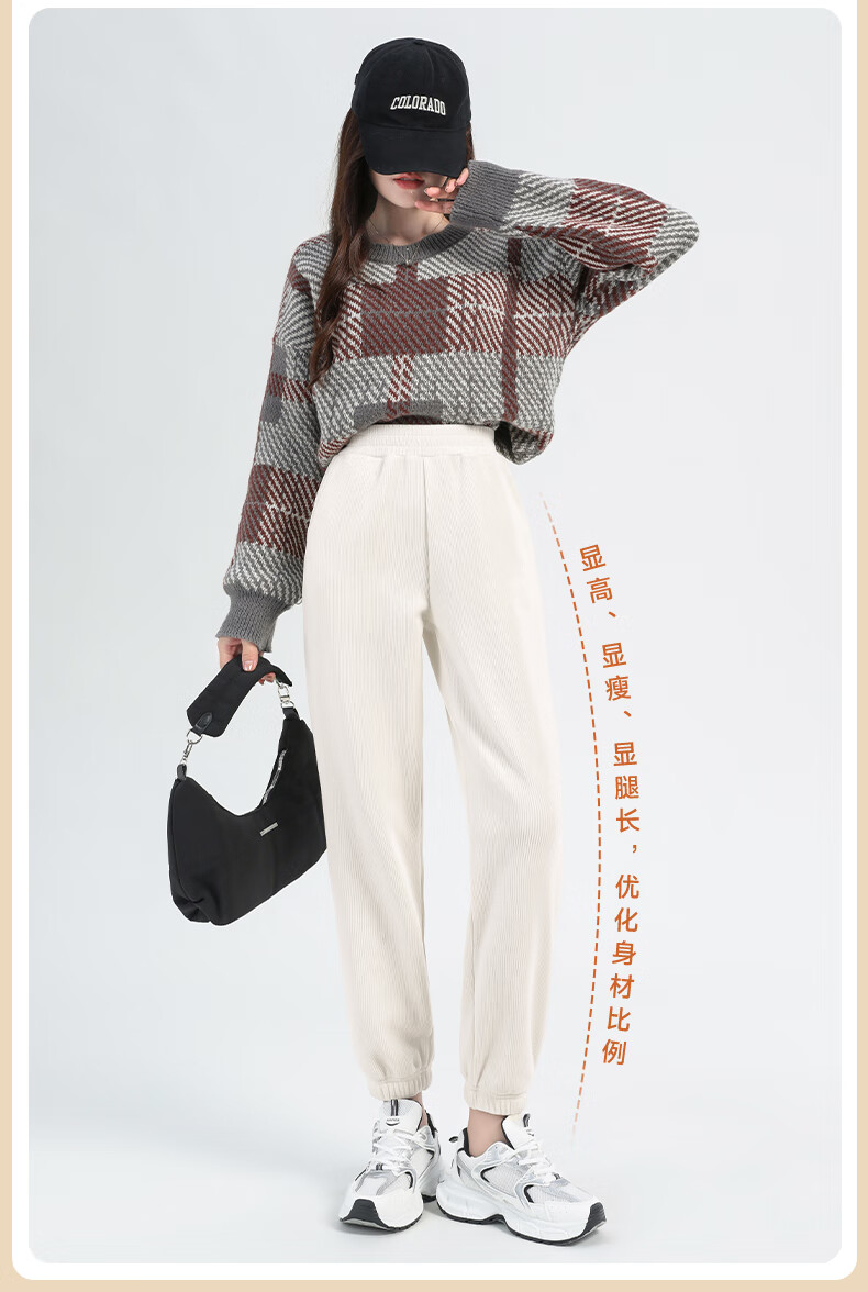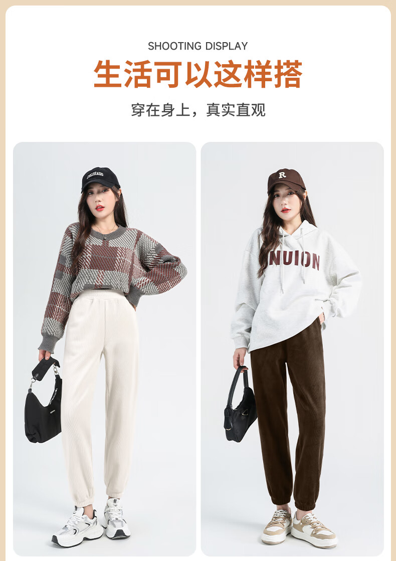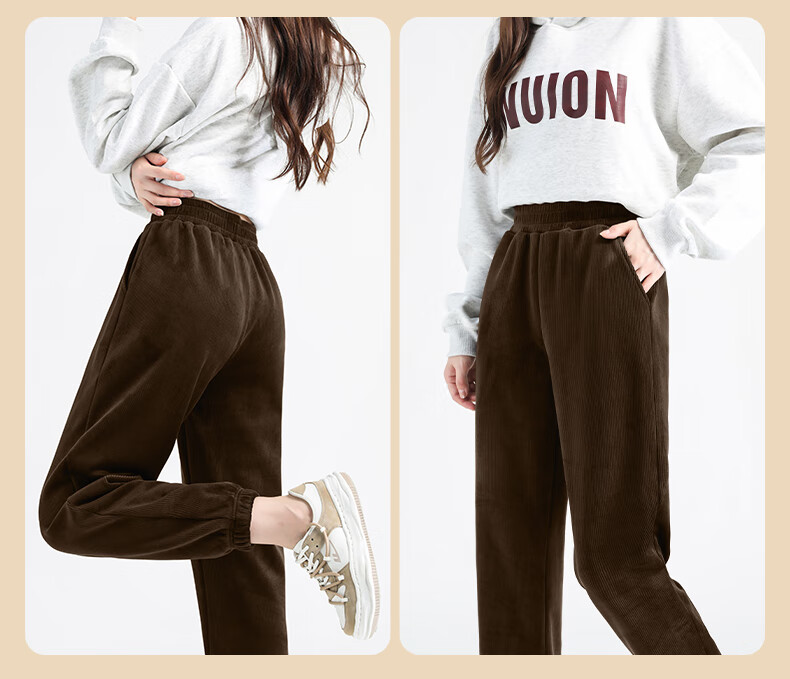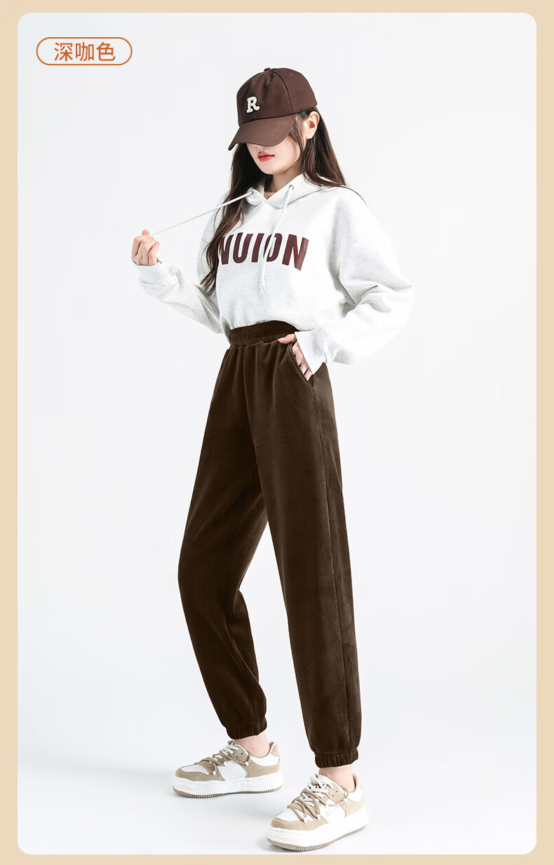 真维斯(Jeanswest)加绒裤子加厚保暖灯芯绒束脚裤冬季新款休闲裤小个子运动裤3GX 黑#纯色 XL